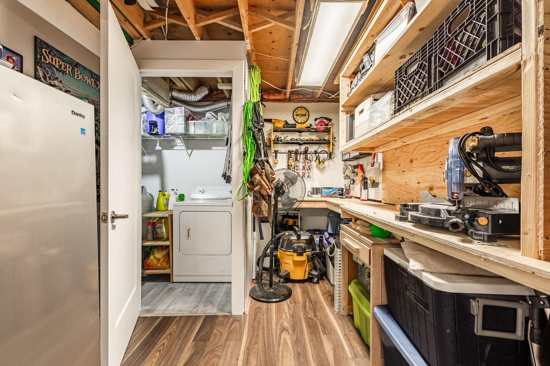- Dishwasher, light fixtures, wall-mounted heat pump, range hood, electric fireplace, curtains, basement TV wall mount, wooden cabinet in the powder room.