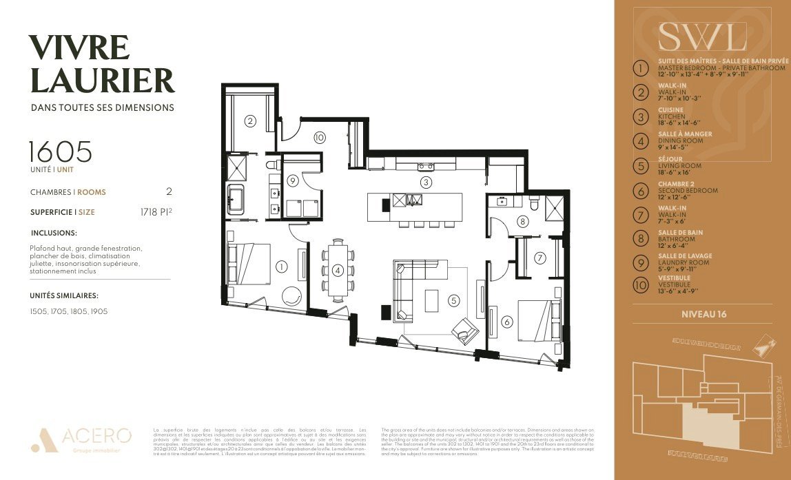 From the top of its 23 floors, the SWL will dazzle you. Its unique character, for Quebec City, makes this future building a distinctive place where you will want to live and share. The 156 units of this project will not only offer varied and thoughtful layouts, but also layouts with generous windows so that you can appreciate the breathtaking views of Quebec City and its surroundings. Moreover, with its 6 floors of underground parking, the commercial basement and the numerous common spaces, you will have everything you have ever wished for at your fingertips.