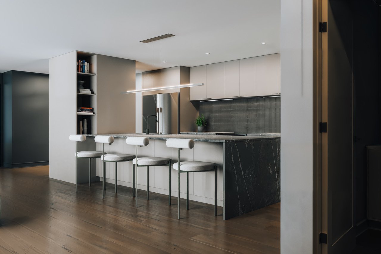 Living at SWL means having access to luxurious, friendly and convenient indoor common areas. Sumptuous lounges, a fully equipped workout room, a shared chef's kitchen and a spa area with a pool,