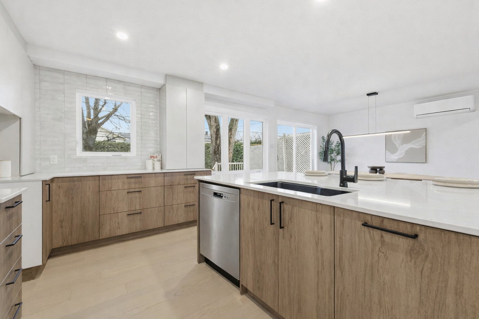 Bright, fully renovated, and move-in ready home finished in a modern style. It features 4 bedrooms upstairs and a 5th in the basement, with the possibility of a 6th. 2 full bathrooms, including a separate shower, freestanding tub, and heated floors on the second level. Powder room with washer and dryer (main floor). Open-concept living space that is spacious and filled with natural light, perfect for entertaining around the central island. Large family room in the basement. Garage with storage mezzanine. Private backyard with shed. Roof, doors, and windows redone in 2026. Prime location close to services, shops, schools... Immediate occupancy