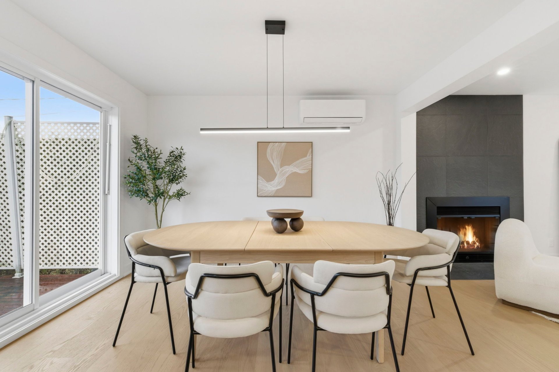 - Wood fireplace