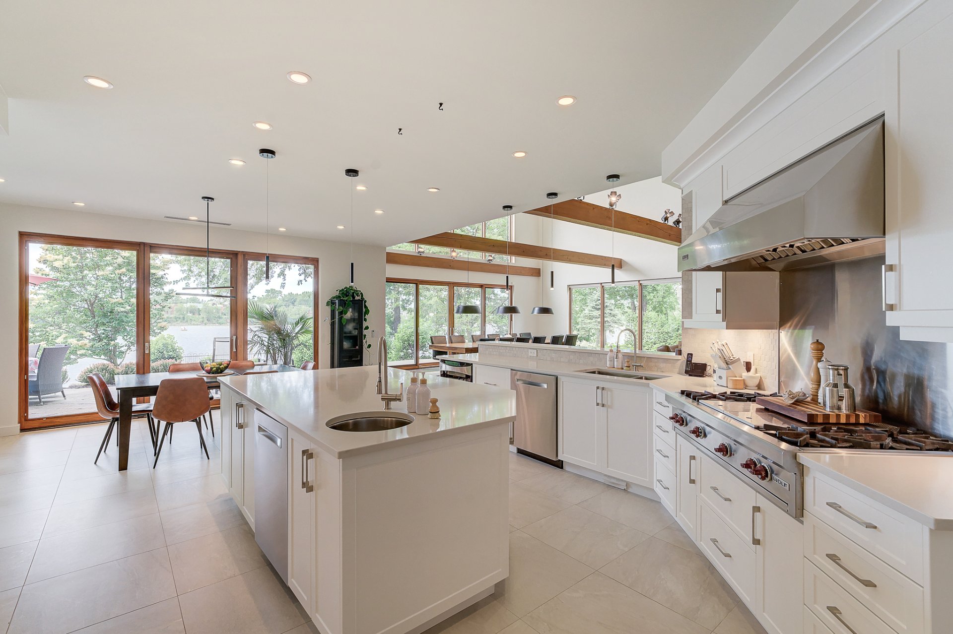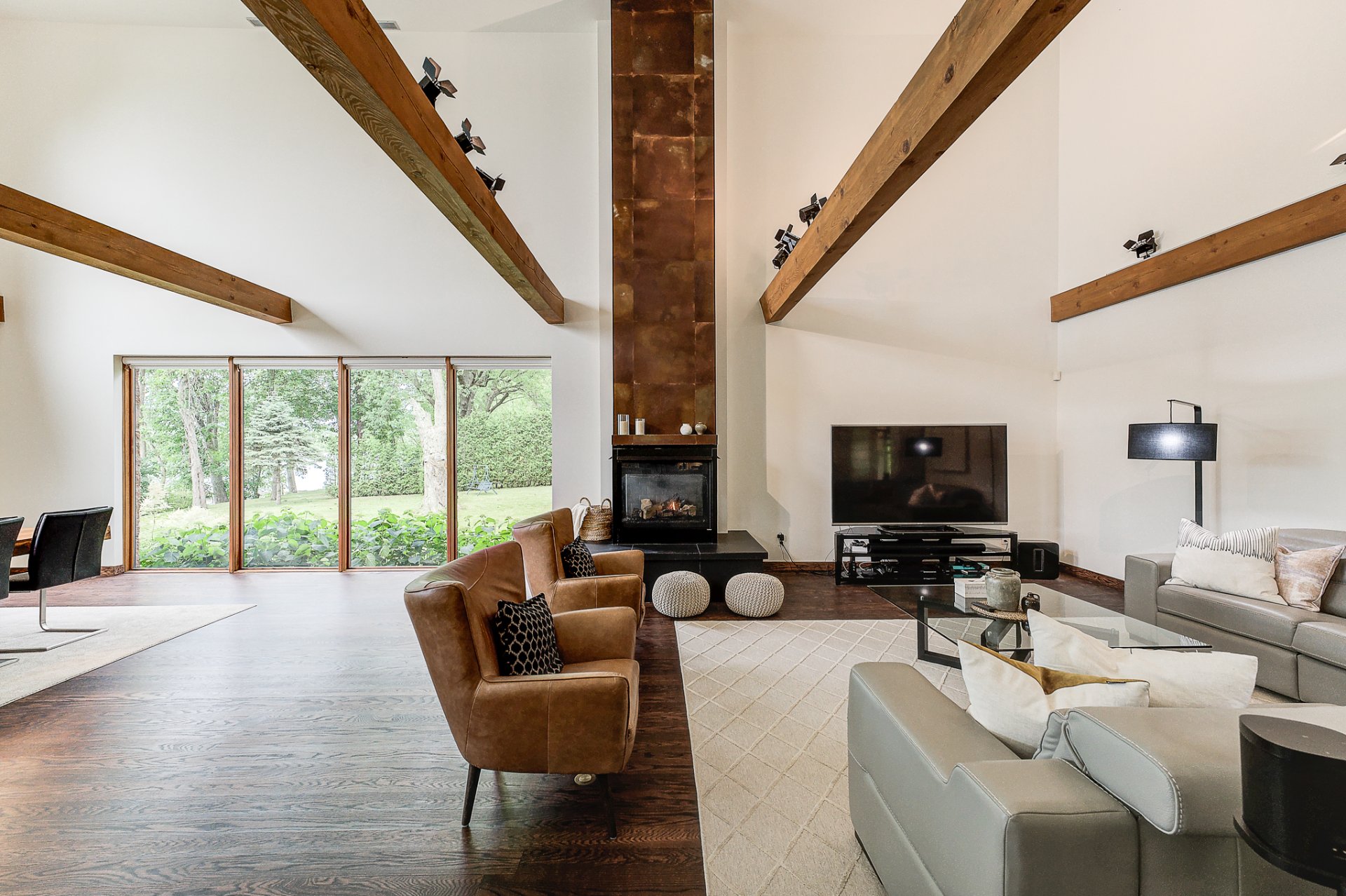 Magnificent location on the banks of the Richelieu River with landscaped grounds of over 26,000 square feet with beach, dock and in-ground pool. The property is unique with its steel structure. It offers 5 bedrooms, 3 bathrooms, 2 powder rooms, 2 family rooms and 3 garages. Everything is designed for comfort; glycol heated floors, central heat pump, huge windows and 2 patio doors to enjoy the superb view and access the large terrace. A kitchen equipped with high-end appliances, a luxurious master suite with gas fireplace, walk-in closet and adjoining bathroom with sauna. It's a must see!
