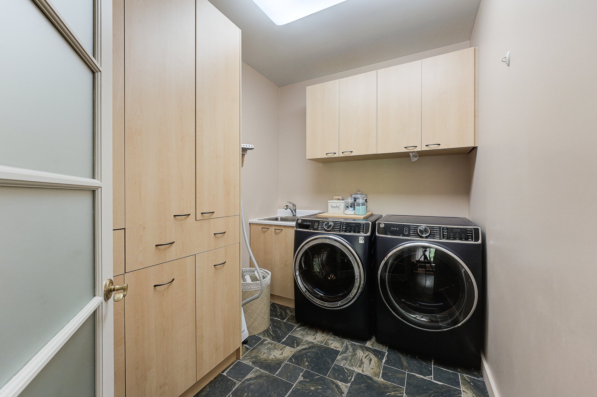 - Refrigerator, gas cooktop, 2 wall ovens, 2 dishwashers, compactor, microwave, light fixtures, central vacuum & access., office set-up, alarm, pool equipment and salt system, electric heat pump for the pool, water softener, Perkings generator 6 cylinders, cellar, sauna, 2 charging stations for electric car, dock.