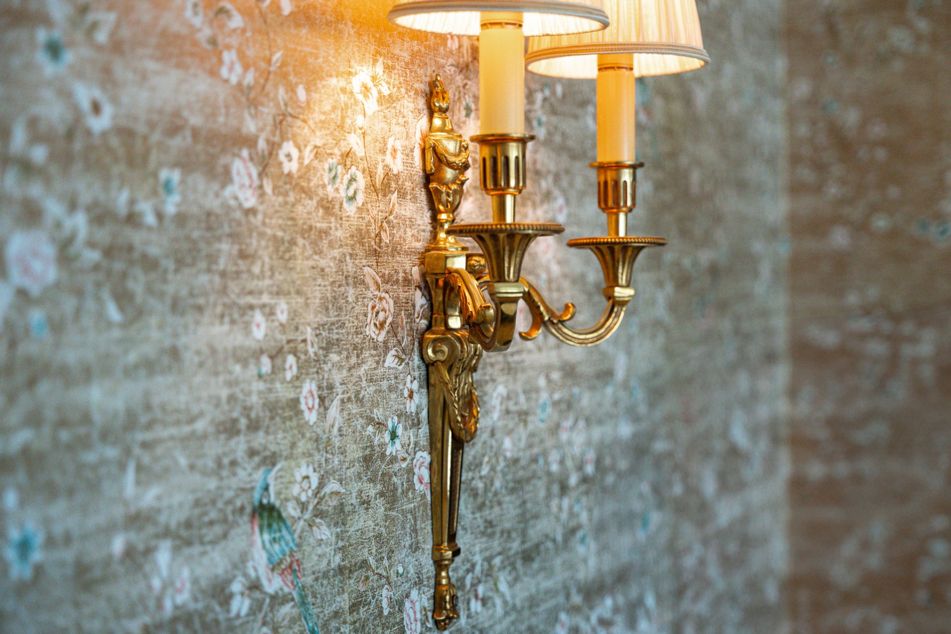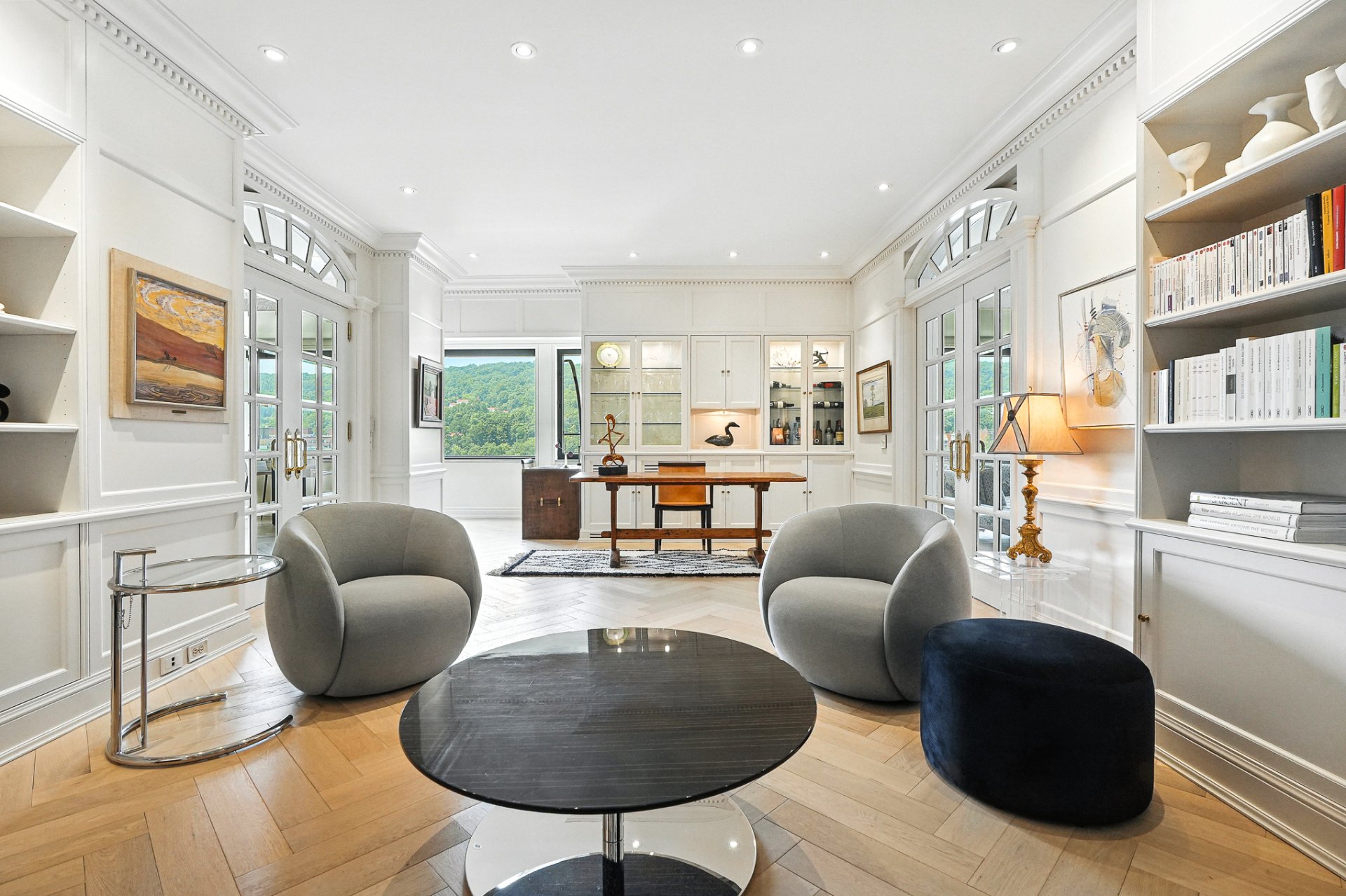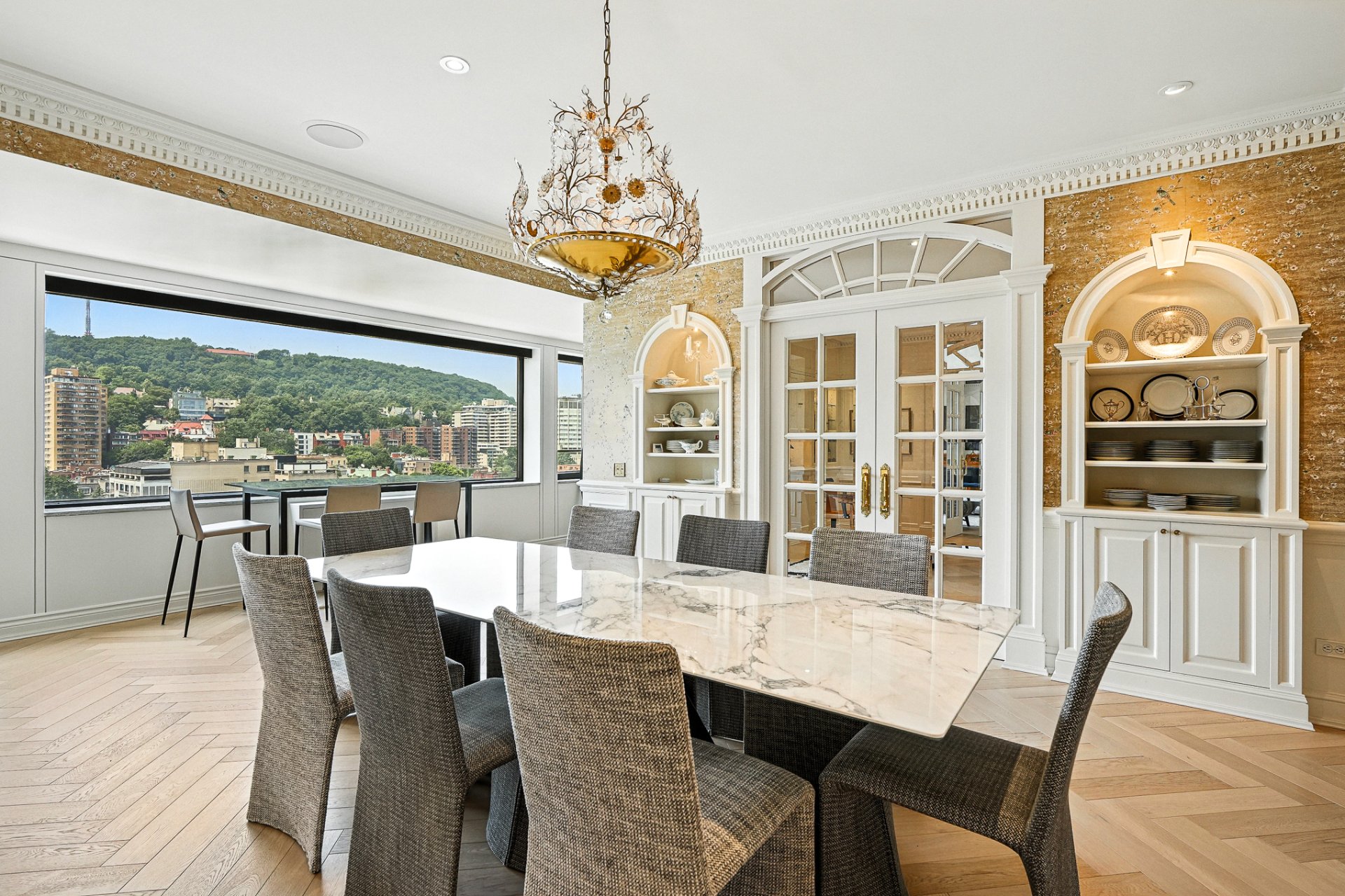 + Spacious dining room with built-in china cabinets, tapestry and wall sconces from the Hôtel de Paris