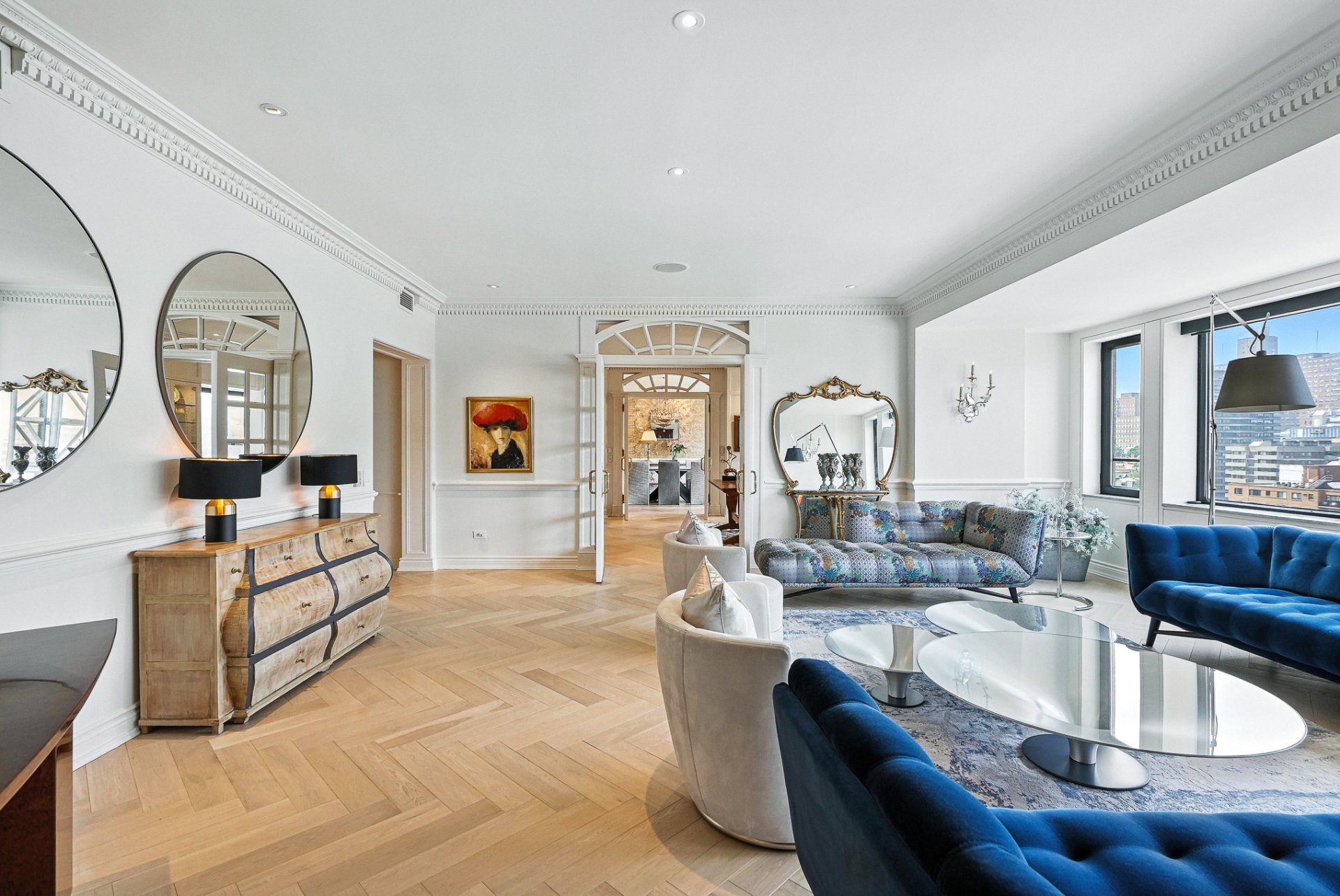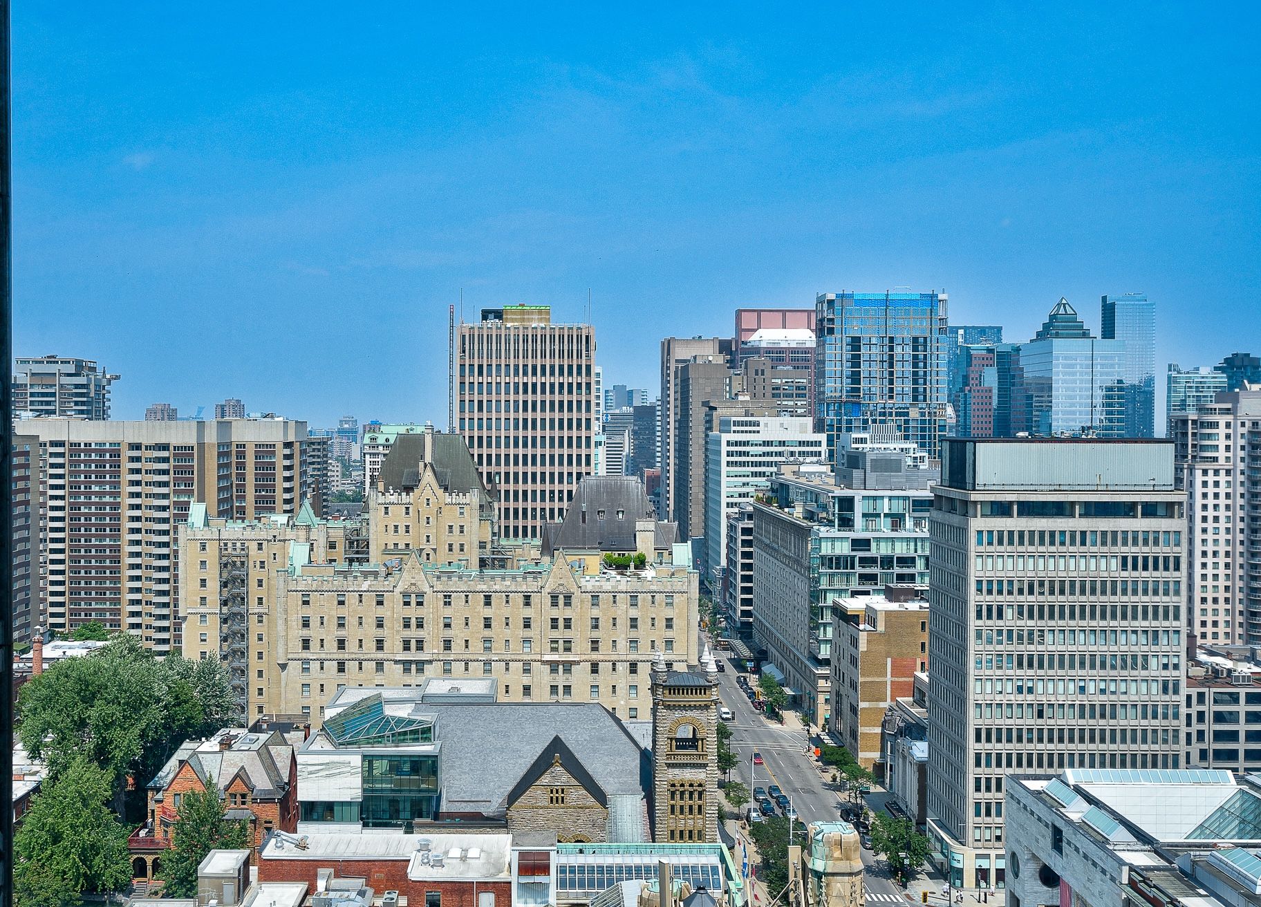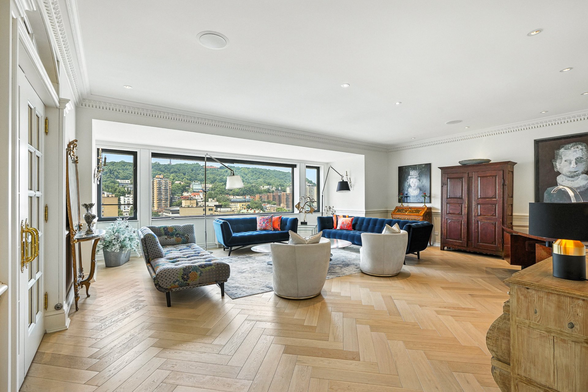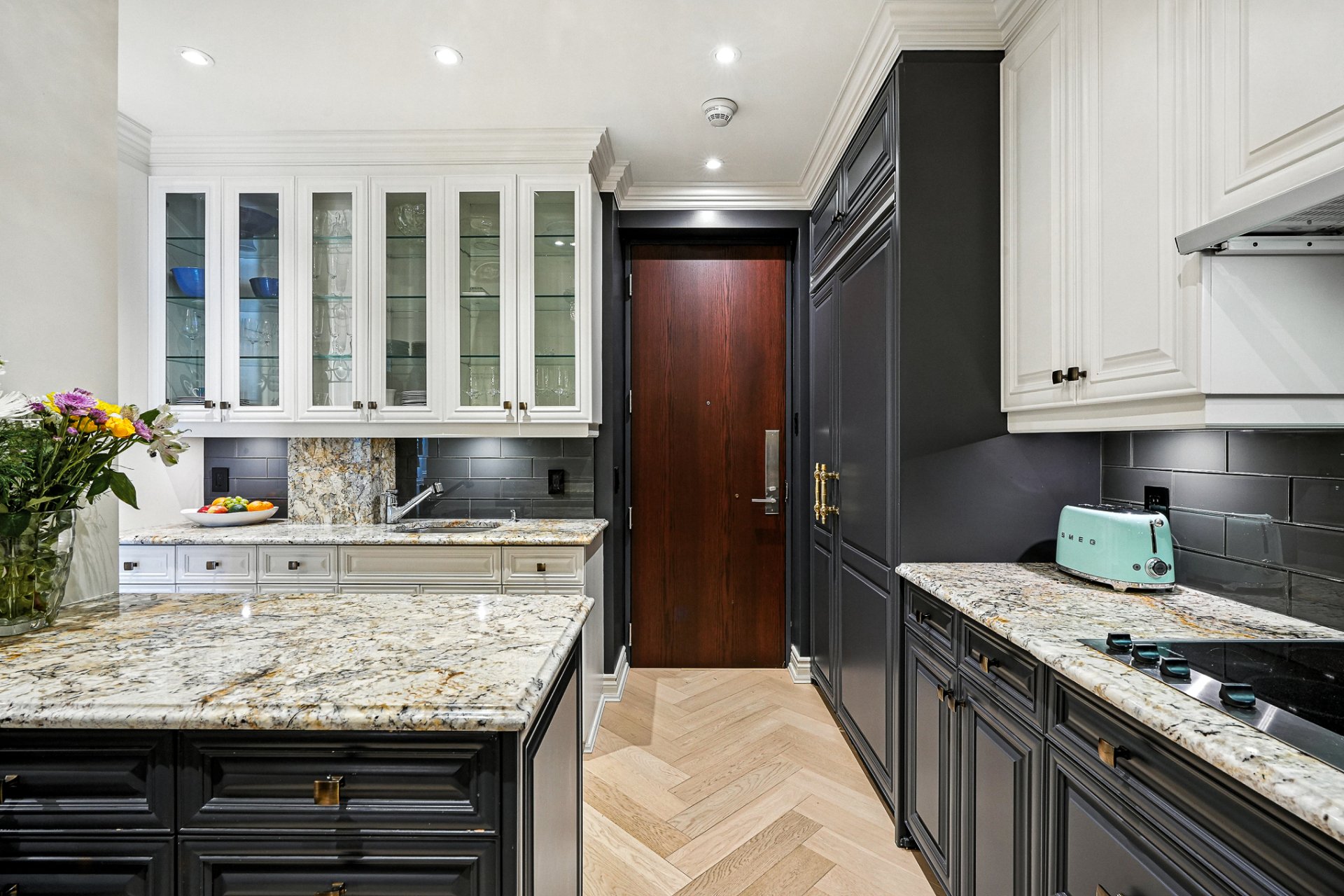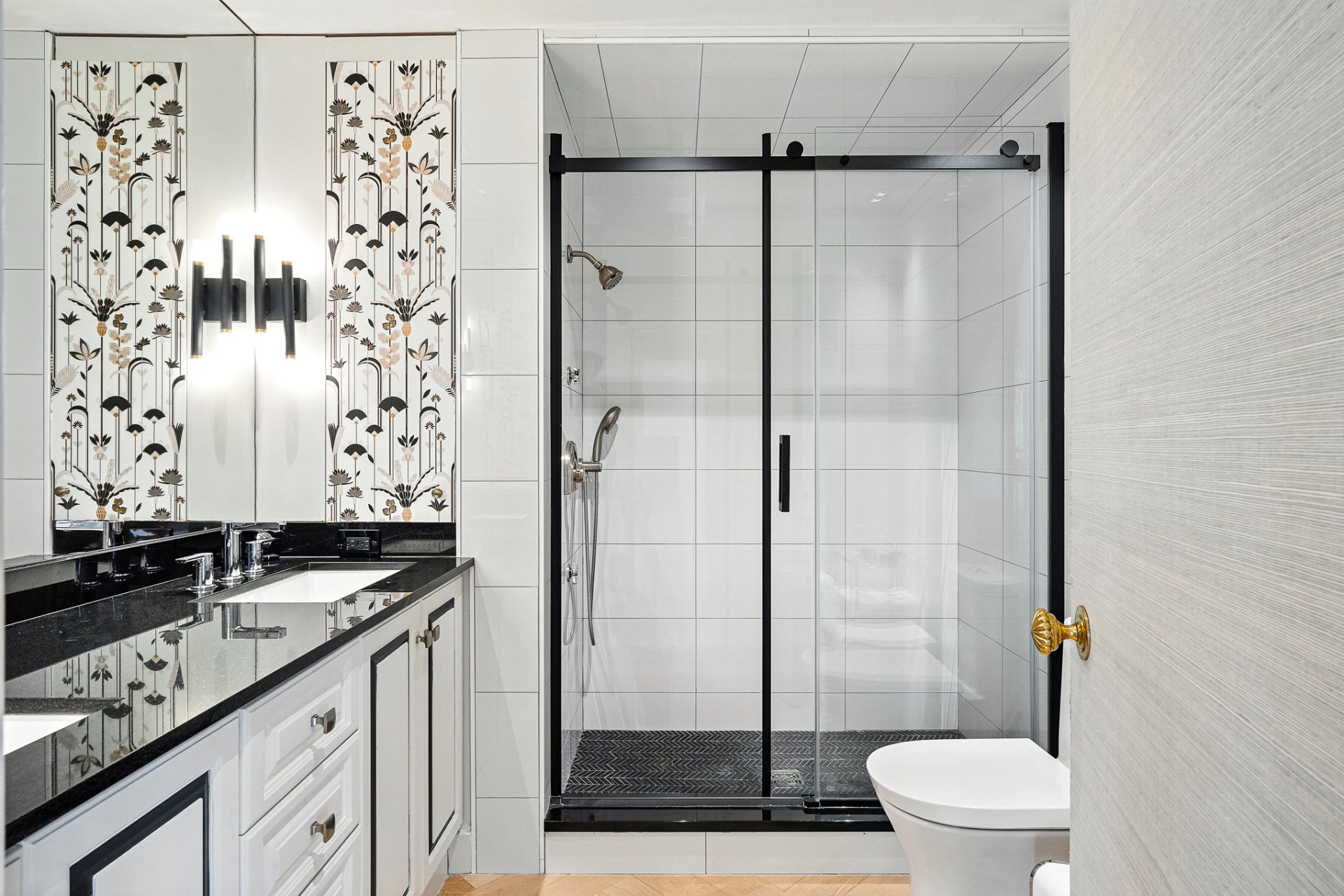 Located on the 18th floor of the Port-Royal building, in the heart of the prestigious Golden Square Mile, this Haussmann-style apartment combines classic refinement with spectacular panoramic views. Enfilade living rooms, sculpted mouldings, herringbone floors, red marble and luxurious tapestries evoke the charm of Versailles. The oversized windows offer breathtaking views of Mount Royal and the city lights. With the finest elegance, every detail reflects timeless sophistication. The Port-Royal: a renowned luxury building with 5-star hotel-style services, located near great restaurants, museums and Universities.