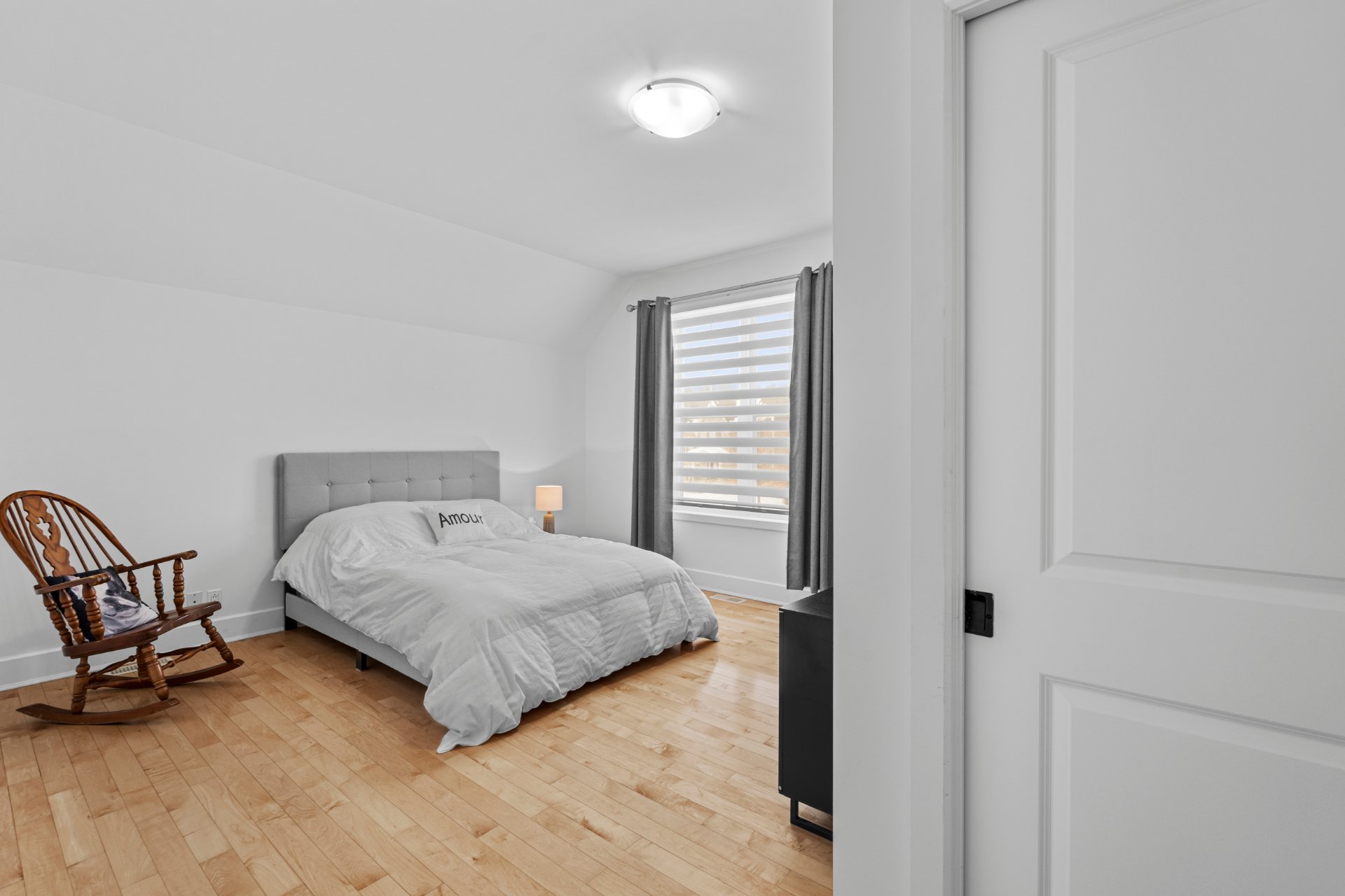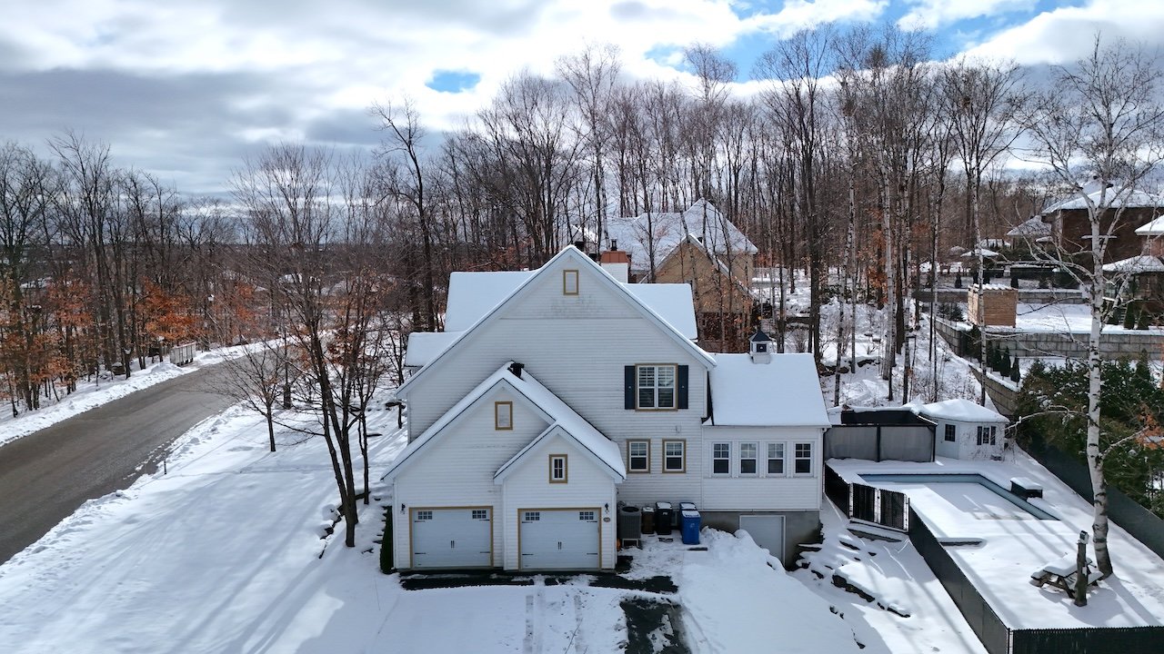 Magnificent country-style home situated on a lot of over 12,000 square feet in a peaceful, family-friendly neighborhood. The main floor features a large living room with a wood-burning fireplace for a warm ambiance, a dining room overlooking the woods, a spacious kitchen with a central island, a three-season sunroom, a laundry room, and a powder room. Upstairs, there are three bedrooms, including a master suite with a large walk-in closet and ensuite bathroom. The basement is fully finished. A heated double garage adds to the property's amenities. Outside, there is a beautiful landscaped, fenced yard with a heated in-ground pool.