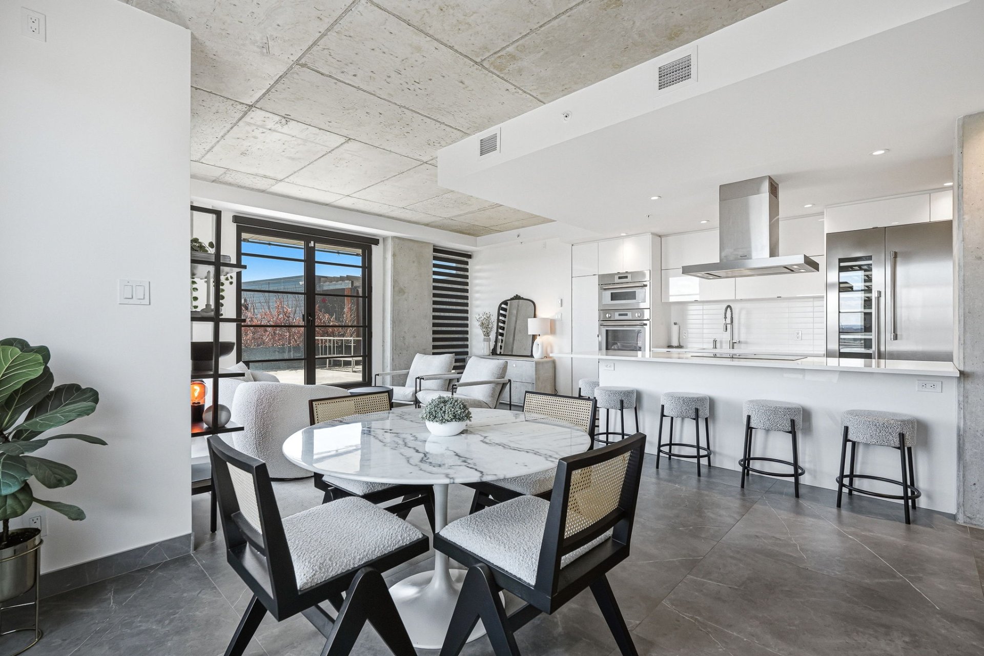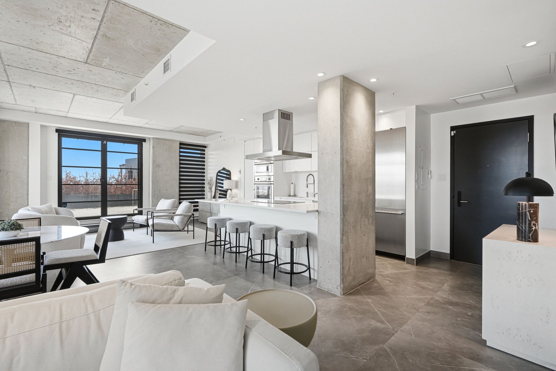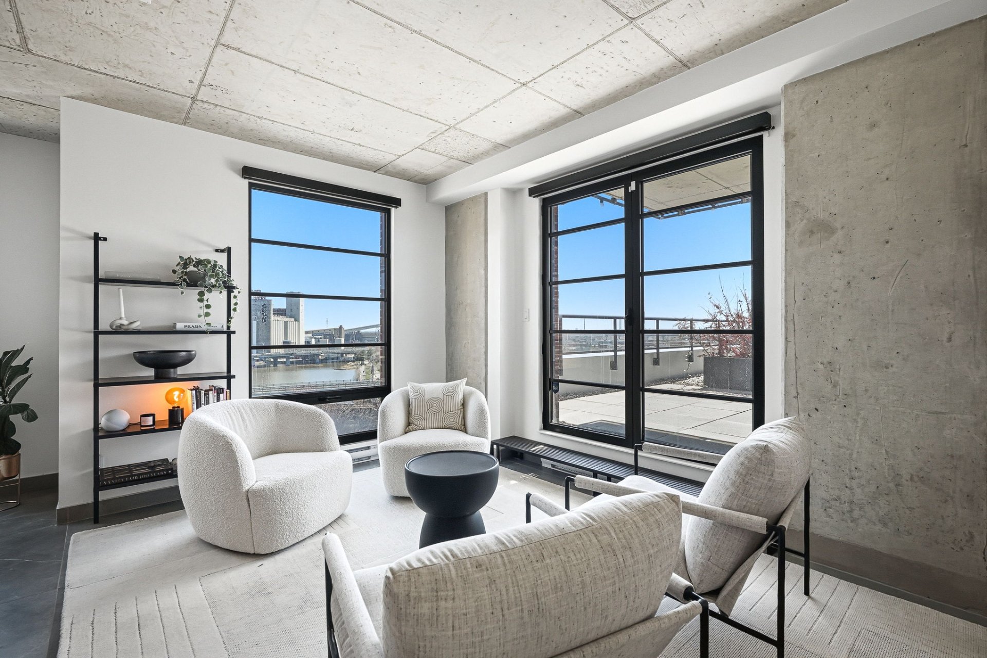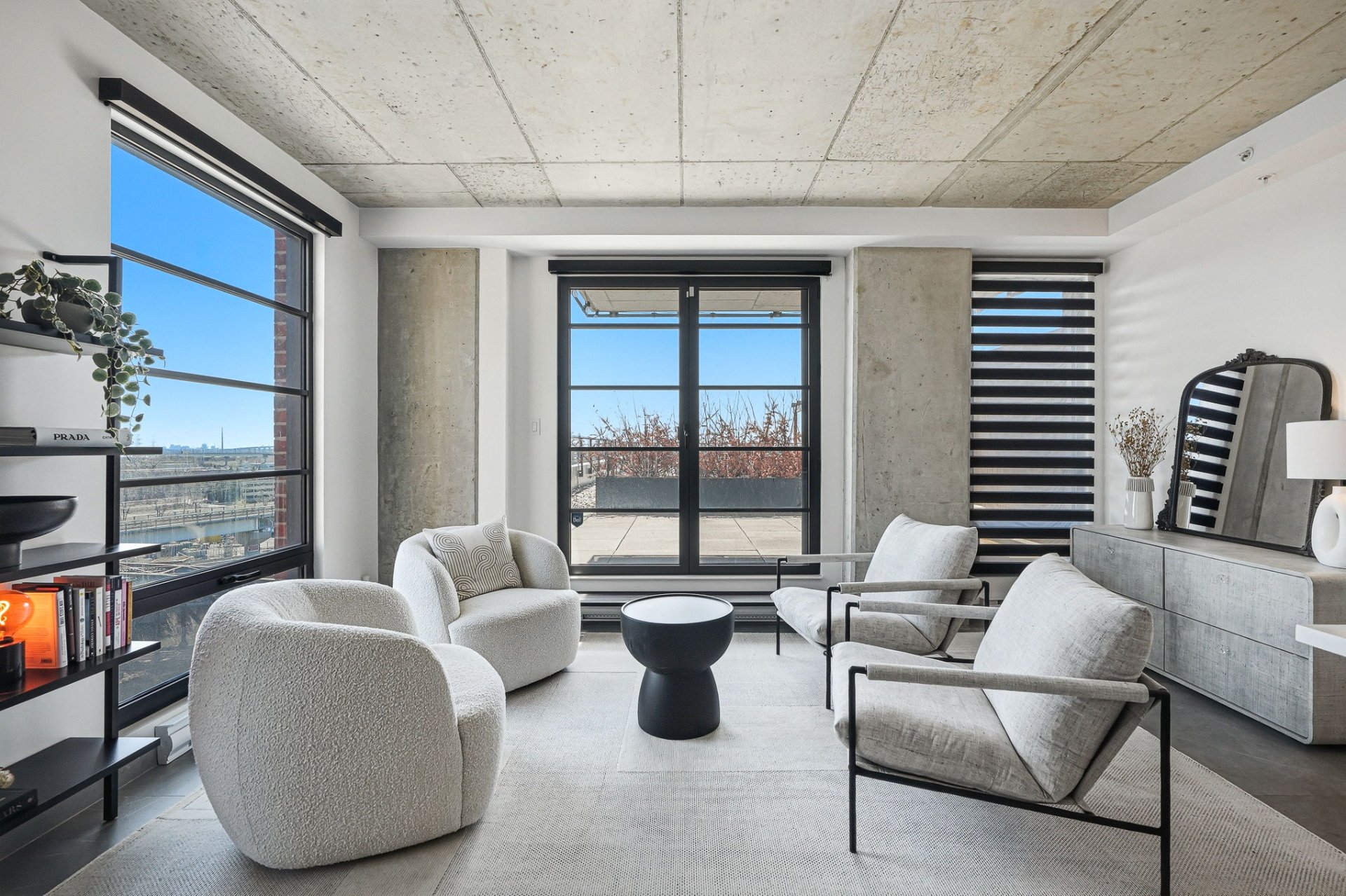 An exceptional residence in the heart of Griffintown, offering a spectacular private rooftop terrace -- a true rarity in urban living. A seamless extension of the living space, this exclusive outdoor retreat overlooks the Canal and captures iconic views of Five Roses, the Peel Basin, and the Champlain Bridge. Bathed in natural light, the interior is defined by refined design, floor-to-ceiling windows, and a distinctly elevated aesthetic. A singular property with curated finishes, crafted for a discerning clientele seeking elegant, private, and truly exceptional living.