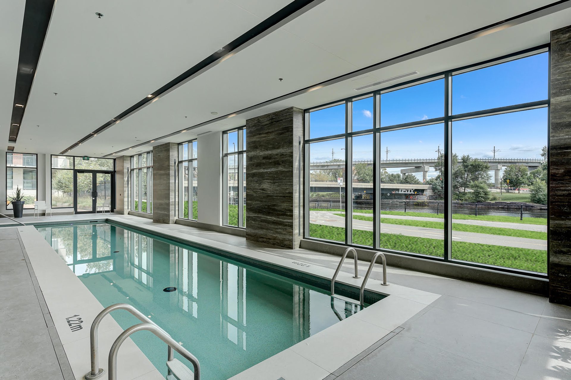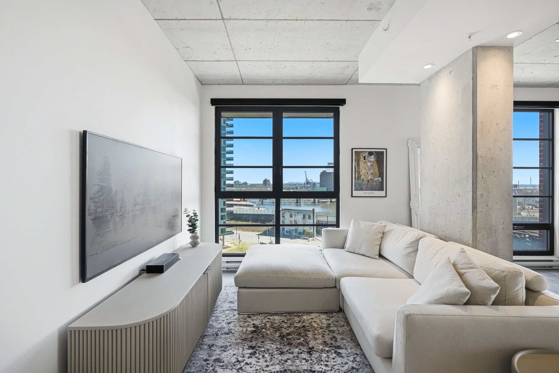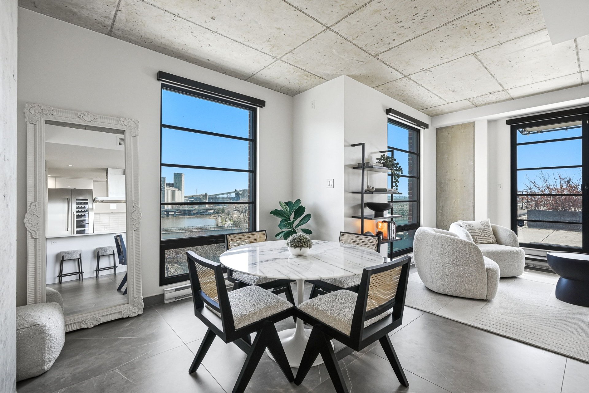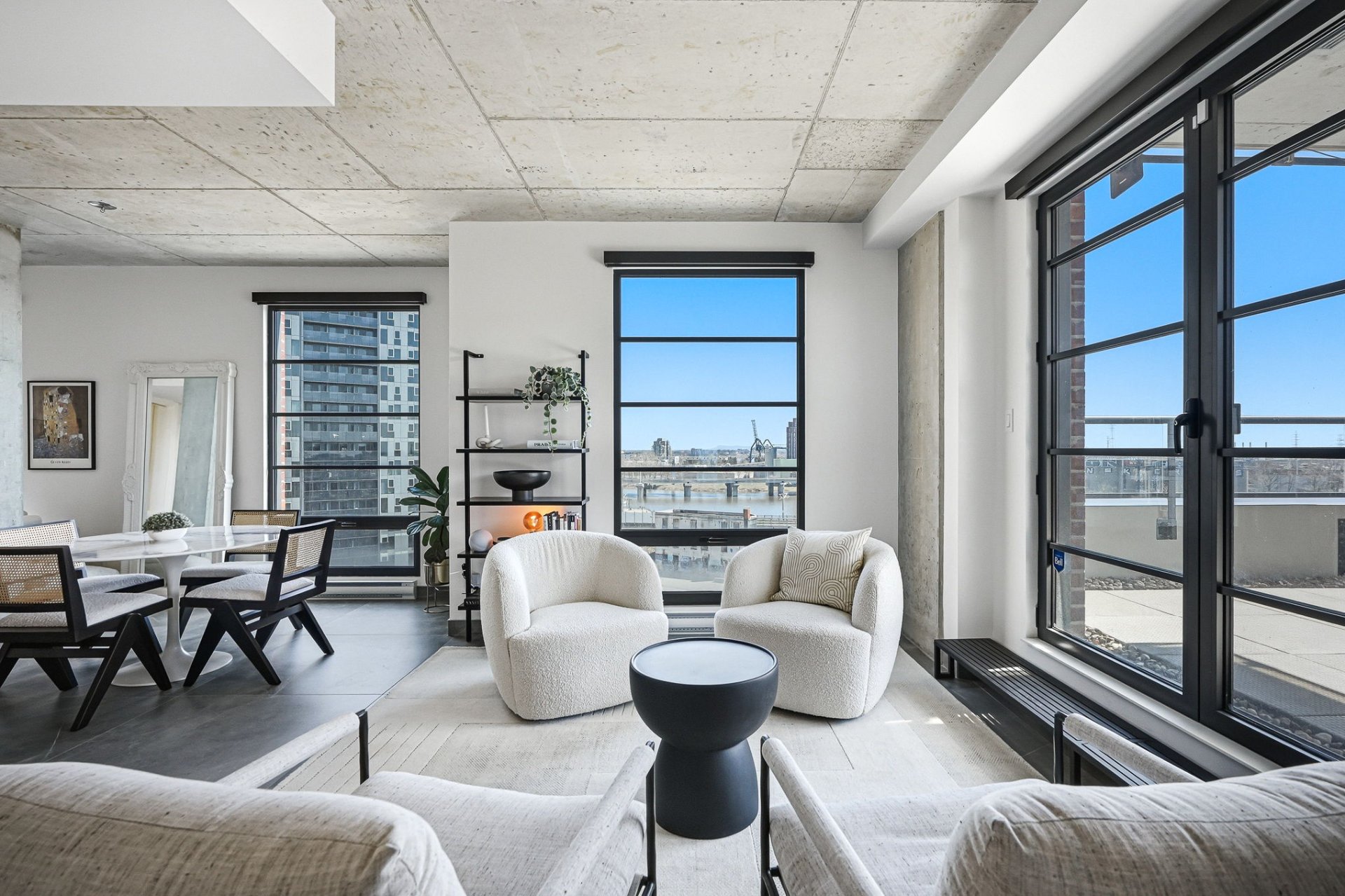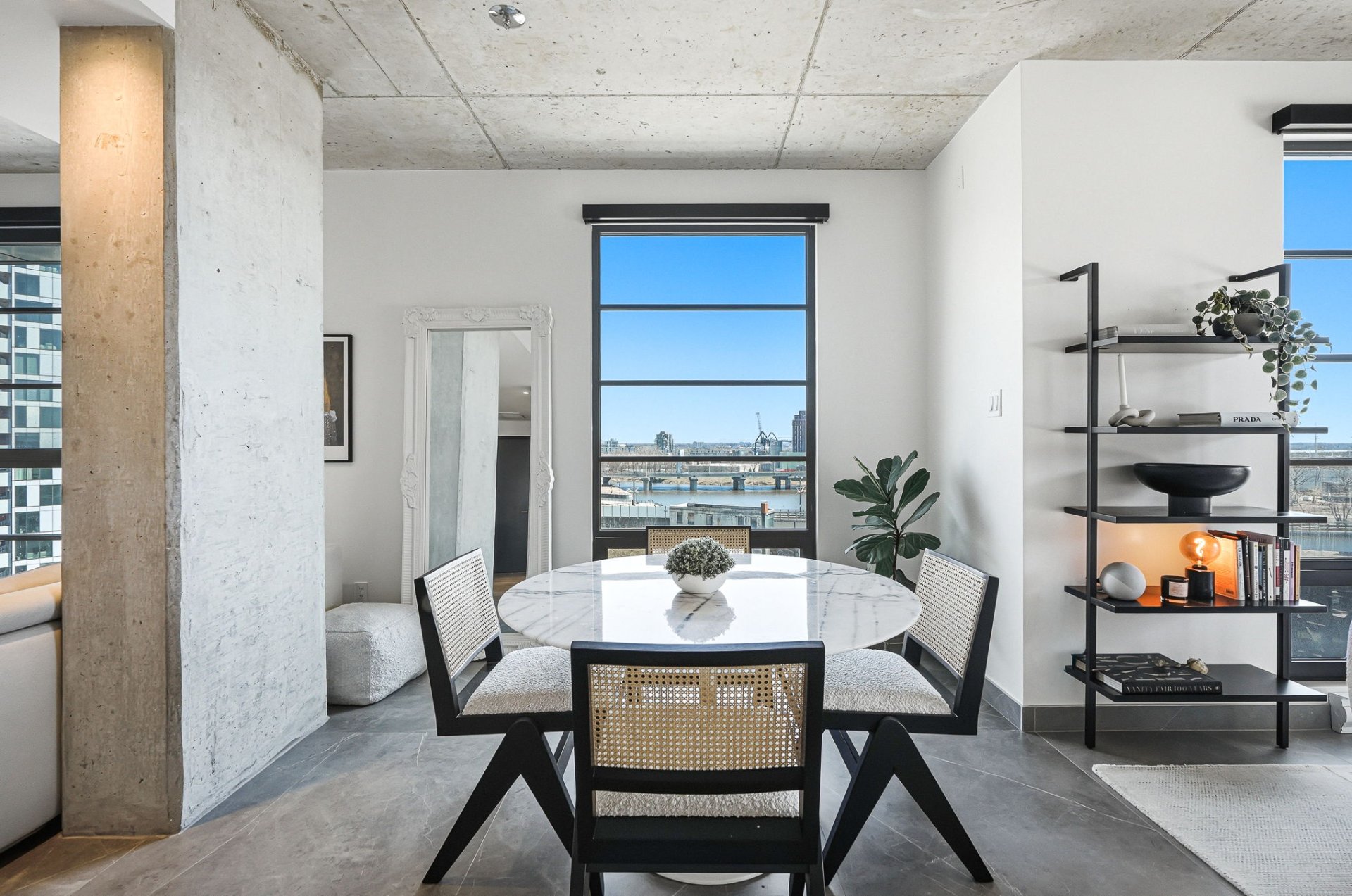 * Bright open-concept layout with floor-to-ceiling windows and striking views over the Canal