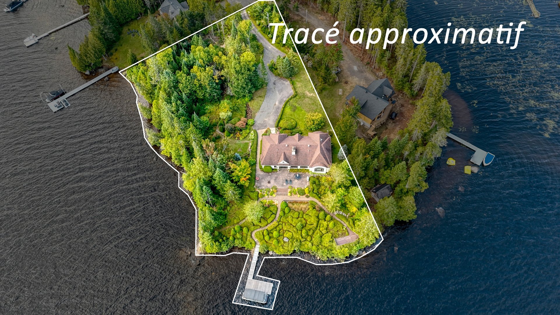 Set on an absolutely unique site, this property unfolds across a private peninsula, offering unmatched privacy and tranquility. With nearly 455 linear feet along the crystal-clear shores of Lac Archambault, this 58,500 sq. ft. estate embodies the rarity and privilege of a breathtaking natural setting.