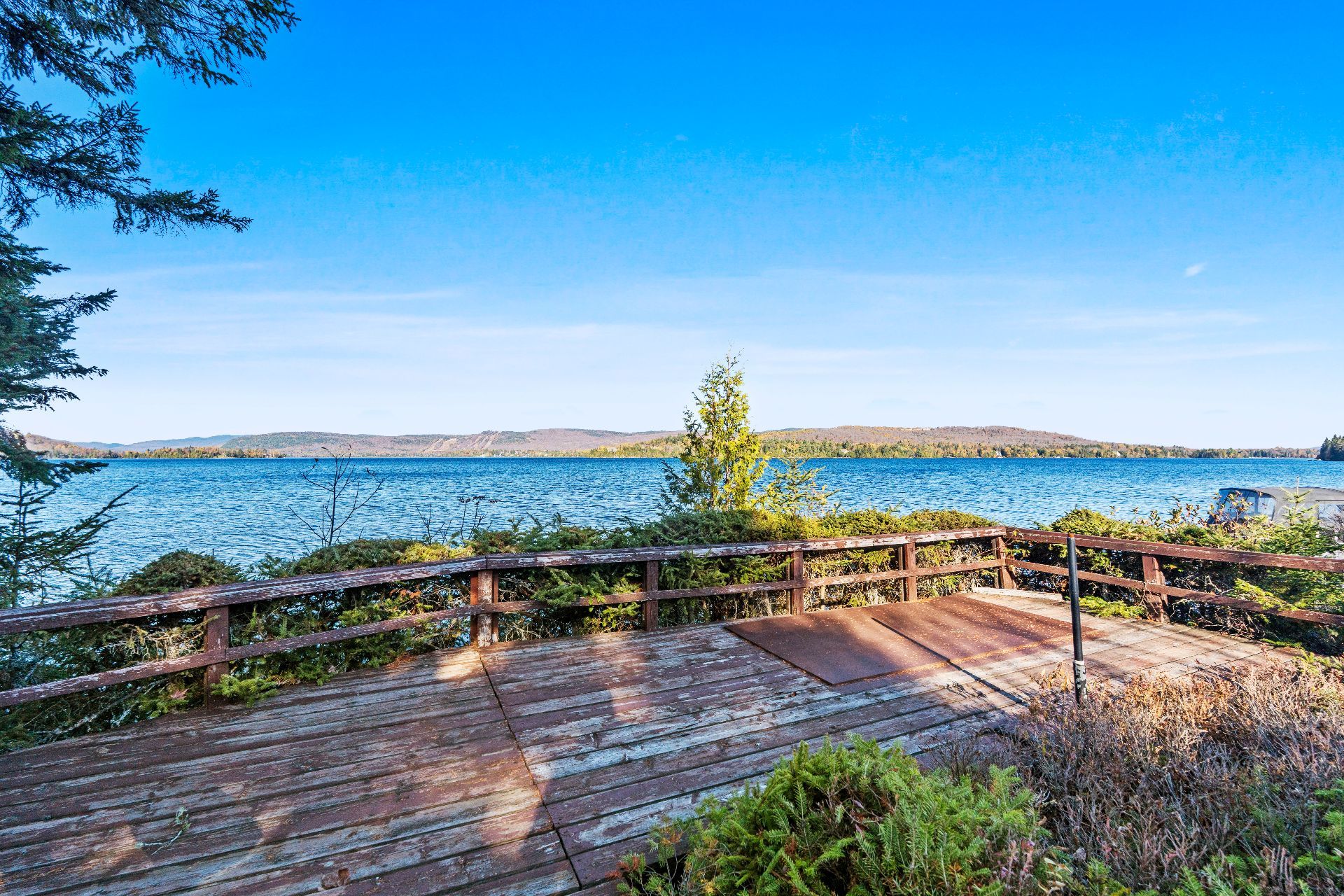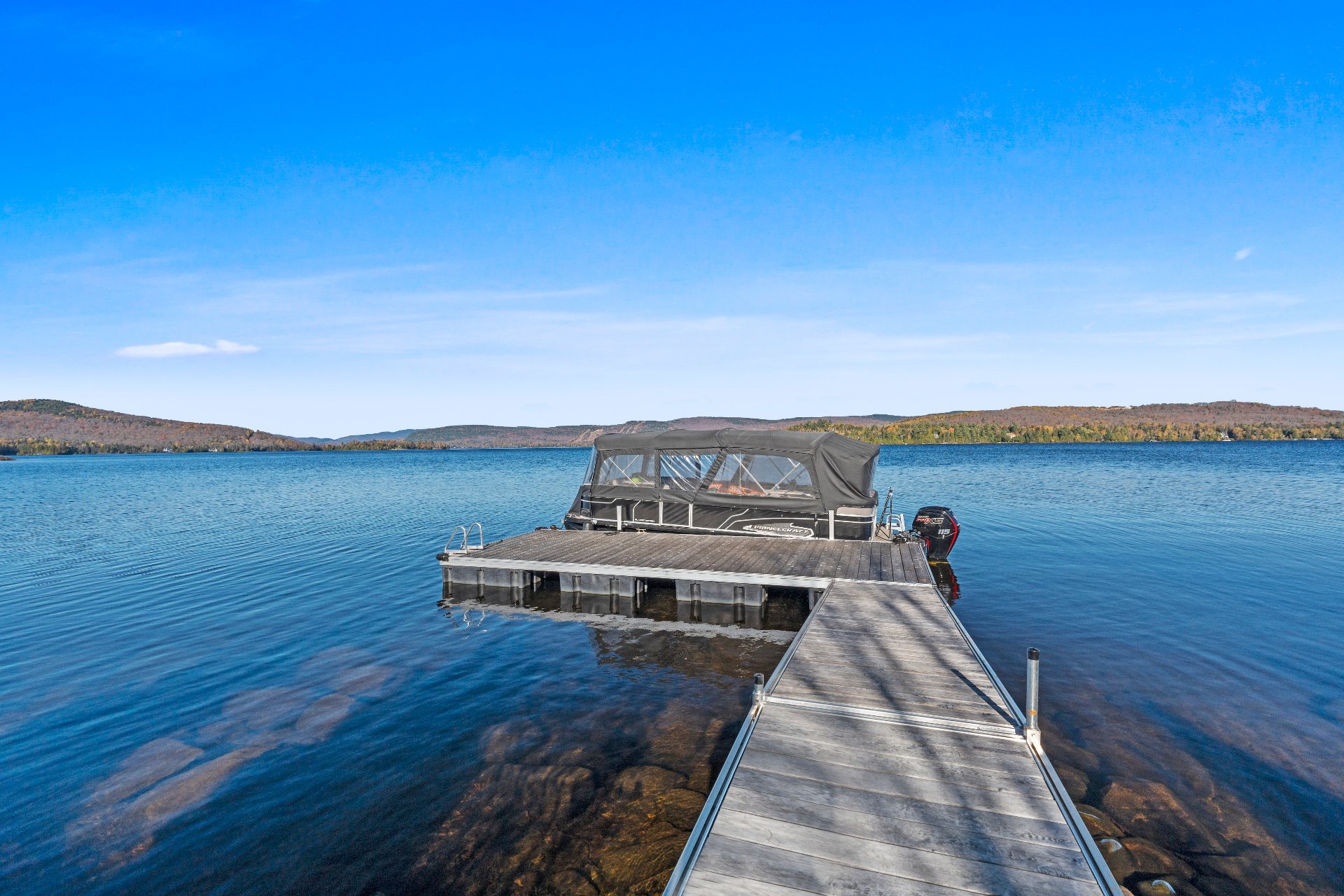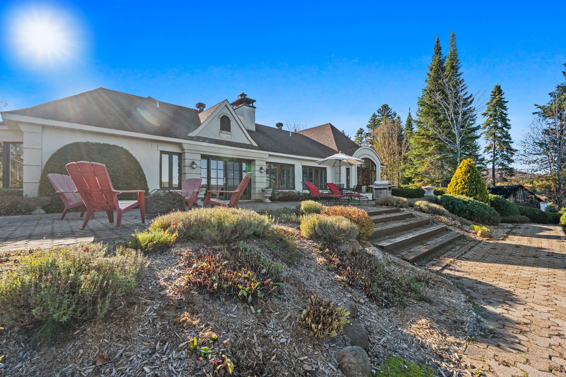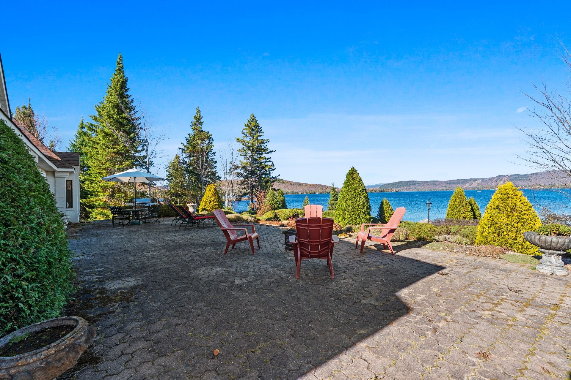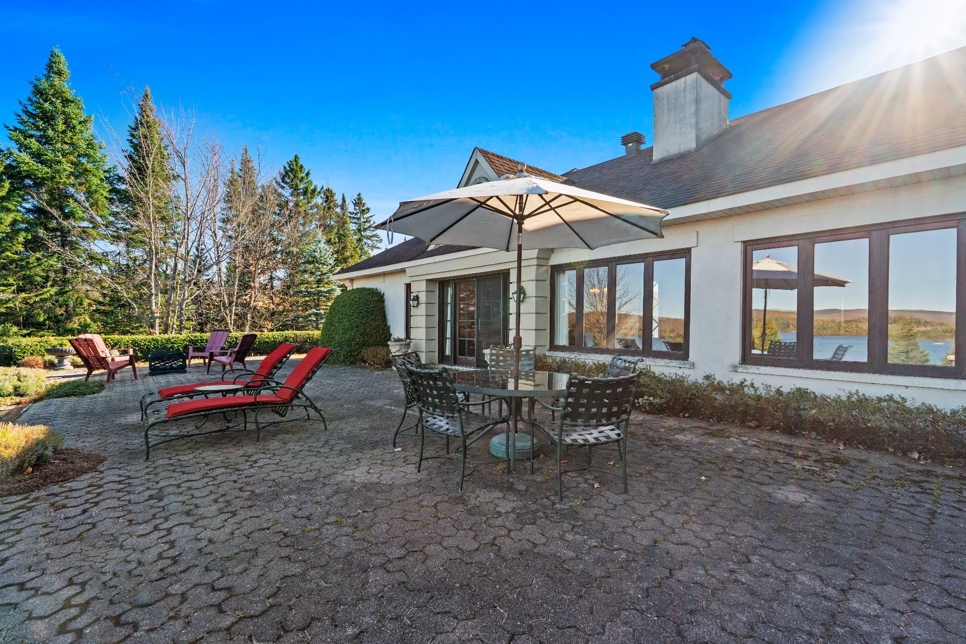 Nestled on a private peninsula on Lac Archambault, this exceptional residence spans over 58,500 sq. ft. of flat land and enjoys 455 linear feet of waterfront. Meticulously renovated in 2009, it offers 2,733 sq. ft. of living space, including 3 bedrooms, 2 bathrooms, and sun-filled living areas. The panoramic view of the mountains and Mont Garceau lends each room a unique atmosphere. Manicured gardens, a spacious terrace, and a private dock complete this rare setting, where nature, prestige, and serenity blend in perfect harmony.
