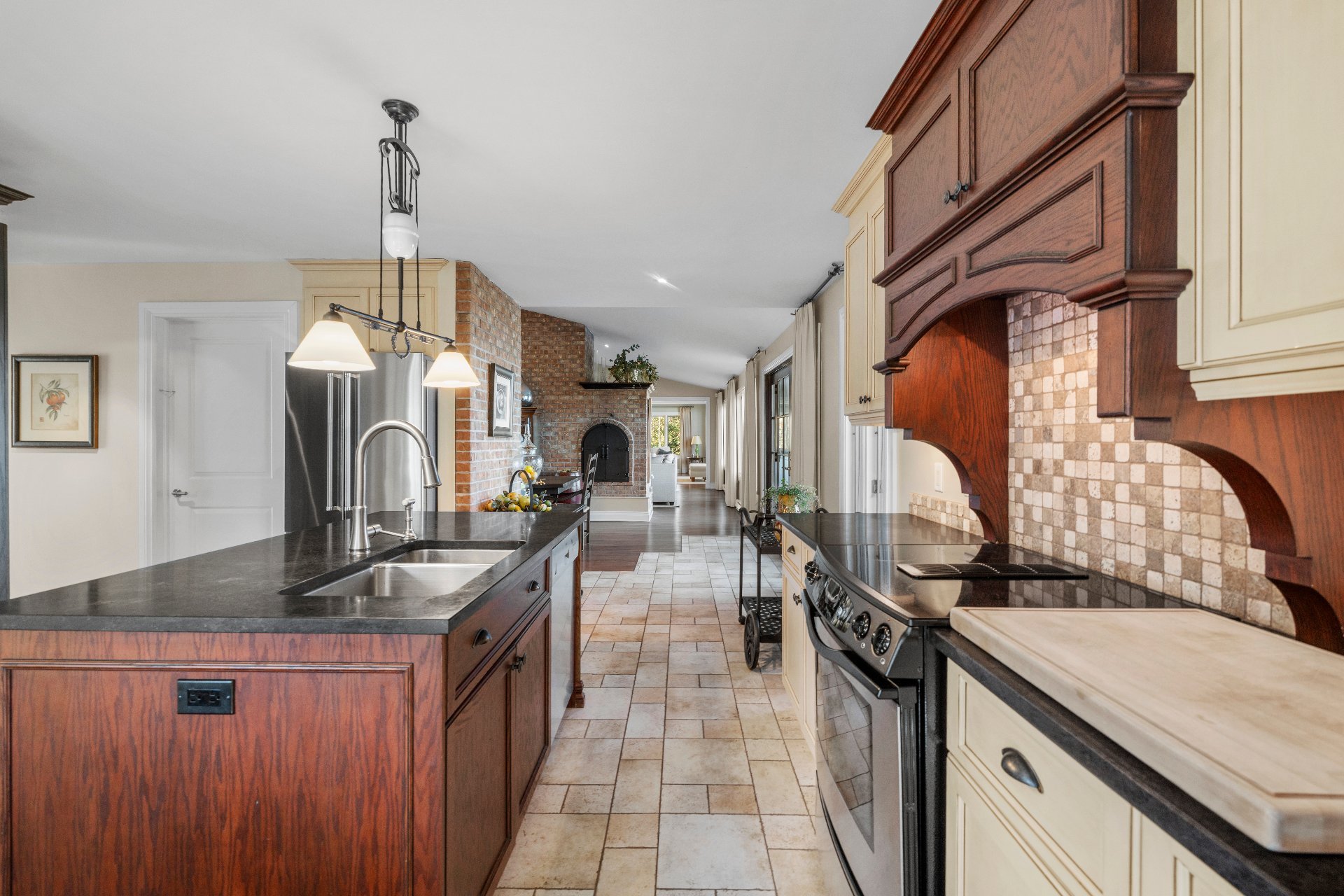 - Wood fireplace