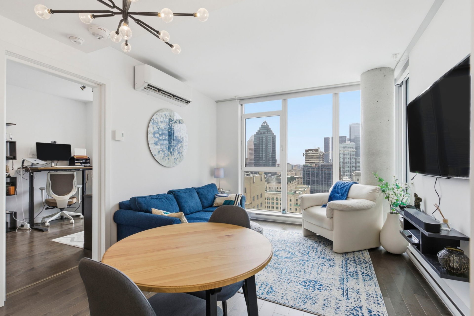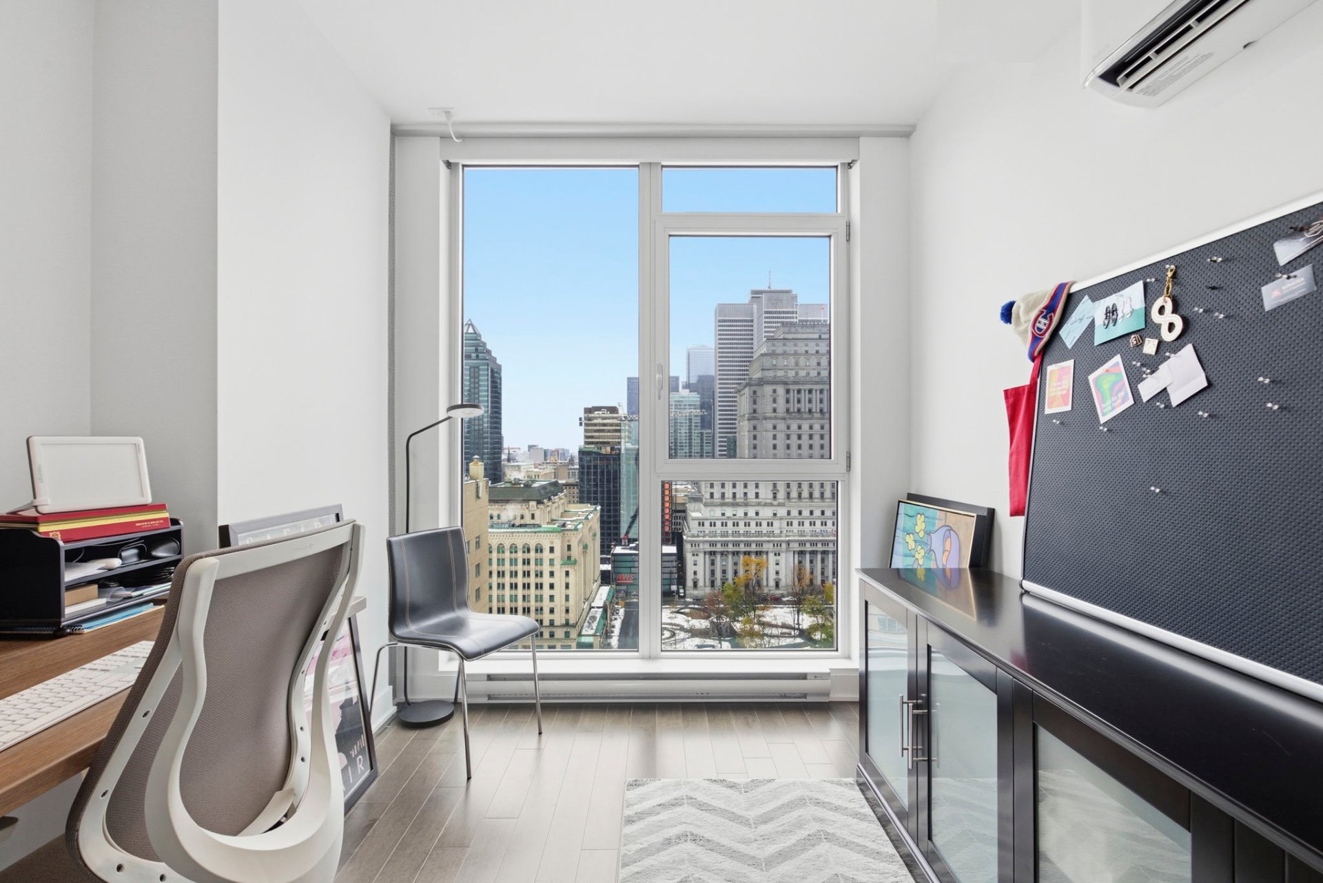 Situated in the prestigious Phase 2 of Drummond, this elegant two-bedroom condominium is set in the heart of Montreal's coveted Golden Square Mile. Designed for refined urban living, the residence features floor-to-ceiling windows that flood the space with natural light while showcasing spectacular city views. Contemporary finishes and a thoughtfully designed layout create a seamless balance of style and comfort.