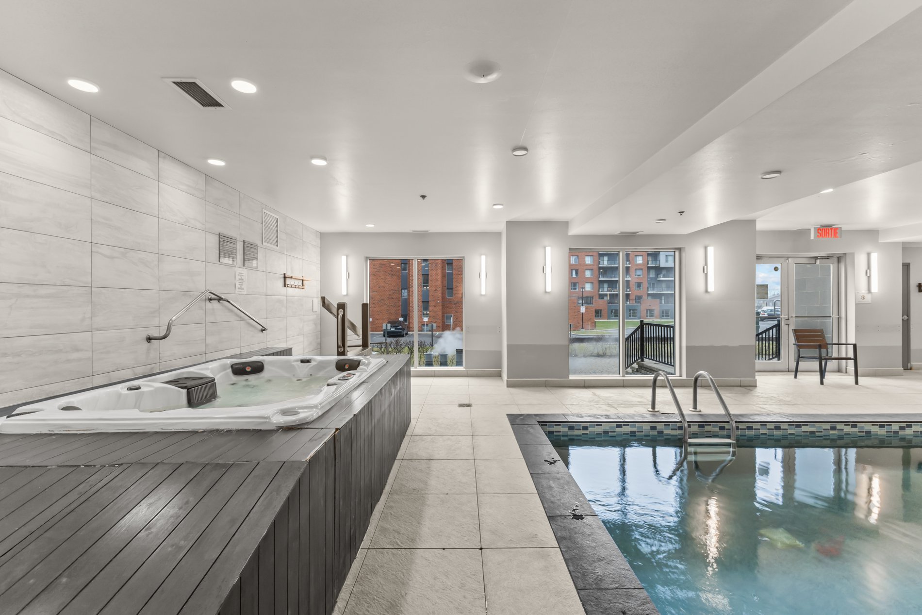 - Indoor heated swimming pool with sauna and spa;