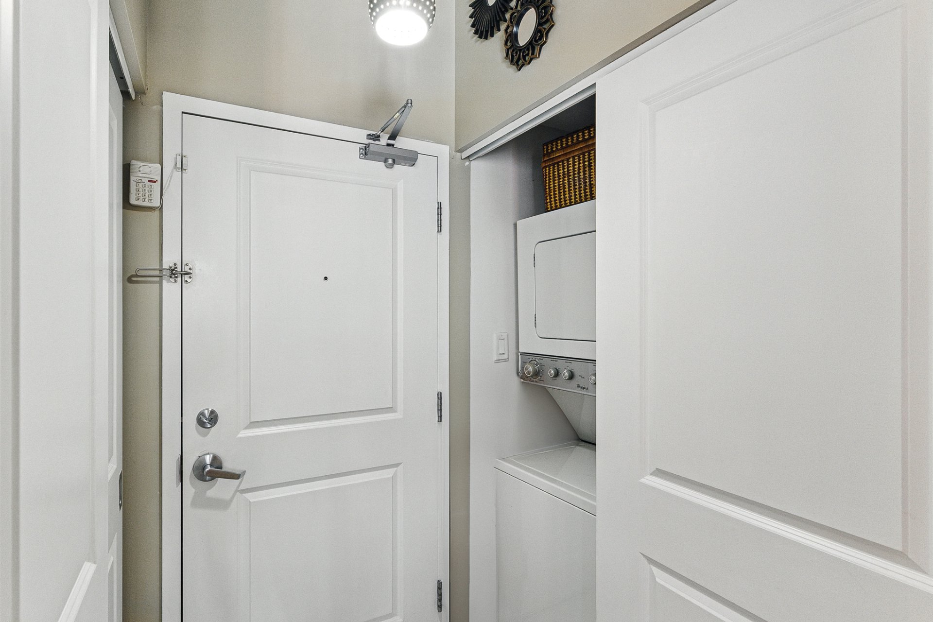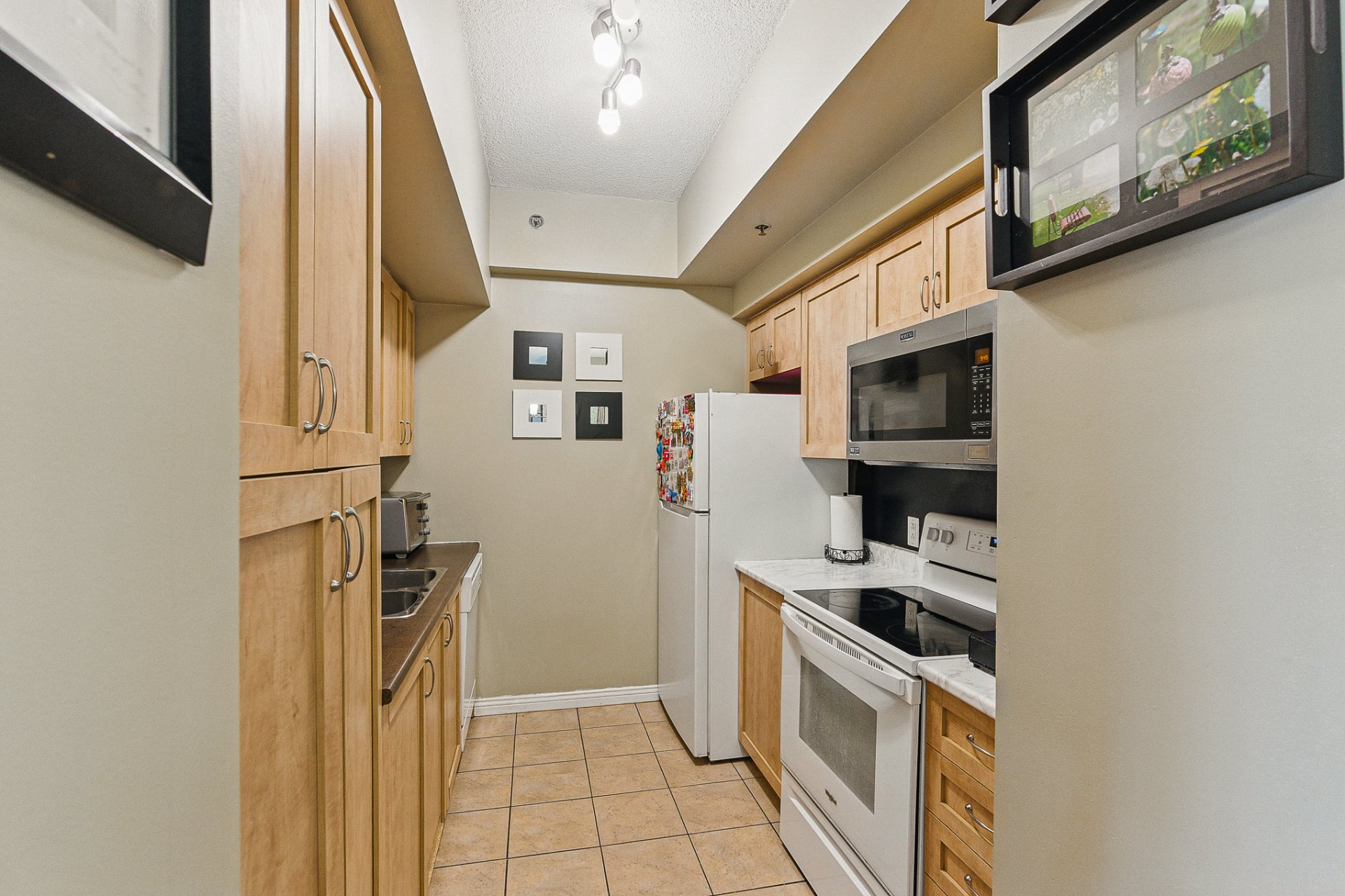 - Fridge, stove, dishwasher, washer, dryer, interior parking space.