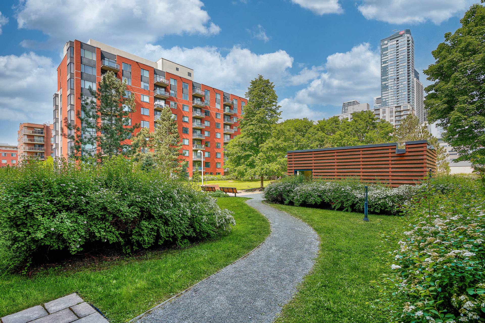 Le Jardin Windsor - Notre-Dame - Discover this prime location at the crossroads of downtown Montreal and Griffintown, a vibrant and bustling neighborhood. This bright condo, located on the 8th floor, offers two bedrooms and one bathroom, as well as an indoor parking space. Enjoy close proximity to all essential services: shops, restaurants, parks, bike path, Lachine Canal, and much more, with several metro stations accessible in just 5 minutes.