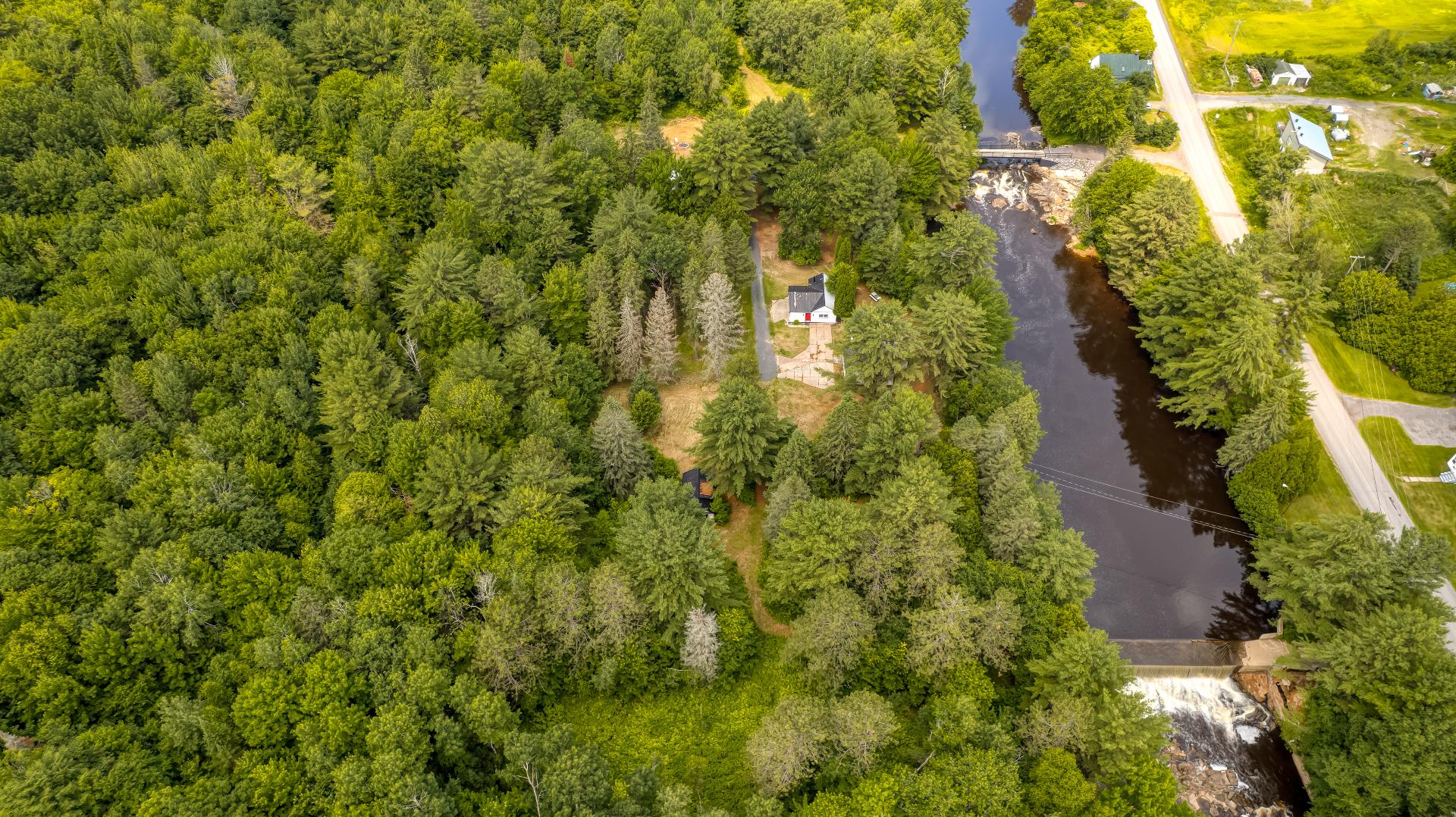 Private estate nestled in lush natural surroundings, accessible by crossing a private bridge leading to a preserved world. The river borders the property, which features a dam, waterfalls, three ponds, wooded trails, wild berries, and abundant wildlife. The carefully renovated main residence offers three bedrooms and open-concept living areas with river views. Several additional buildings complete this exceptional site, offering endless possibilities. Sold with the adjacent lot (MLS21015405), for a total area of 3,731,807.95 sq. ft. A peaceful haven or the perfect starting point for a grand project. A truly exceptional property to discover.