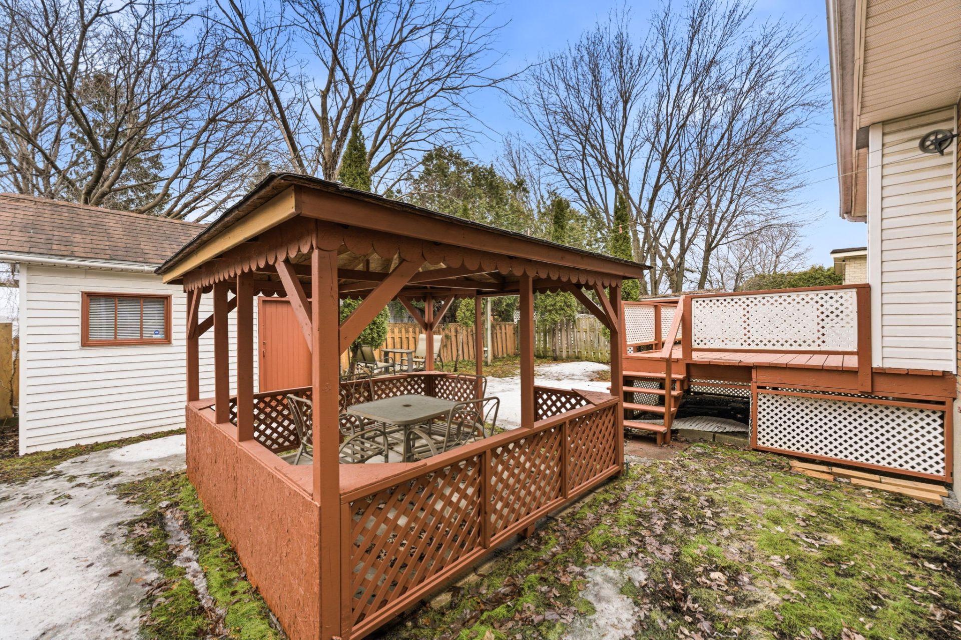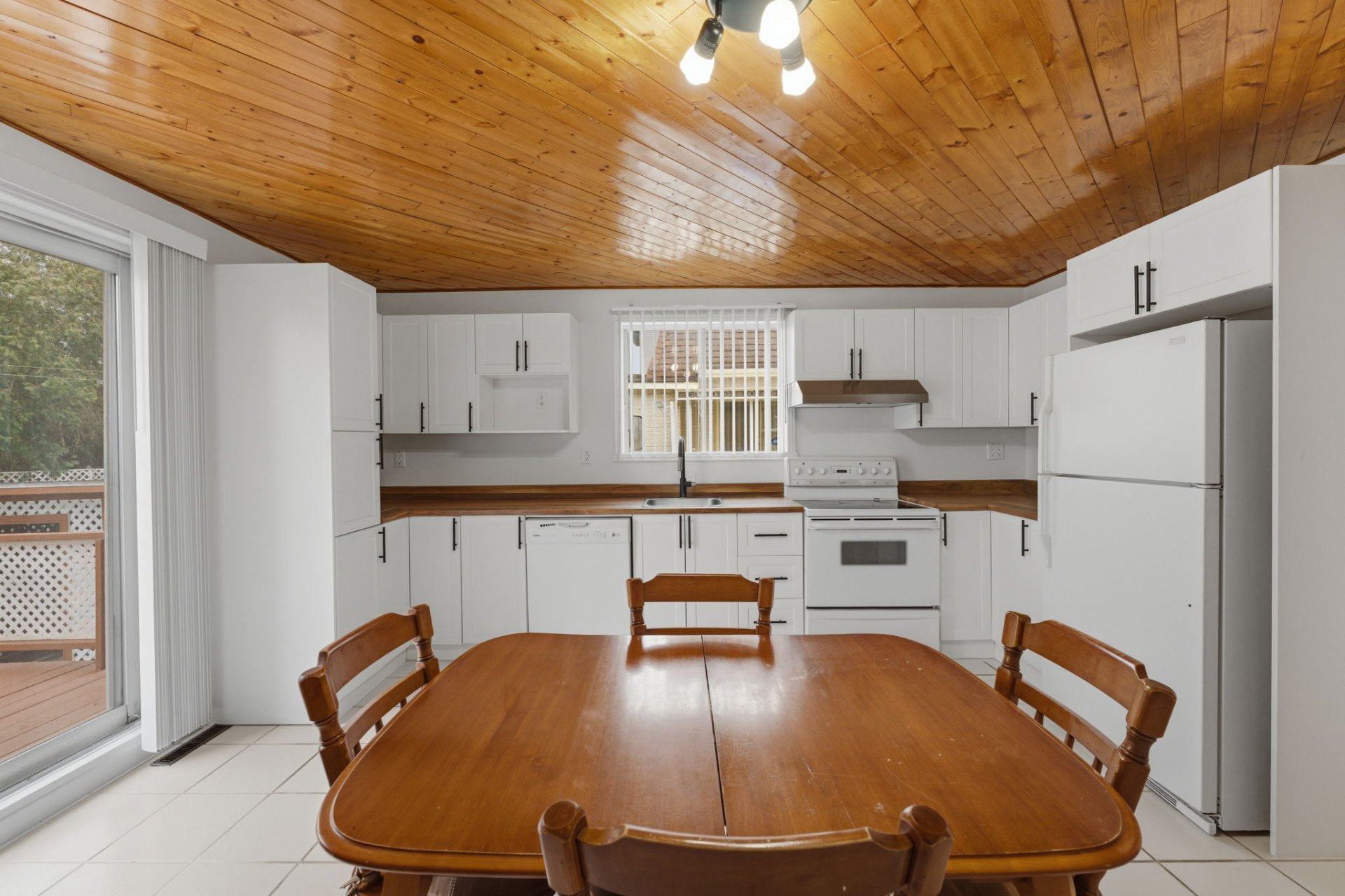- Light fixtures, blinds, convectair heaters, central vacuum and accessories, refrigerator, dishwasher, stove, dining table, four (4) chairs, china cabinet, beds in both bedrooms, basement banquette and table, living room furniture (loveseat, two armchairs and tables), outdoor furniture, and workshop shelving in the basement.