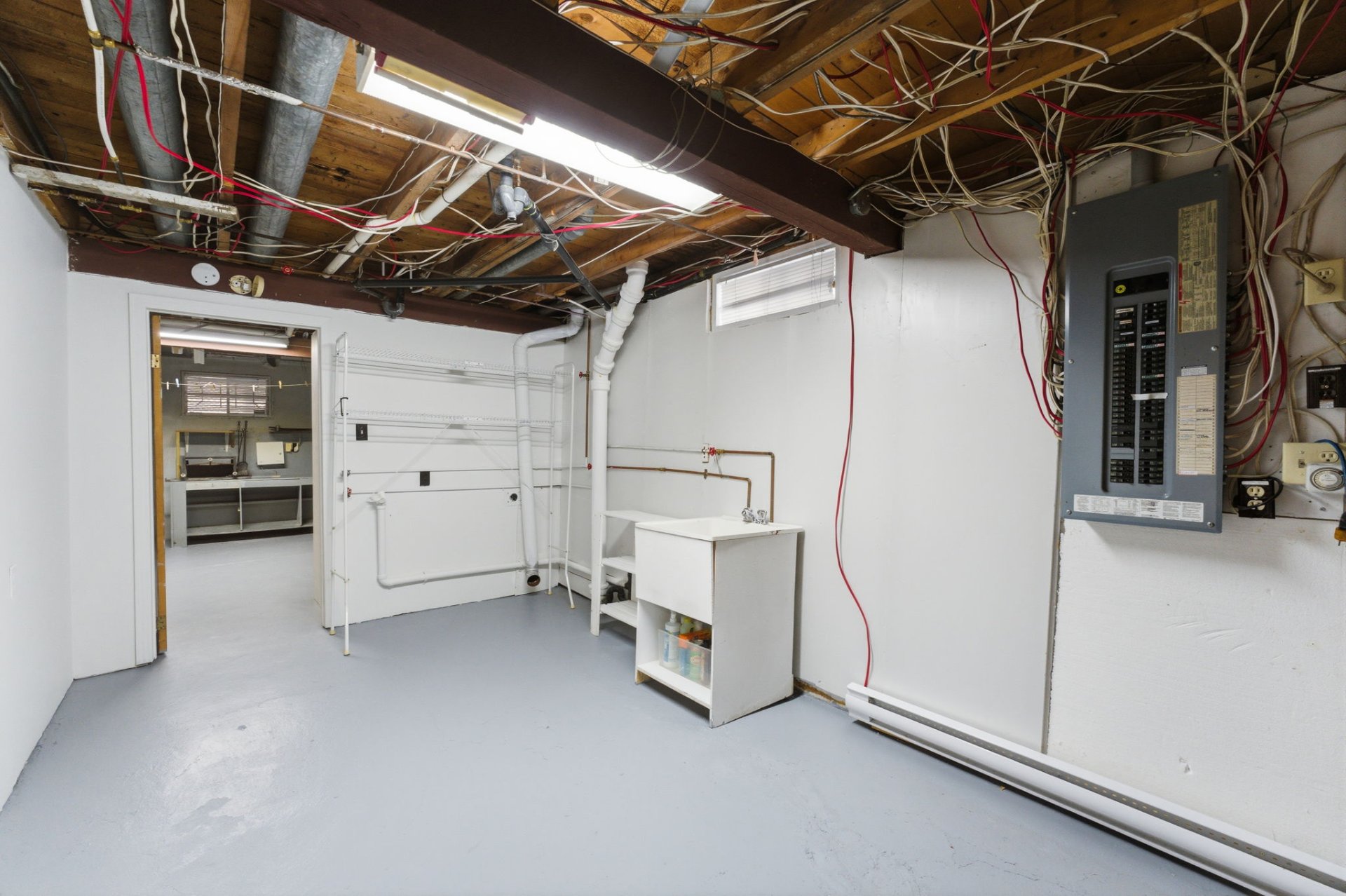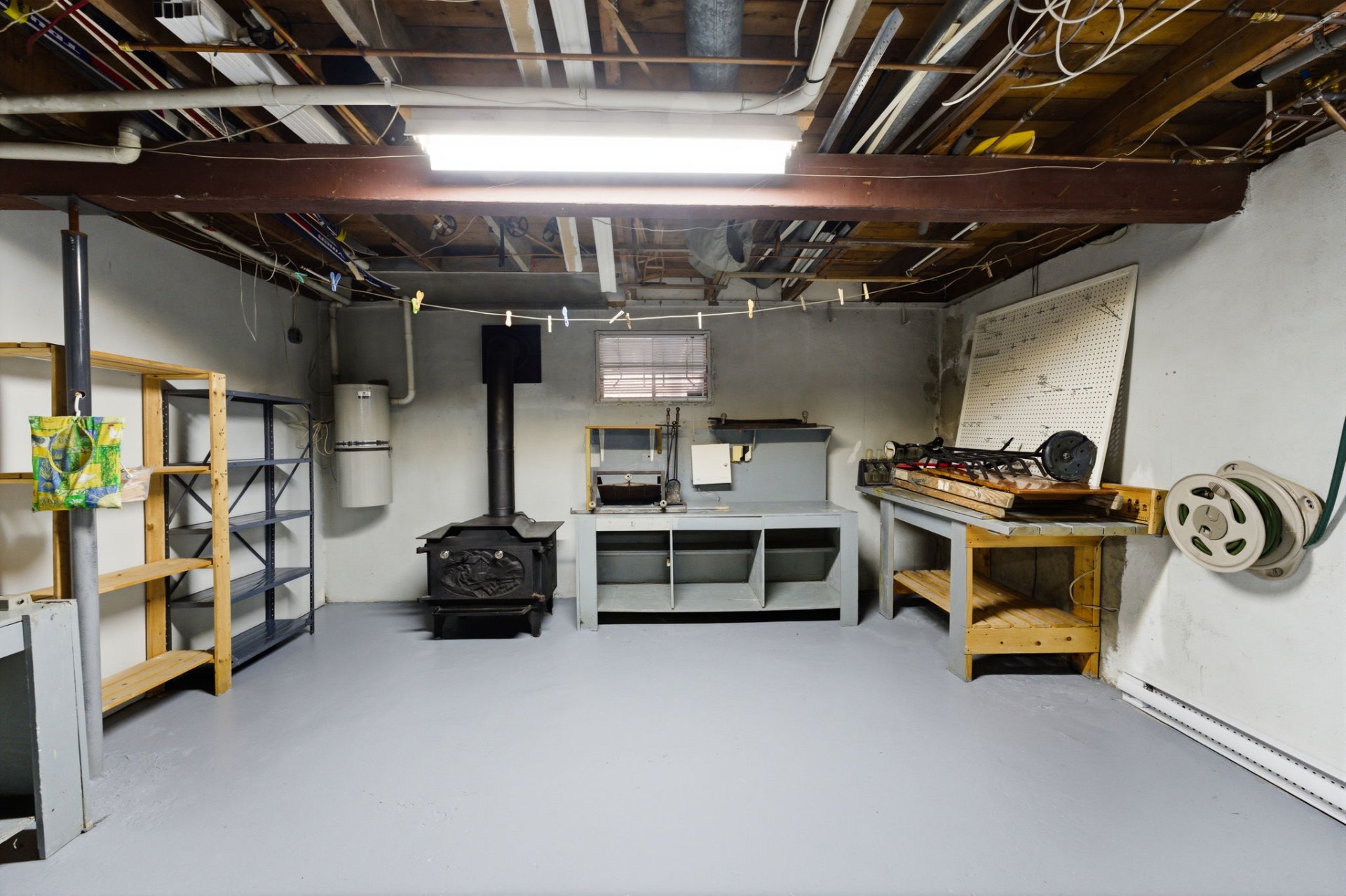 Partially finished basement offering a spacious family room, an additional bedroom and generous storage. Small powder room located under the staircase. Laundry area on a concrete slab. Includes workshop space and cold room.