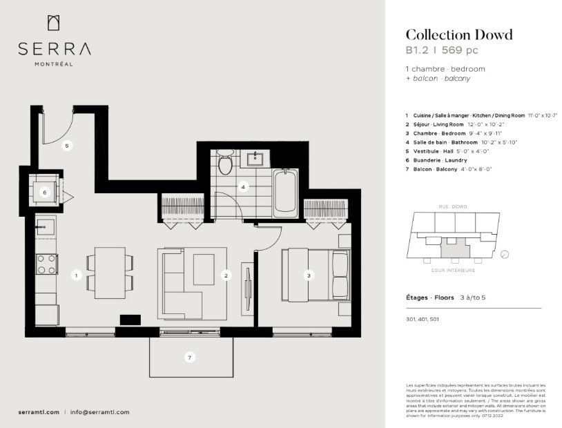 Prime downtown Montréal location near the Quartier des Spectacles, Griffintown, Old Montréal, and the Lachine Canal. Easy access to public transportation, bike paths, restaurants, cafés, shops, and green spaces. A vibrant and highly sought-after area, ideal for enjoying the best of urban living.