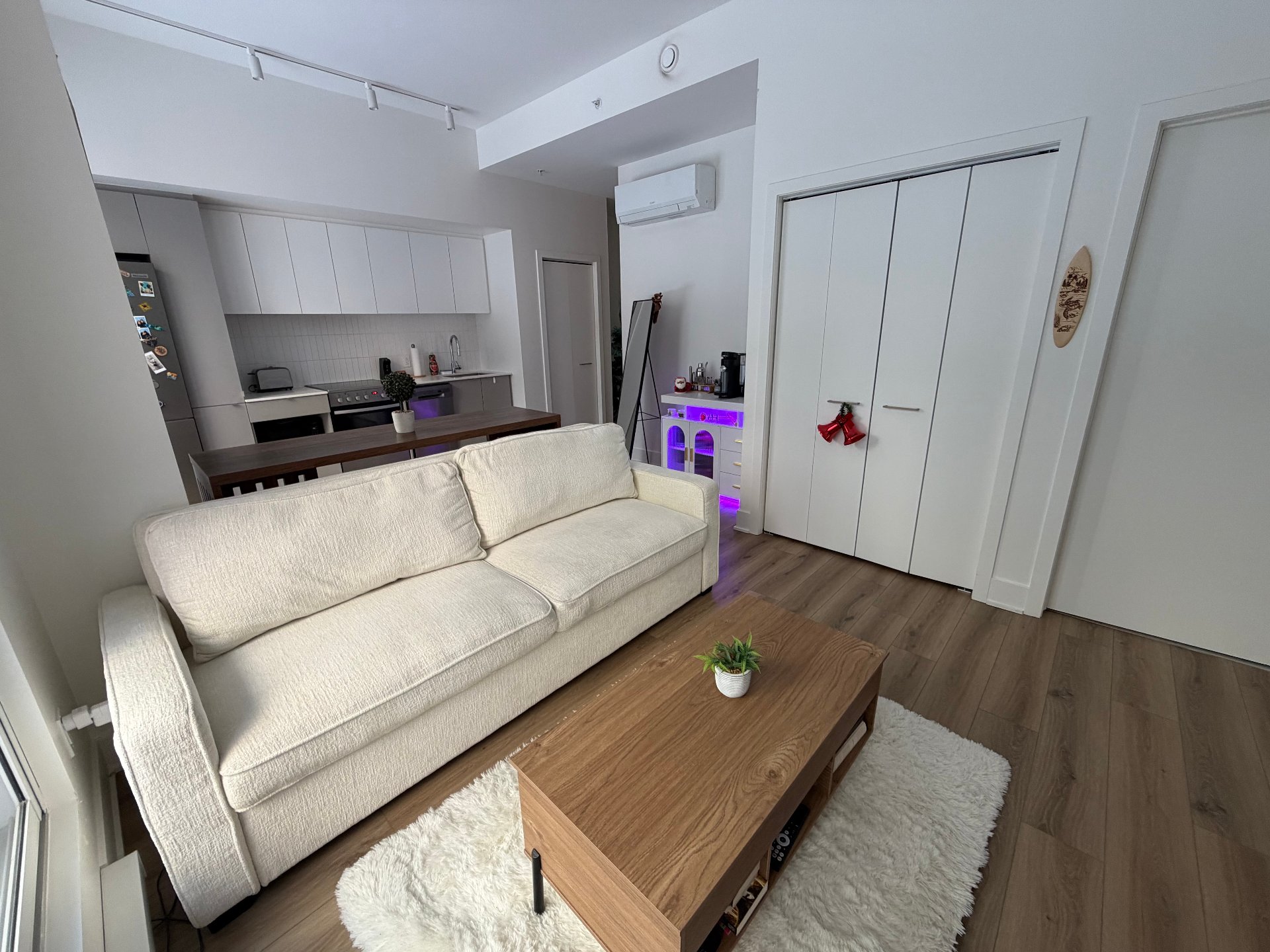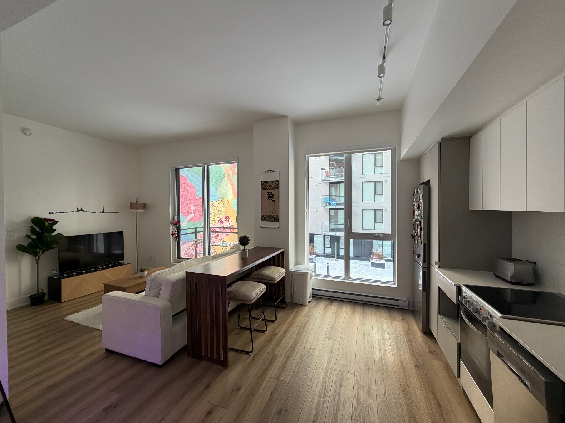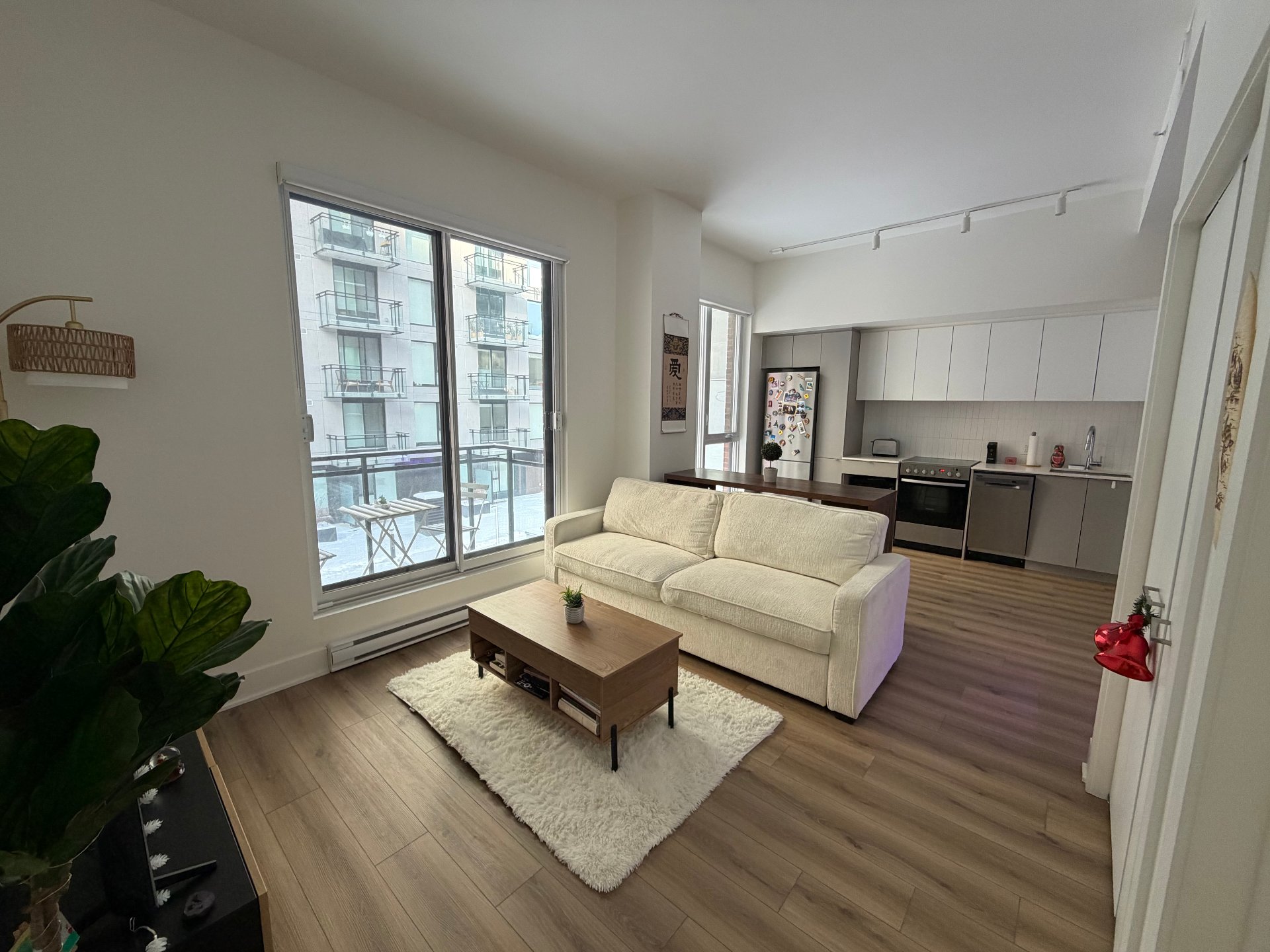 Located in downtown Montréal at the prestigious Serra building, this elegant one-bedroom unit offers high-end finishes and abundant natural light throughout. The open-concept layout leads to a private balcony, ideal for enjoying the urban setting. Parking may be rented for added convenience. Situated steps from Quartier des Spectacles, Griffintown, Old Montréal, and the Lachine Canal, the area offers exceptional access to restaurants, culture, green spaces, and public transit--an ideal blend of vibrant city living and everyday comfort. Available for lease transfer as of March 1st (more or less).