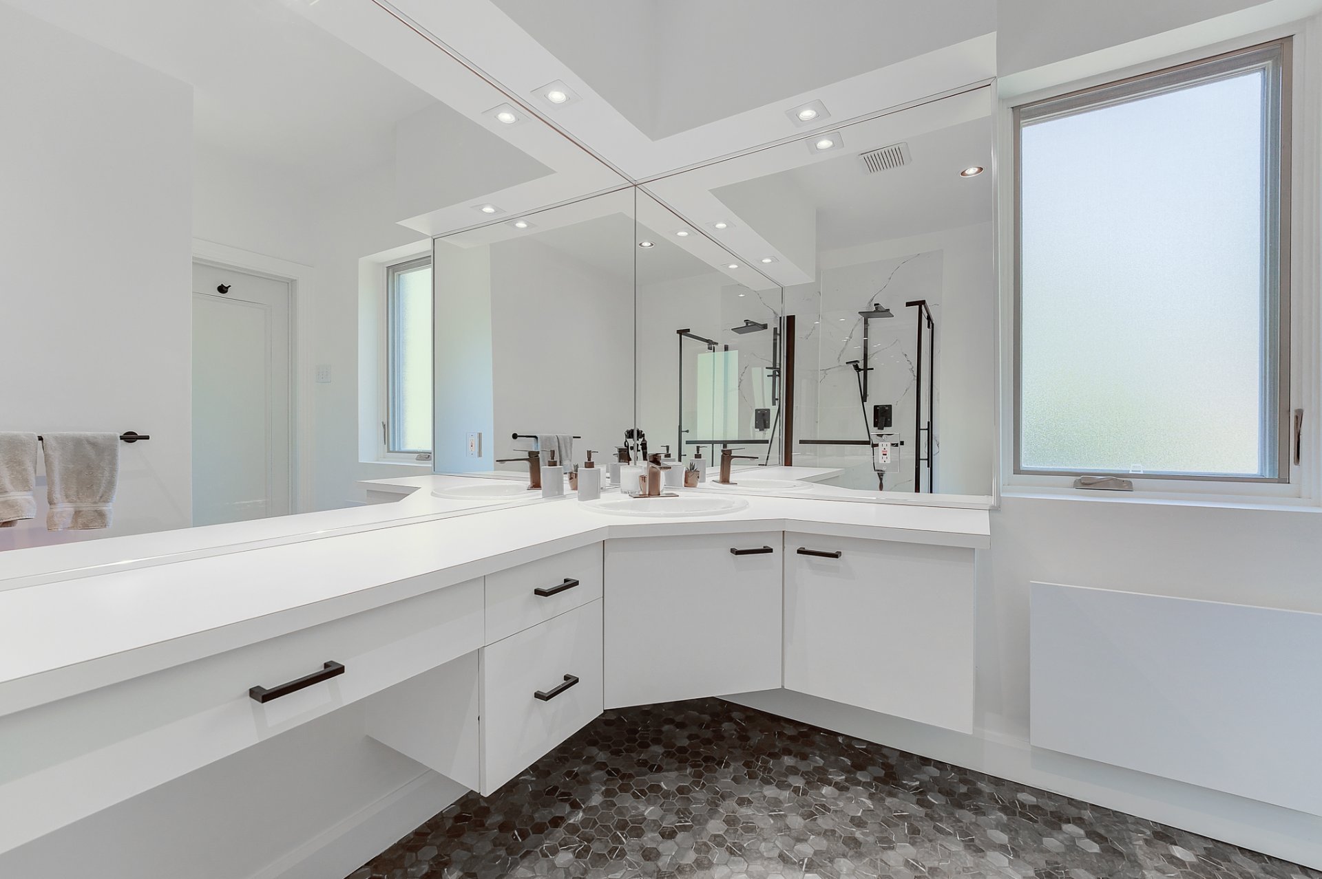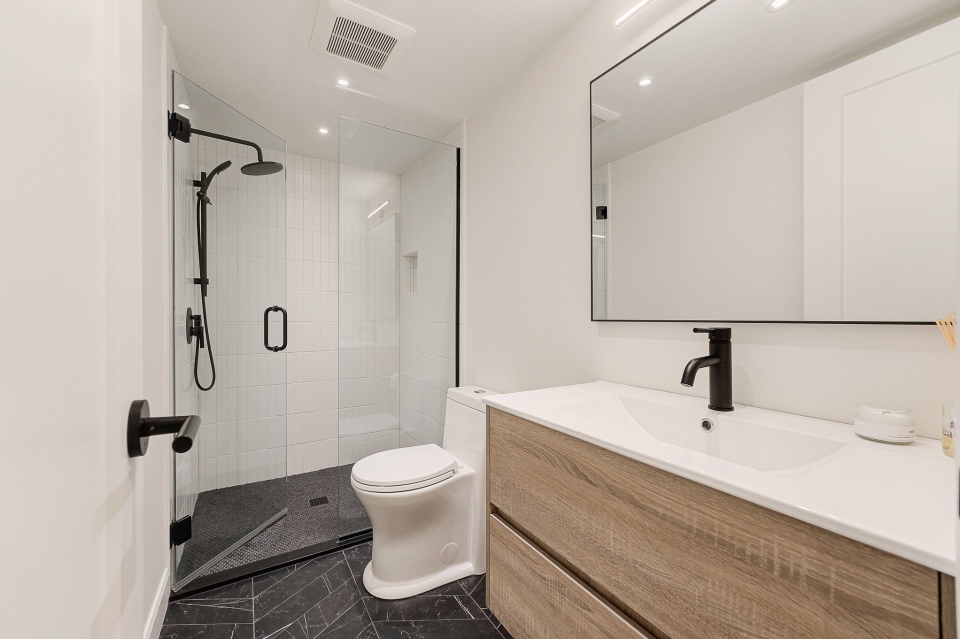 Complete renovation of the basement: excavation, installation of new electrical and plumbing systems, improved drainage, addition of a full bathroom with heated floors, and new basement windows