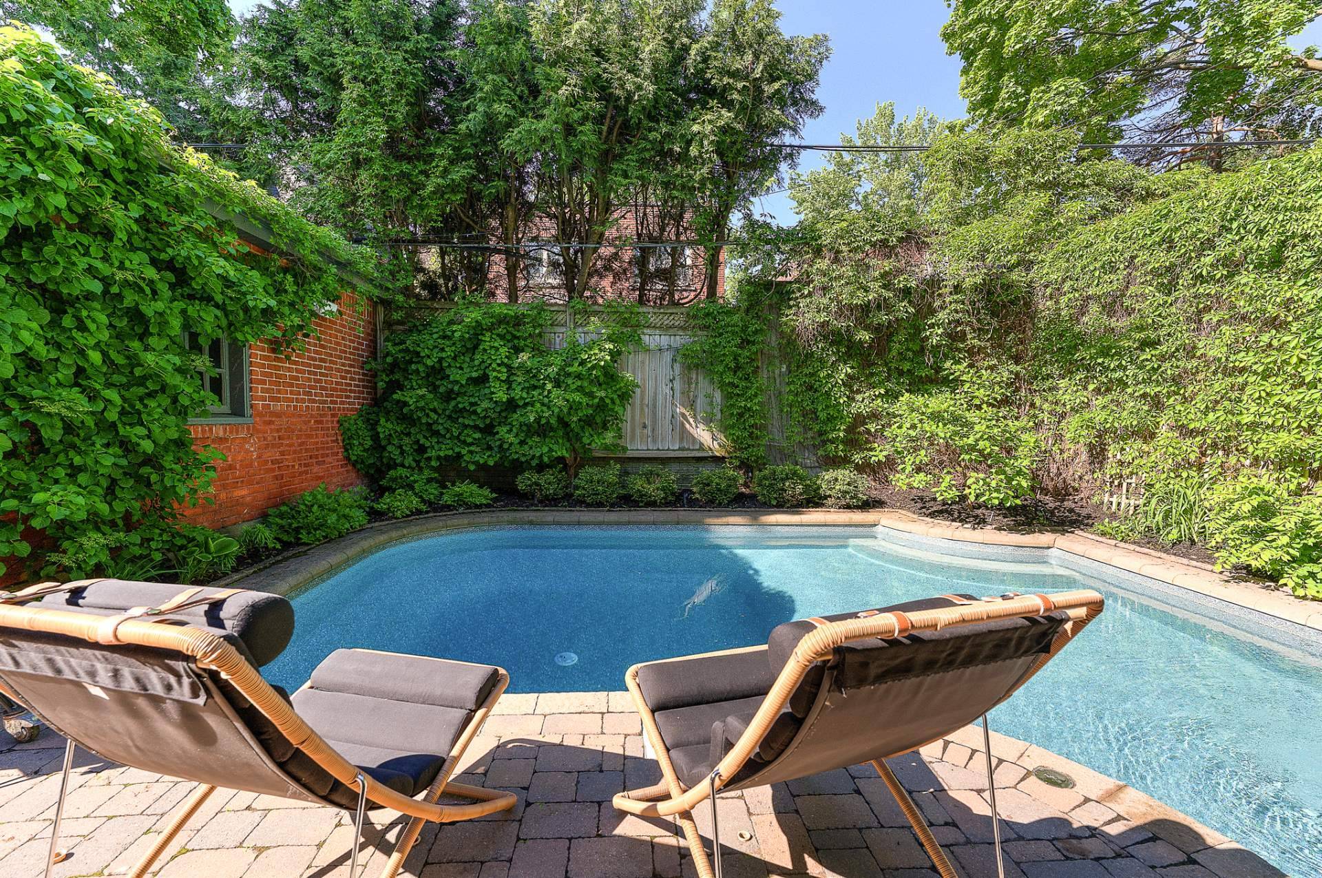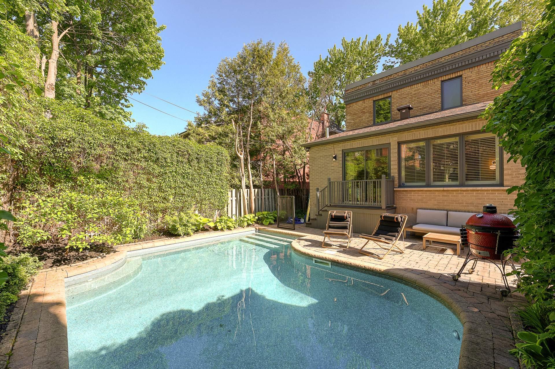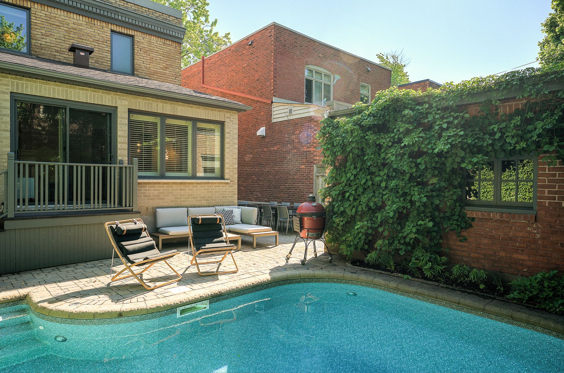 Beautifully Renovated Detached Home in Prime Monkland Village Ideally located just steps from lively Monkland Avenue, this fully renovated two-story detached home offers a perfect blend of charm and modern comfort. The spacious living room features a cozy gas fireplace and a custom built-in bookcase, creating a warm and elegant ambiance. The contemporary kitchen is outfitted with stainless steel appliances and flows seamlessly into a bright, sunlit den with custom patio doors opening onto a beautifully landscaped backyard. Step outside to enjoy your private oasis, complete with an in-ground pool, uni-stone terrace, and garage.