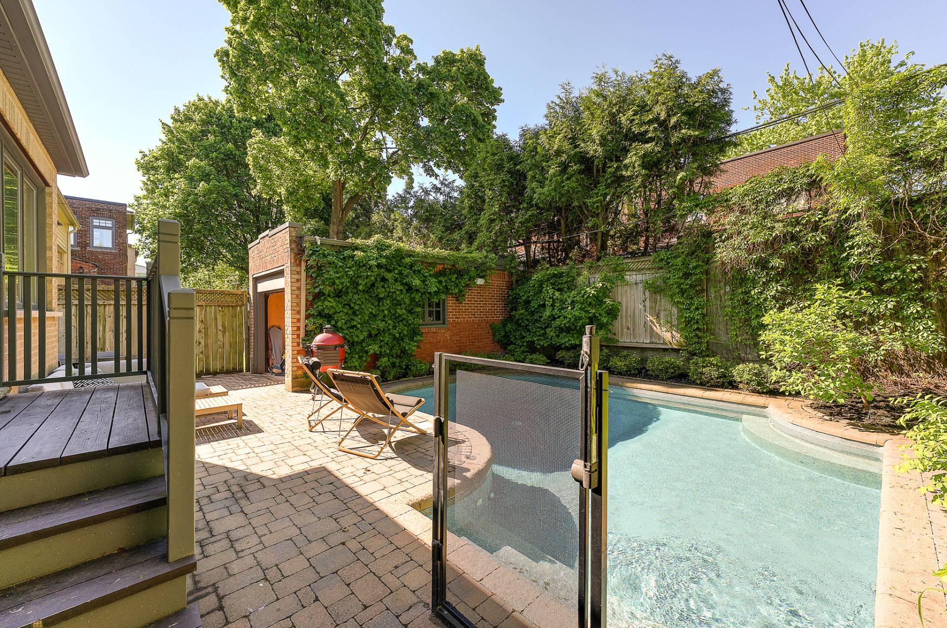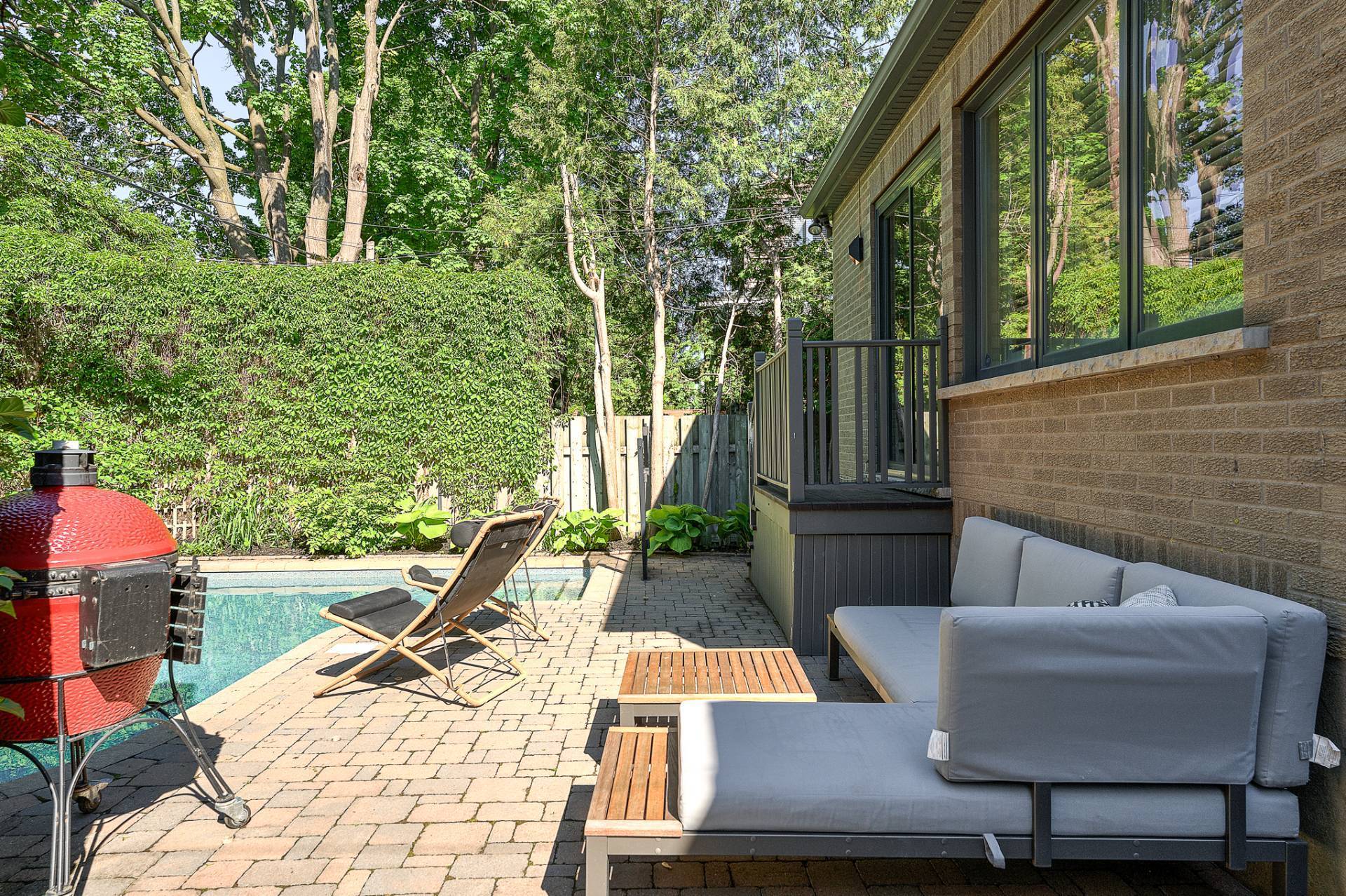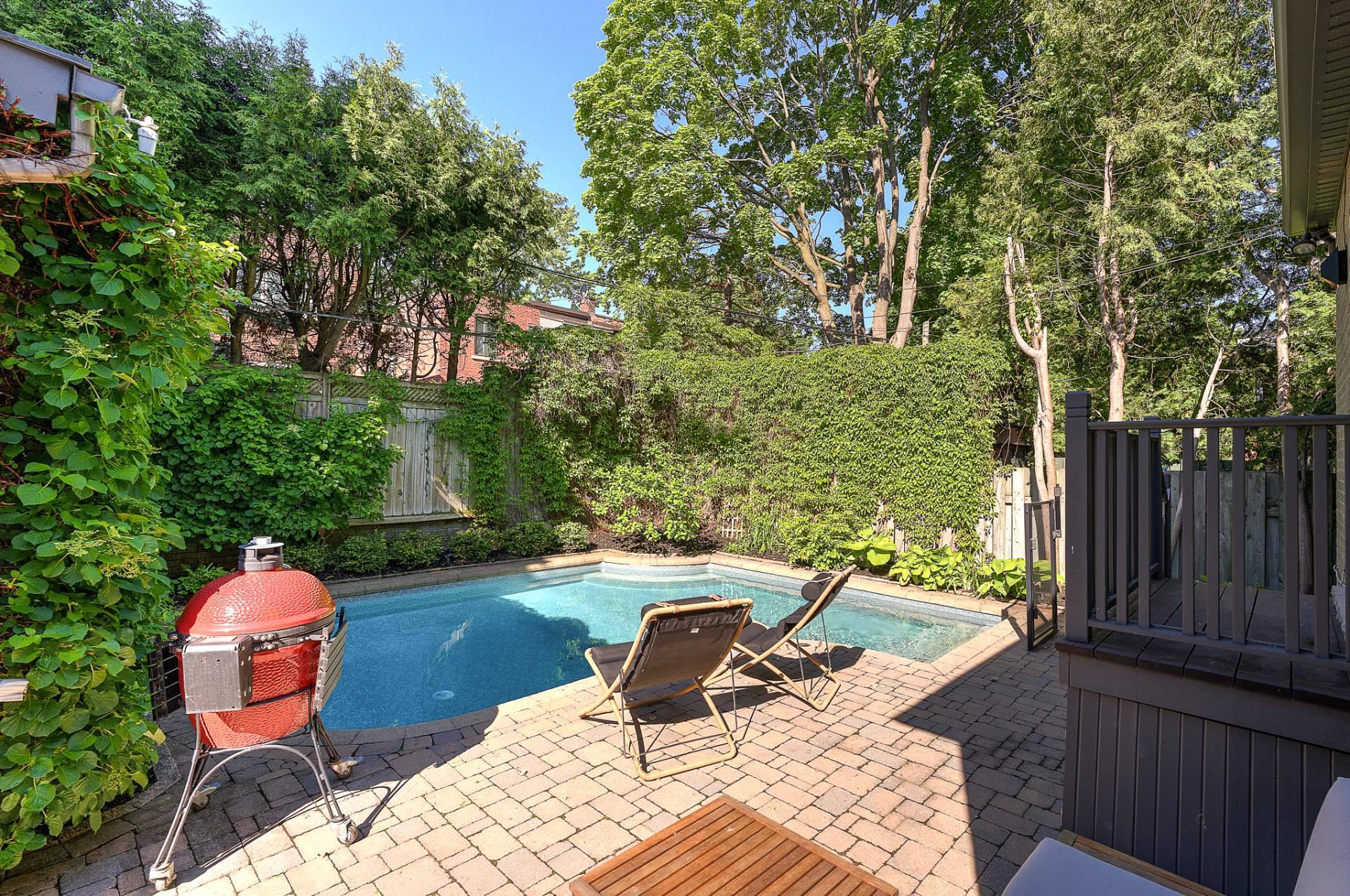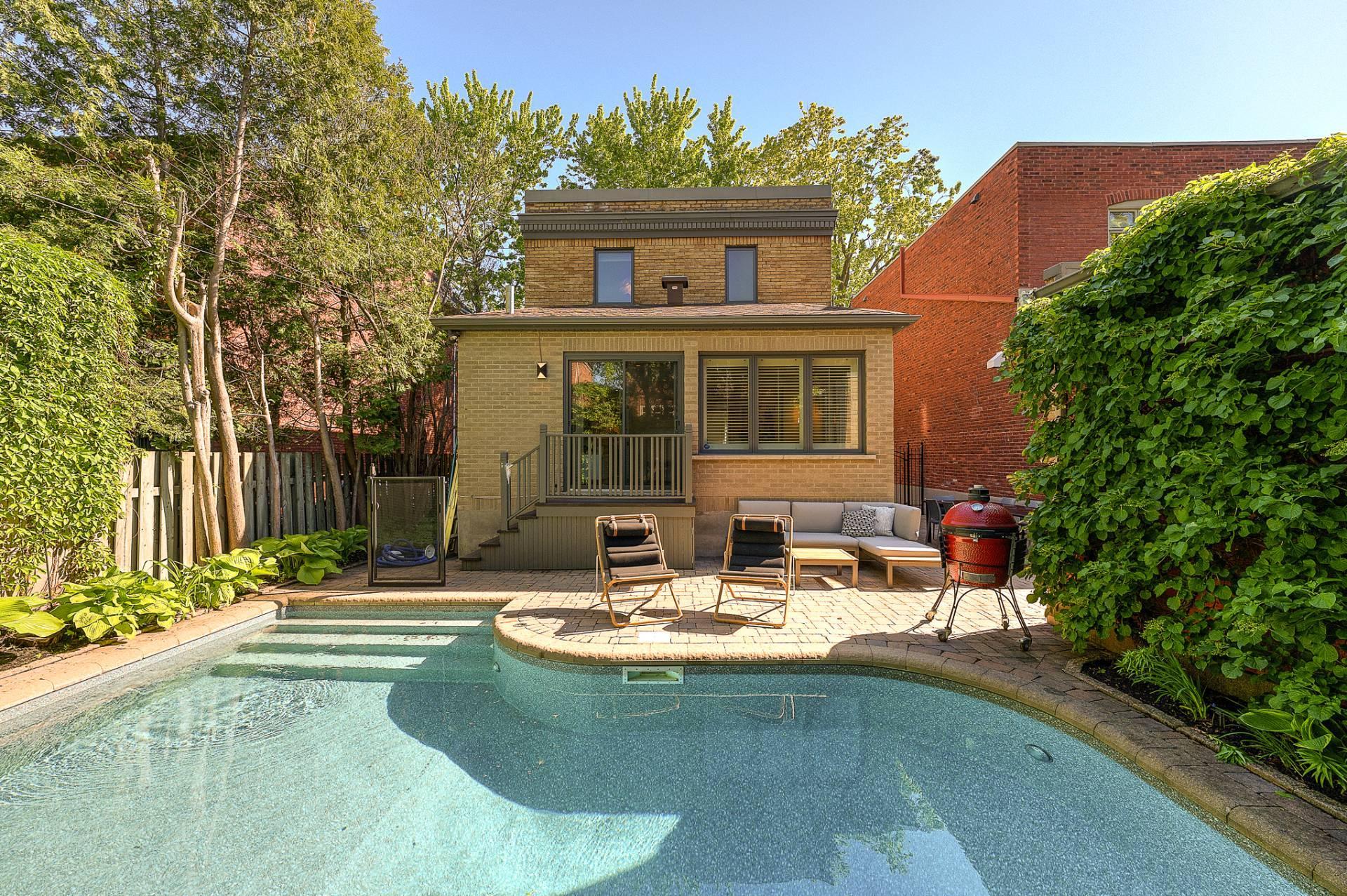 Beautifully Renovated Detached Home in Prime Monkland Village Ideally located just steps from lively Monkland Avenue, this fully renovated two-story detached home offers a perfect blend of charm and modern comfort. The spacious living room features a cozy gas fireplace and a custom built-in bookcase, creating a warm and elegant ambiance. The contemporary kitchen is outfitted with stainless steel appliances and flows seamlessly into a bright, sunlit den with custom patio doors opening onto a beautifully landscaped backyard. Step outside to enjoy your private oasis, complete with an in-ground pool, uni-stone terrace, and garage.