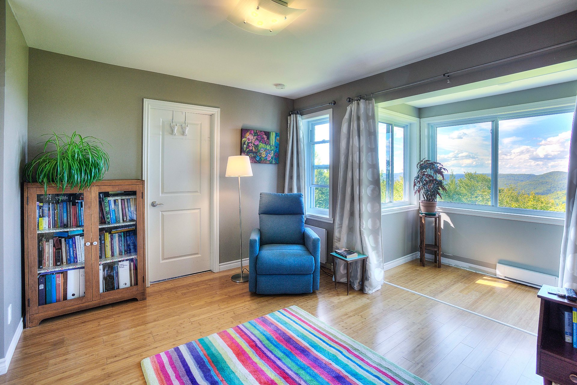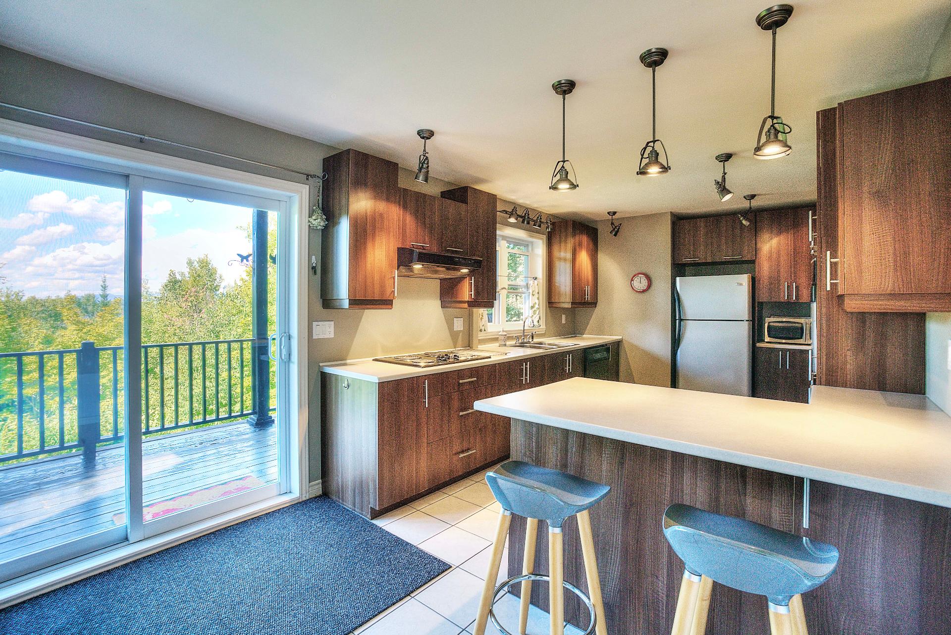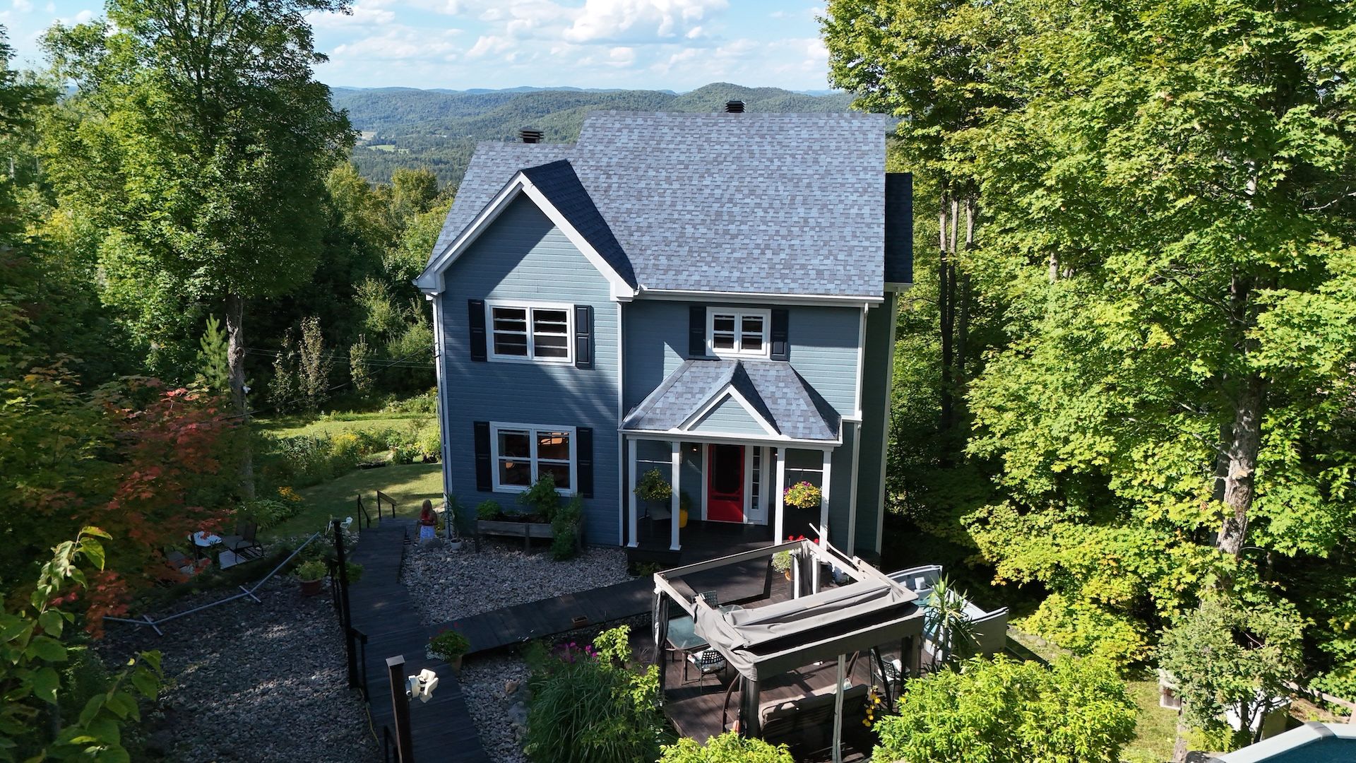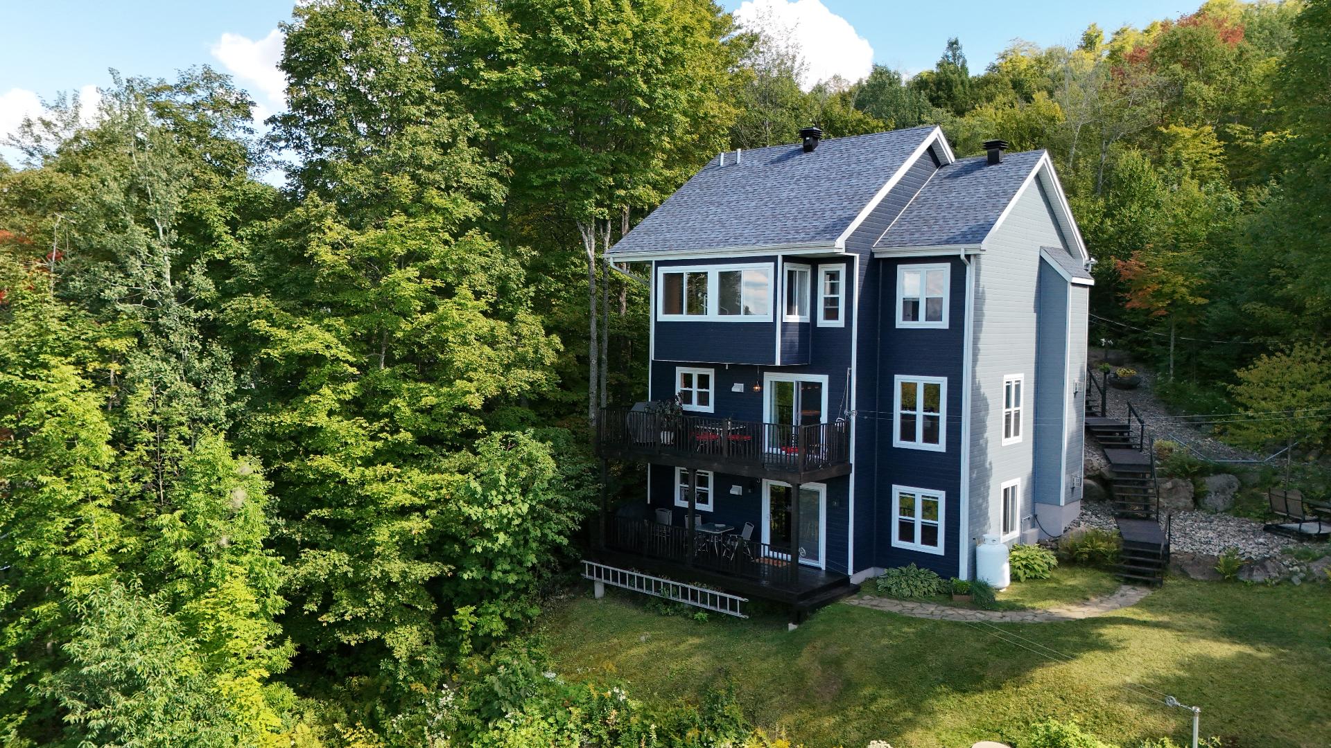Discover this charming mountain home, offering breathtaking views of Mont-Tremblant. Located in a peaceful setting near the ski resort, it features a cozy living space, perfect for sharing unforgettable moments with family or friends, as well as two bedrooms on the upper floor. The garden-level unit, accessible via a private entrance, can serve as a studio or bachelor apartment, complete with its own kitchen, living-dining area, and spacious bedroom. The meticulously landscaped grounds include a pool, spa, and flower garden, along with a recently built double garage, making this property truly turnkey!