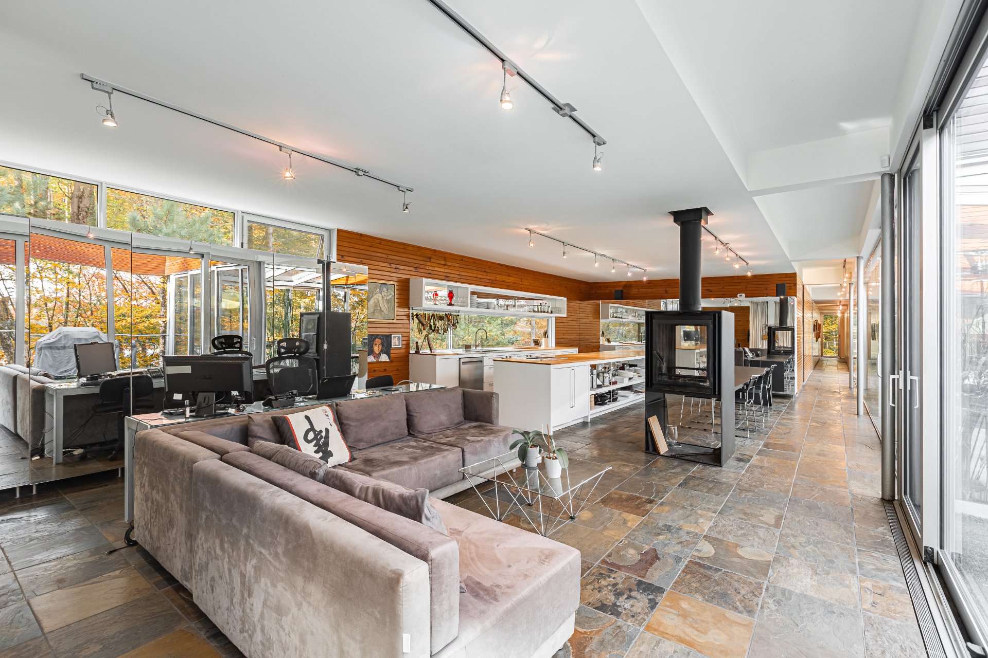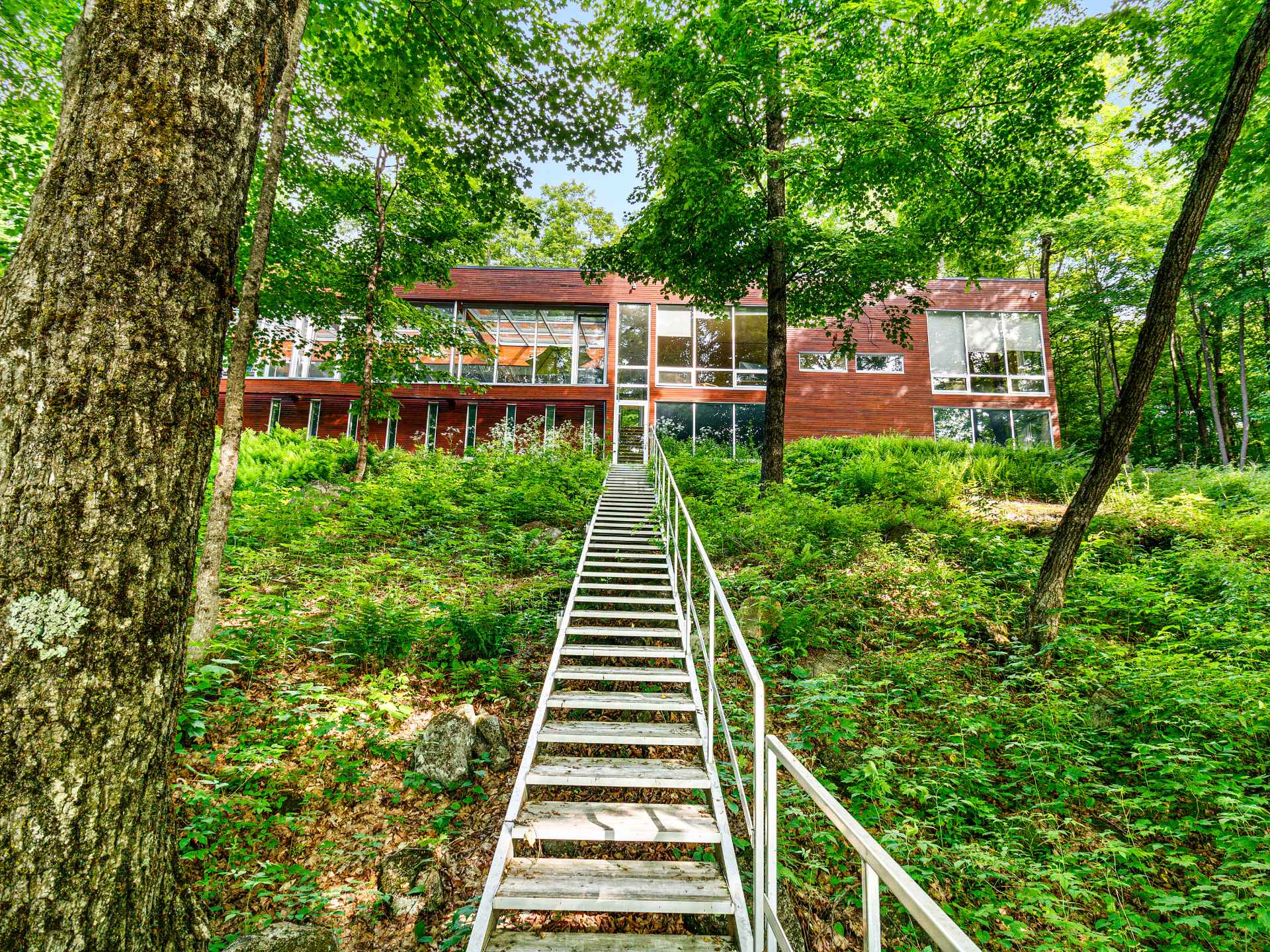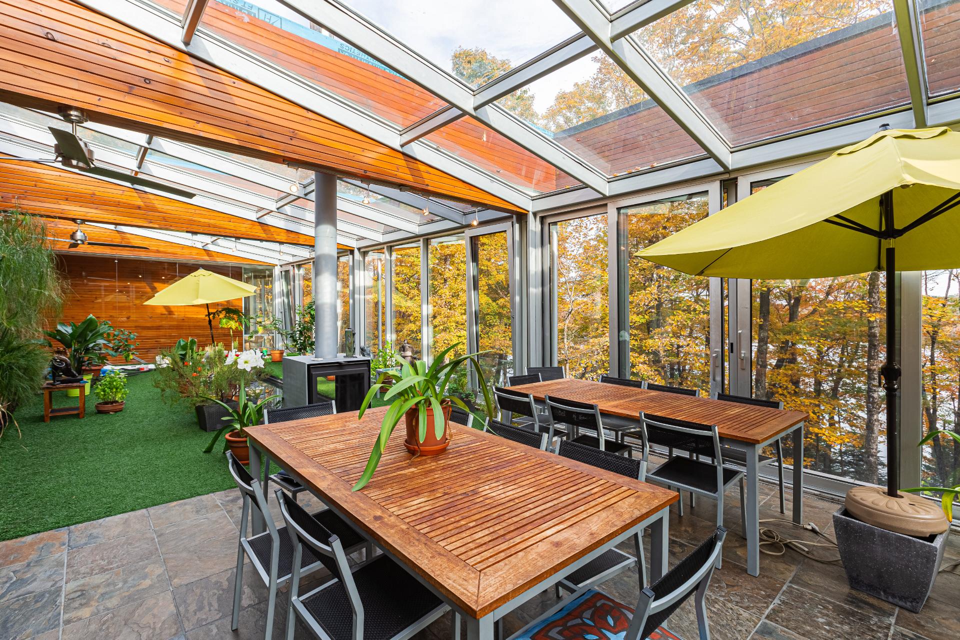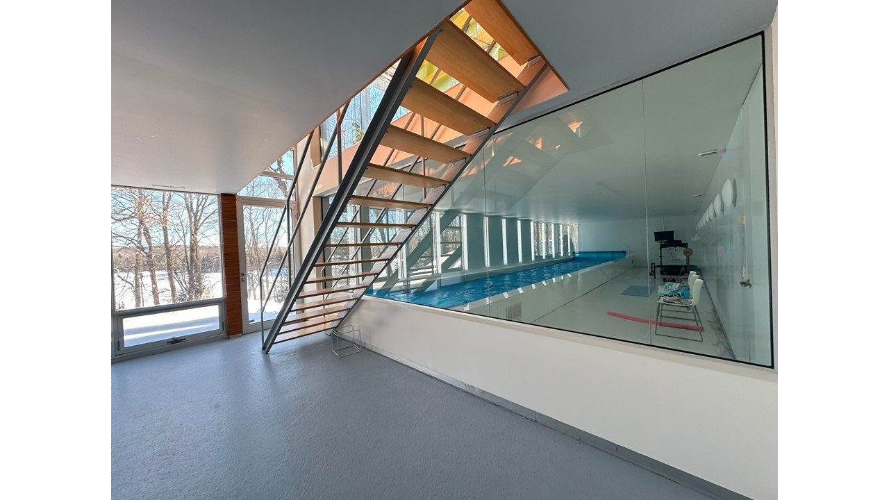 Lake Paul just 20 minutes from Saint-Sauveur and Saint-Jérôme, nestled in the heart of a majestic forest. A unique construction with exceptional design, featured numerous times in leading architecture and design magazines, built with remarkable attention to every detail to enhance your lifestyle. Large aluminum windows provide incredible brightness year-round, while the unique indoor garden lets you enjoy summer all year long ! Multiple fireplaces, 5 bedrooms, indoor pool, geothermal system, game room, and 250 feet of shoreline on the lake ! One of a kind !