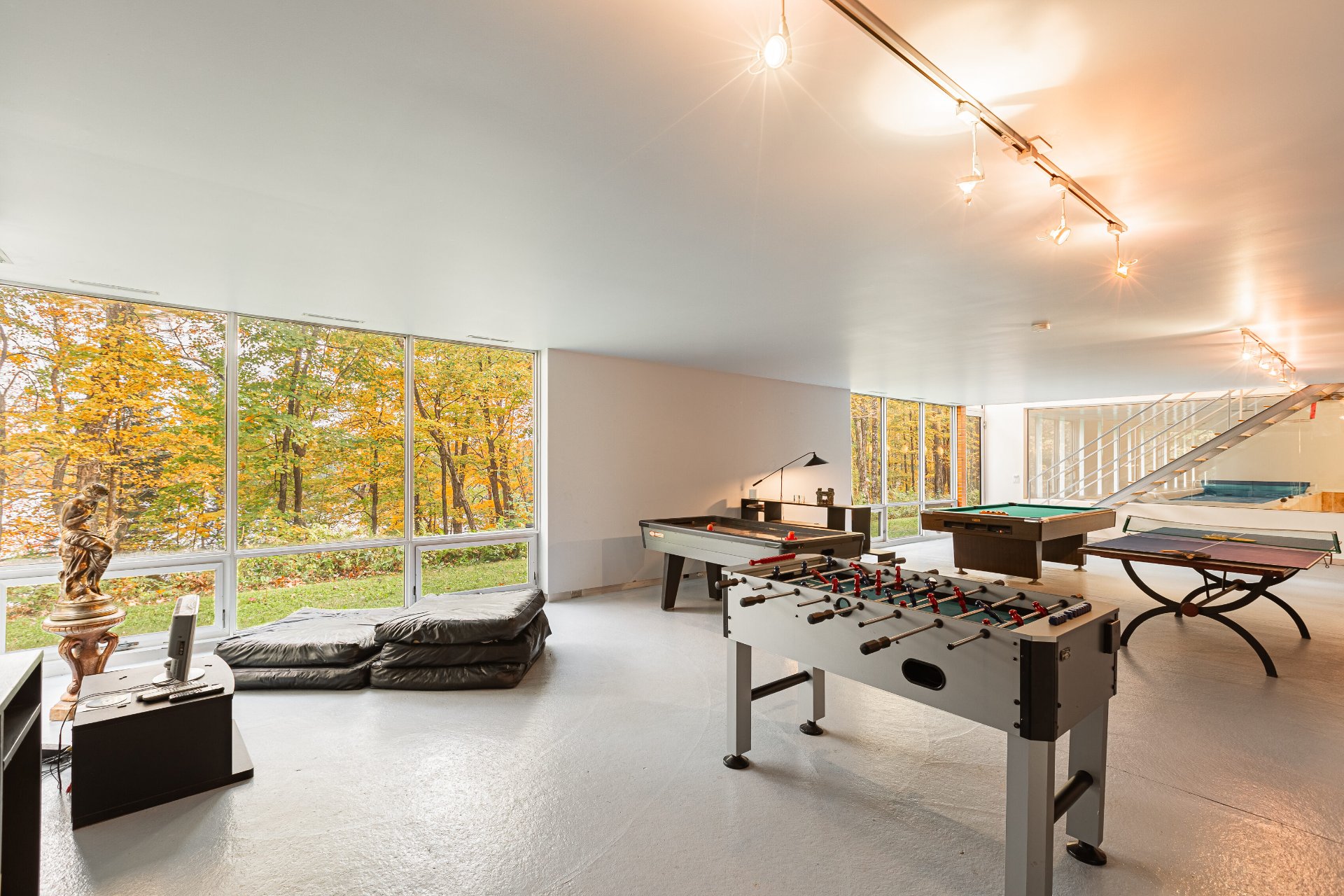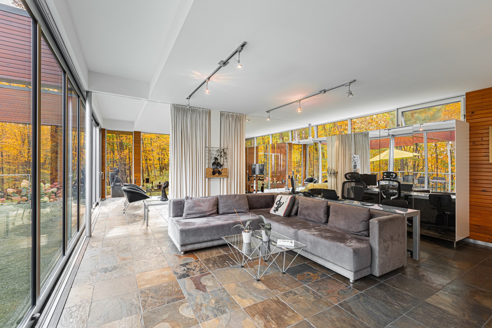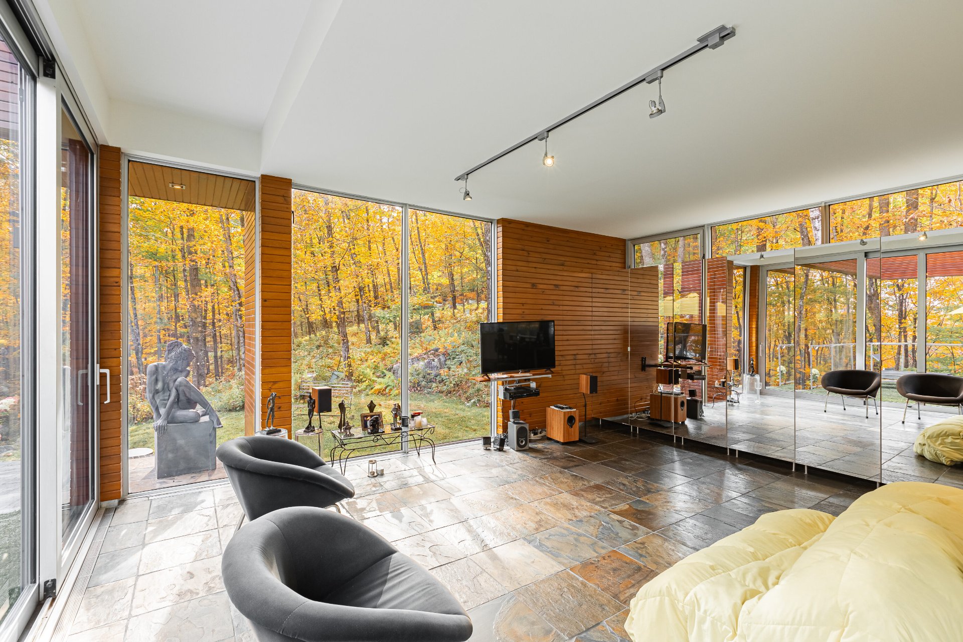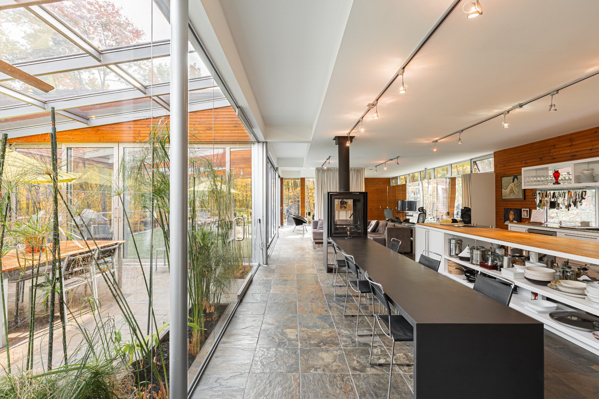 Lake Paul just 20 minutes from Saint-Sauveur and Saint-Jérôme, nestled in the heart of a majestic forest. A unique construction with exceptional design, featured numerous times in leading architecture and design magazines, built with remarkable attention to every detail to enhance your lifestyle. Large aluminum windows provide incredible brightness year-round, while the unique indoor garden lets you enjoy summer all year long ! Multiple fireplaces, 5 bedrooms, indoor pool, geothermal system, game room, and 250 feet of shoreline on the lake ! One of a kind !