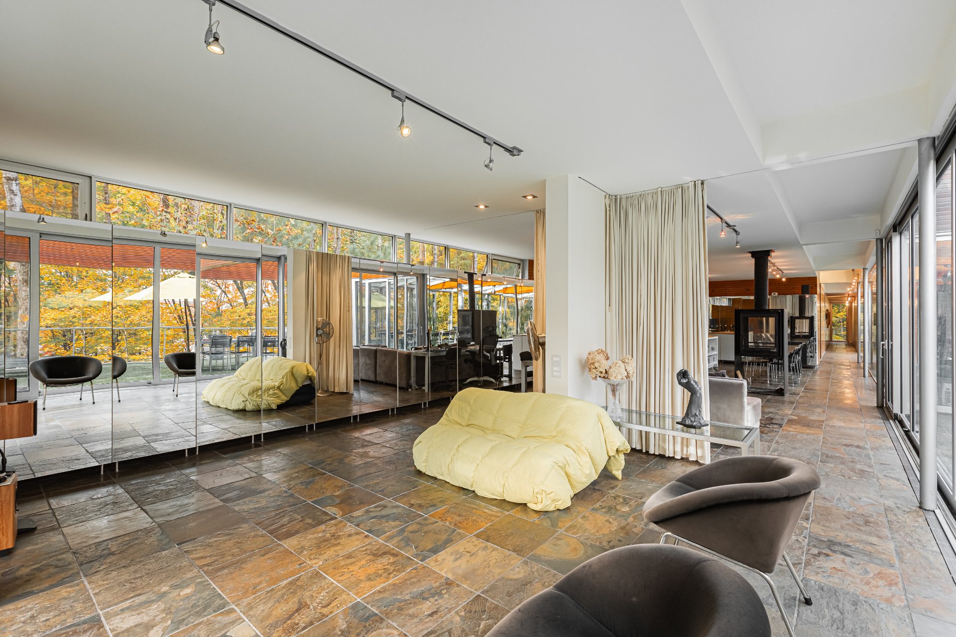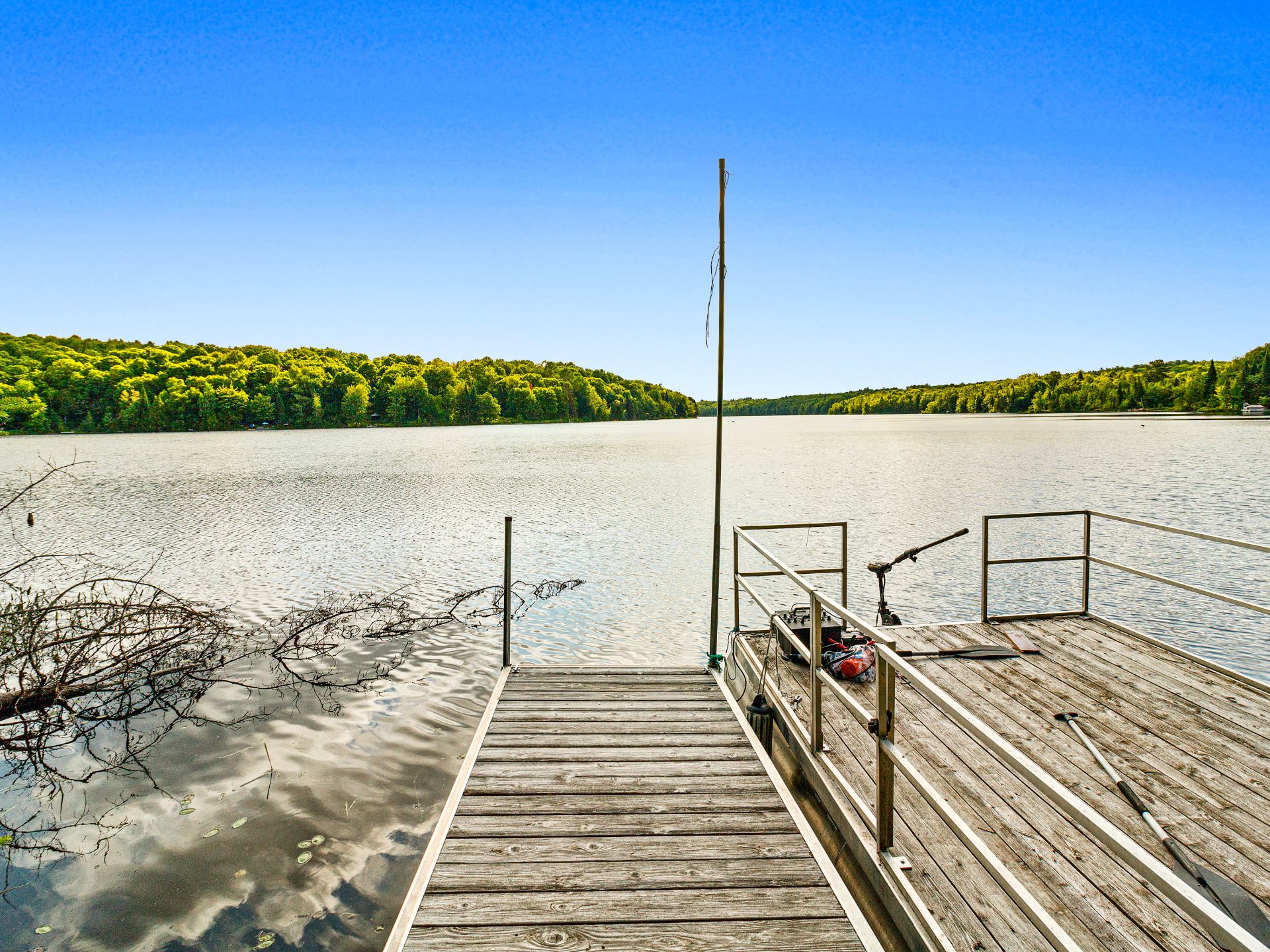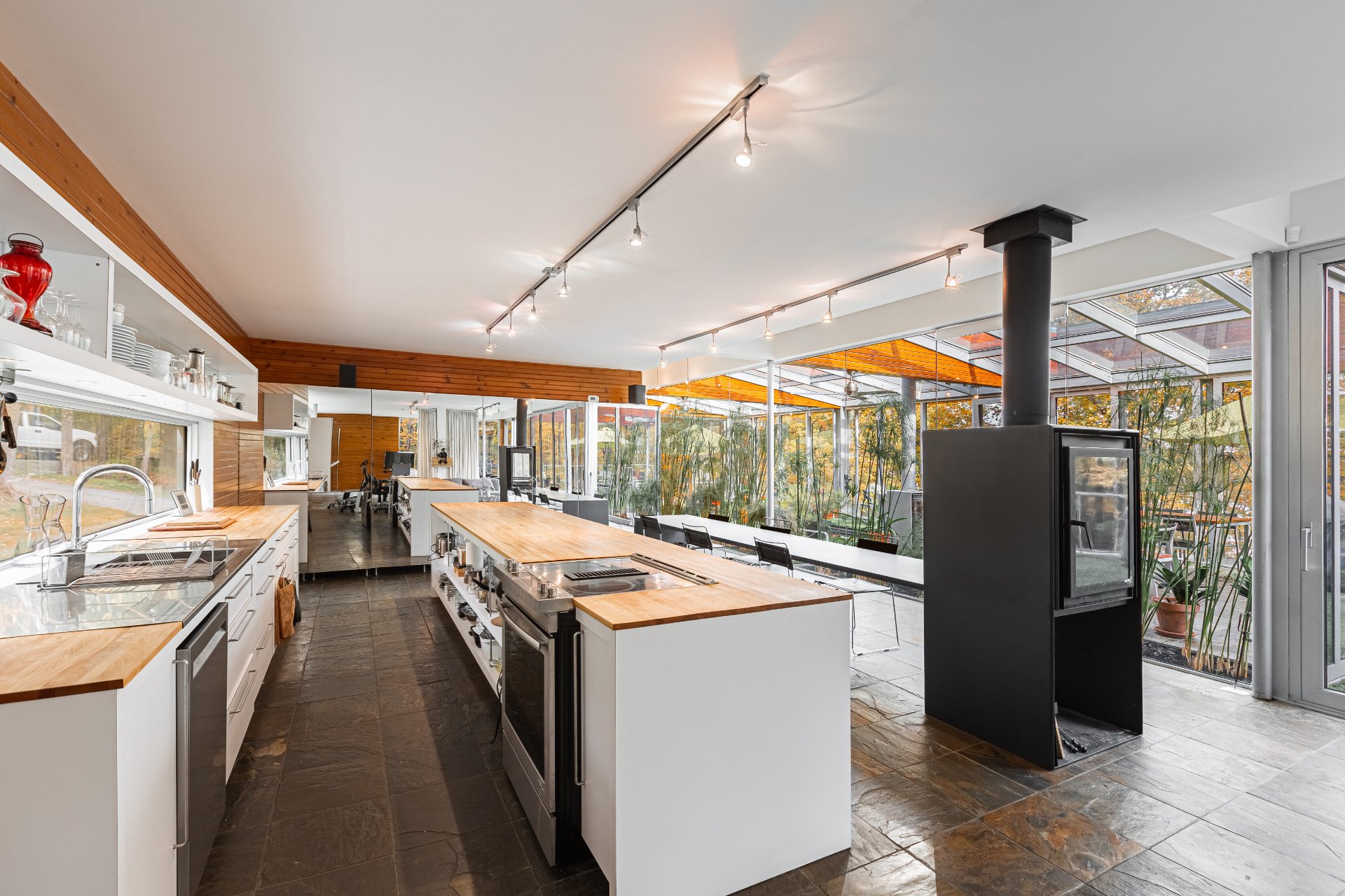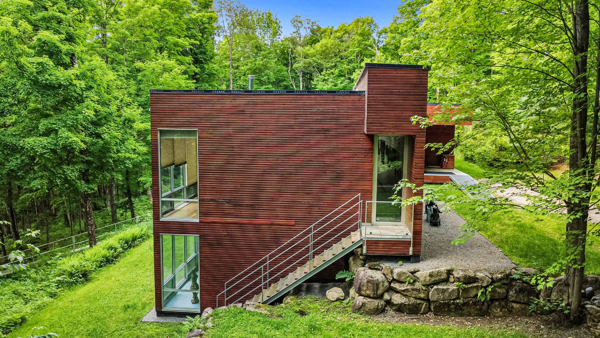Lake Paul just 20 minutes from Saint-Sauveur and Saint-Jérôme, nestled in the heart of a majestic forest. A unique construction with exceptional design, featured numerous times in leading architecture and design magazines, built with remarkable attention to every detail to enhance your lifestyle. Large aluminum windows provide incredible brightness year-round, while the unique indoor garden lets you enjoy summer all year long ! Multiple fireplaces, 5 bedrooms, indoor pool, geothermal system, game room, and 250 feet of shoreline on the lake ! One of a kind !