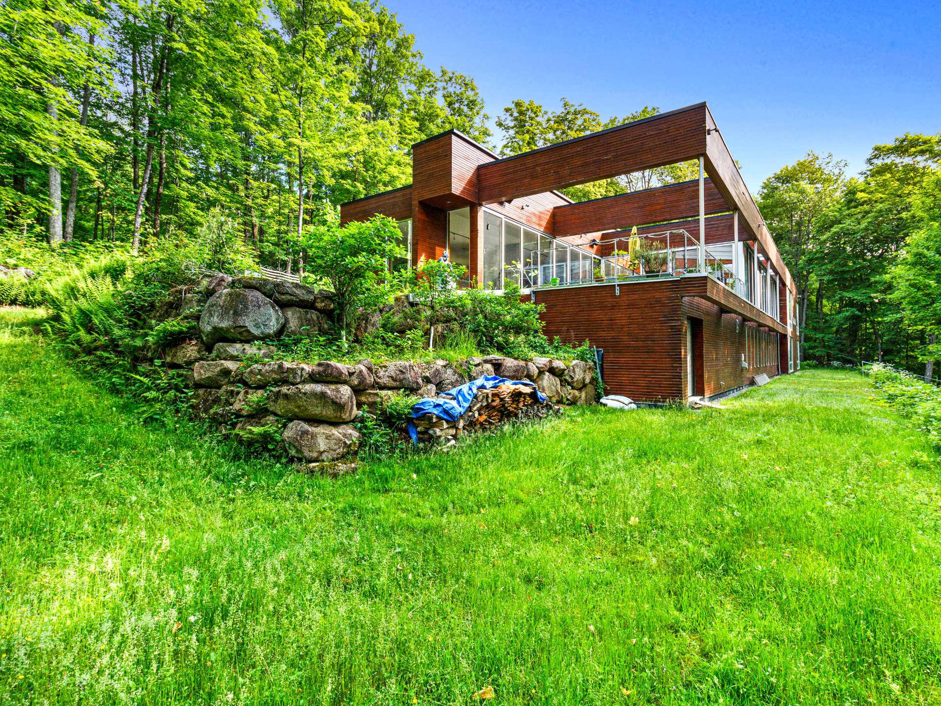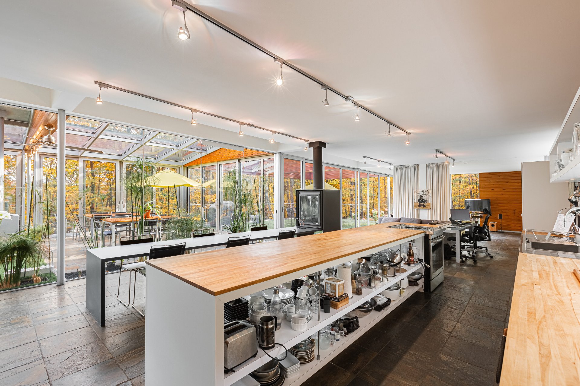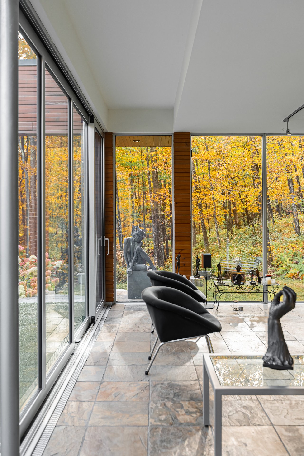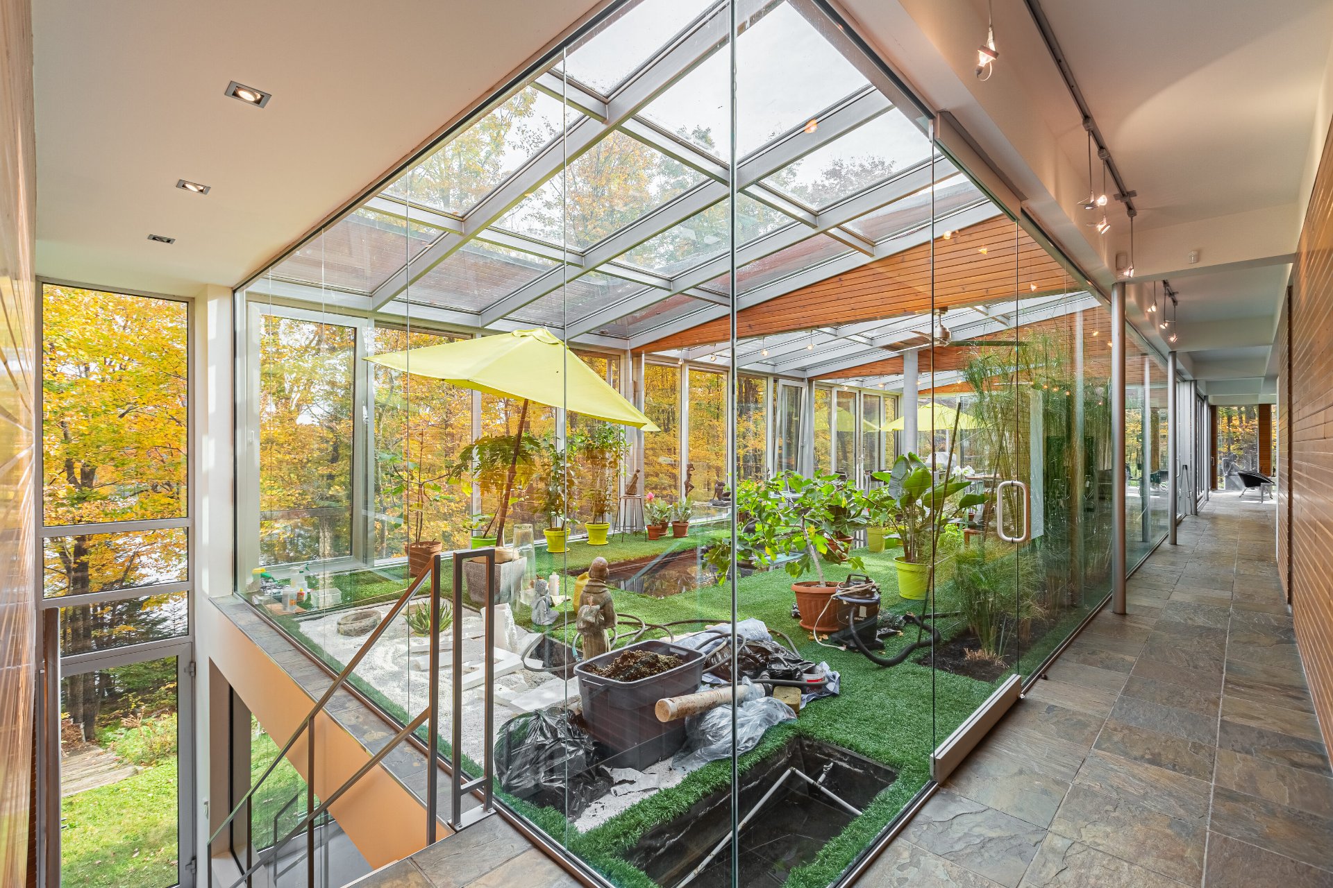 Lake Paul just 20 minutes from Saint-Sauveur and Saint-Jérôme, nestled in the heart of a majestic forest. A unique construction with exceptional design, featured numerous times in leading architecture and design magazines, built with remarkable attention to every detail to enhance your lifestyle. Large aluminum windows provide incredible brightness year-round, while the unique indoor garden lets you enjoy summer all year long ! Multiple fireplaces, 5 bedrooms, indoor pool, geothermal system, game room, and 250 feet of shoreline on the lake ! One of a kind !