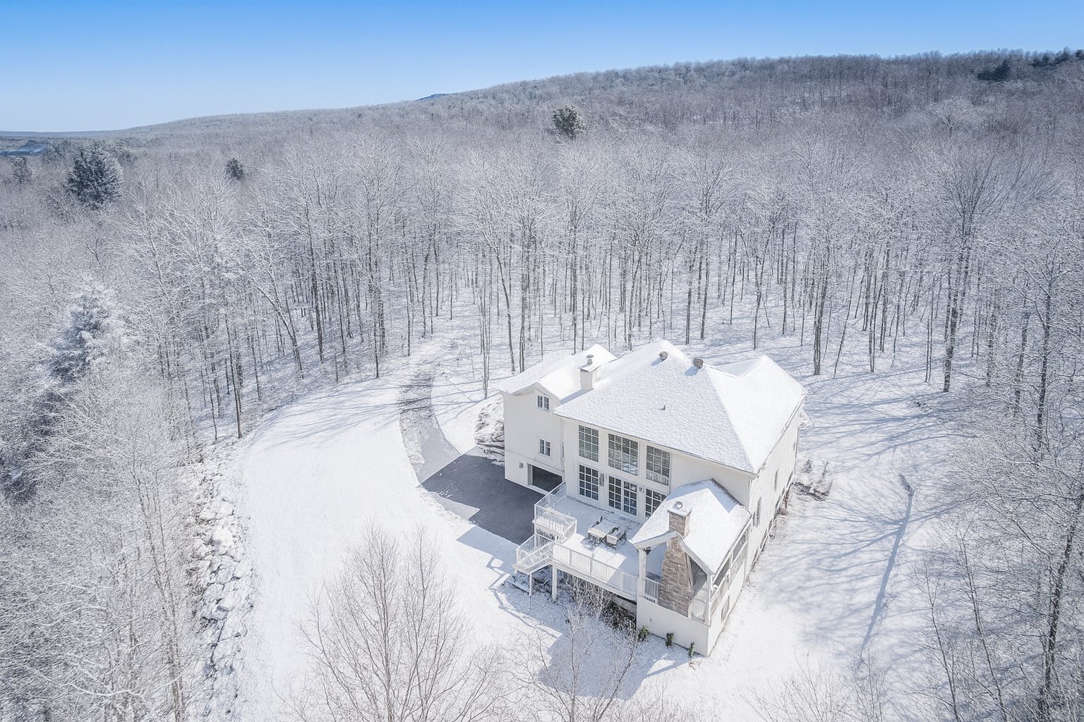 Magnificent and set in a nature-focused environment, this property sits on a private lot of approximately 3.5 acres, set back from the road. It blends traditional style with a modern, on-trend design. The materials are of high quality, and the finishes are meticulous. Expansive windows enhance the decor while flooding the home with natural light. The gourmet kitchen is perfect for culinary enthusiasts, and the inviting main living area features a warm ambiance with a fireplace framed in whitewashed brick. The primary suite is sumptuous, and each bedroom has access to a bathroom. A spacious family room and stunning outdoor terrace.