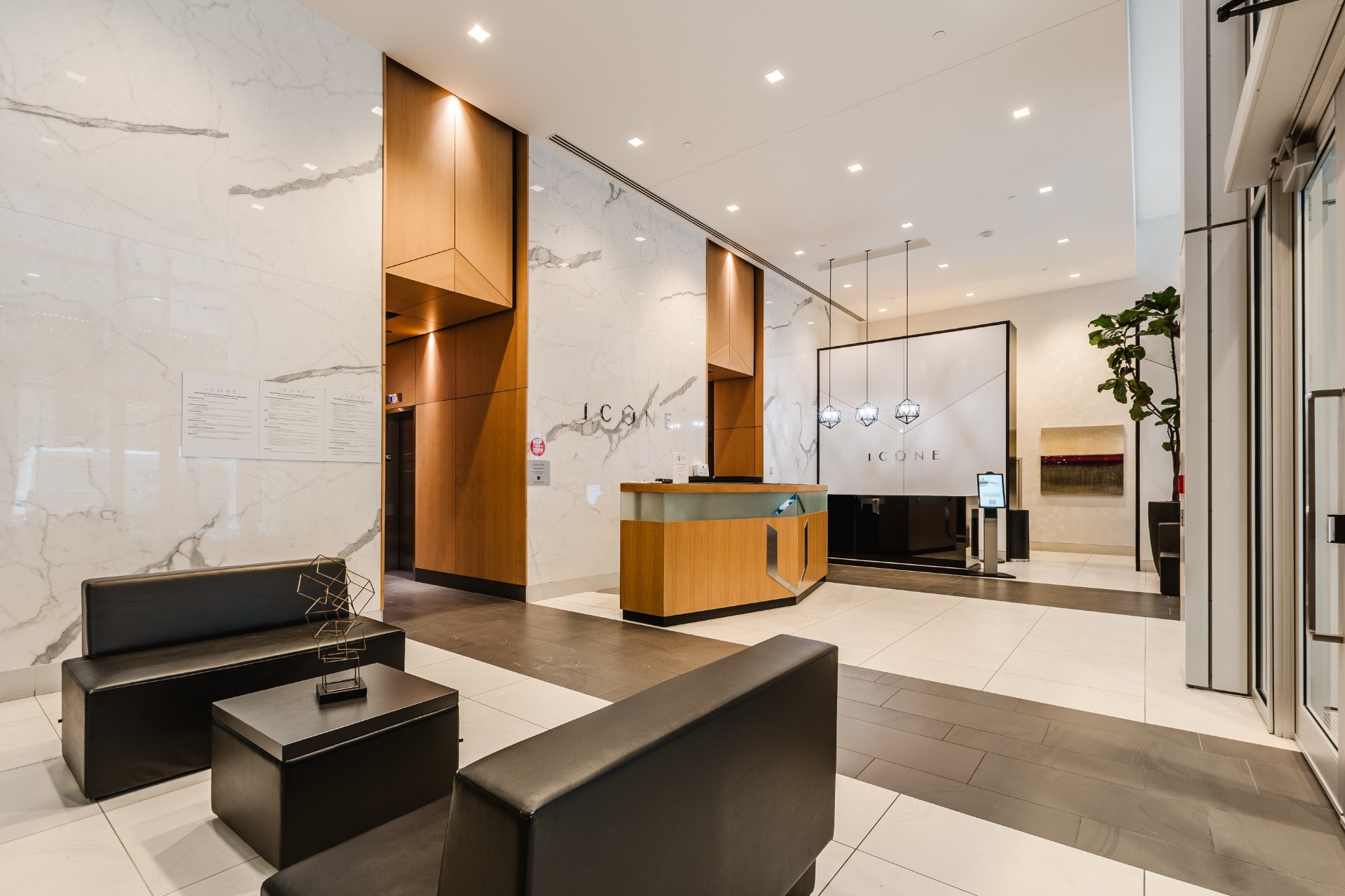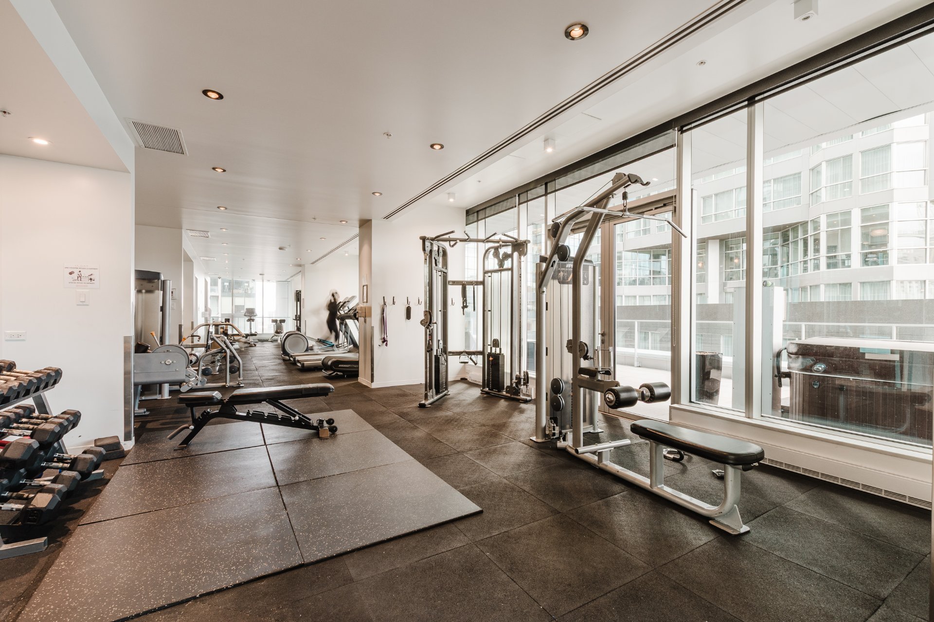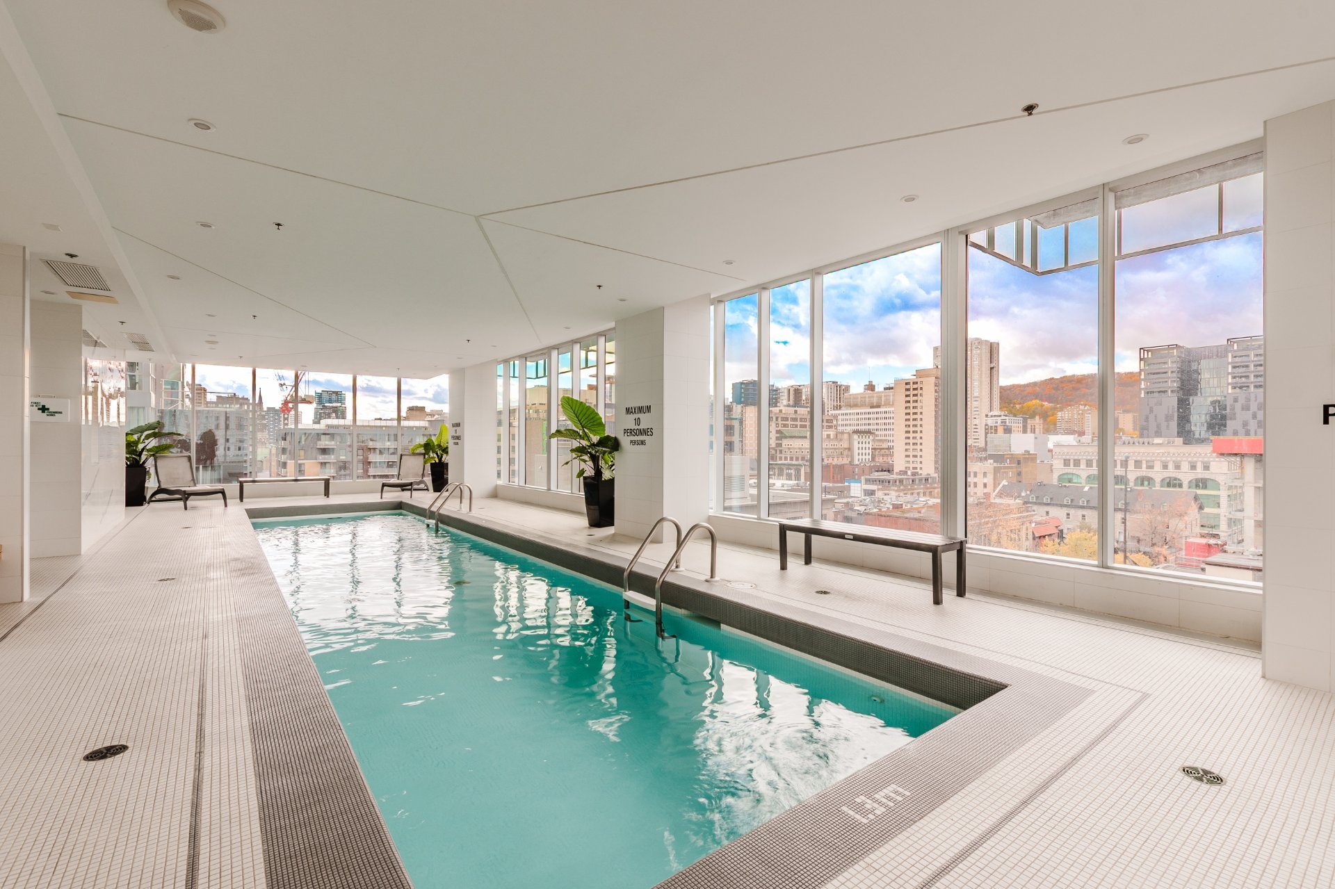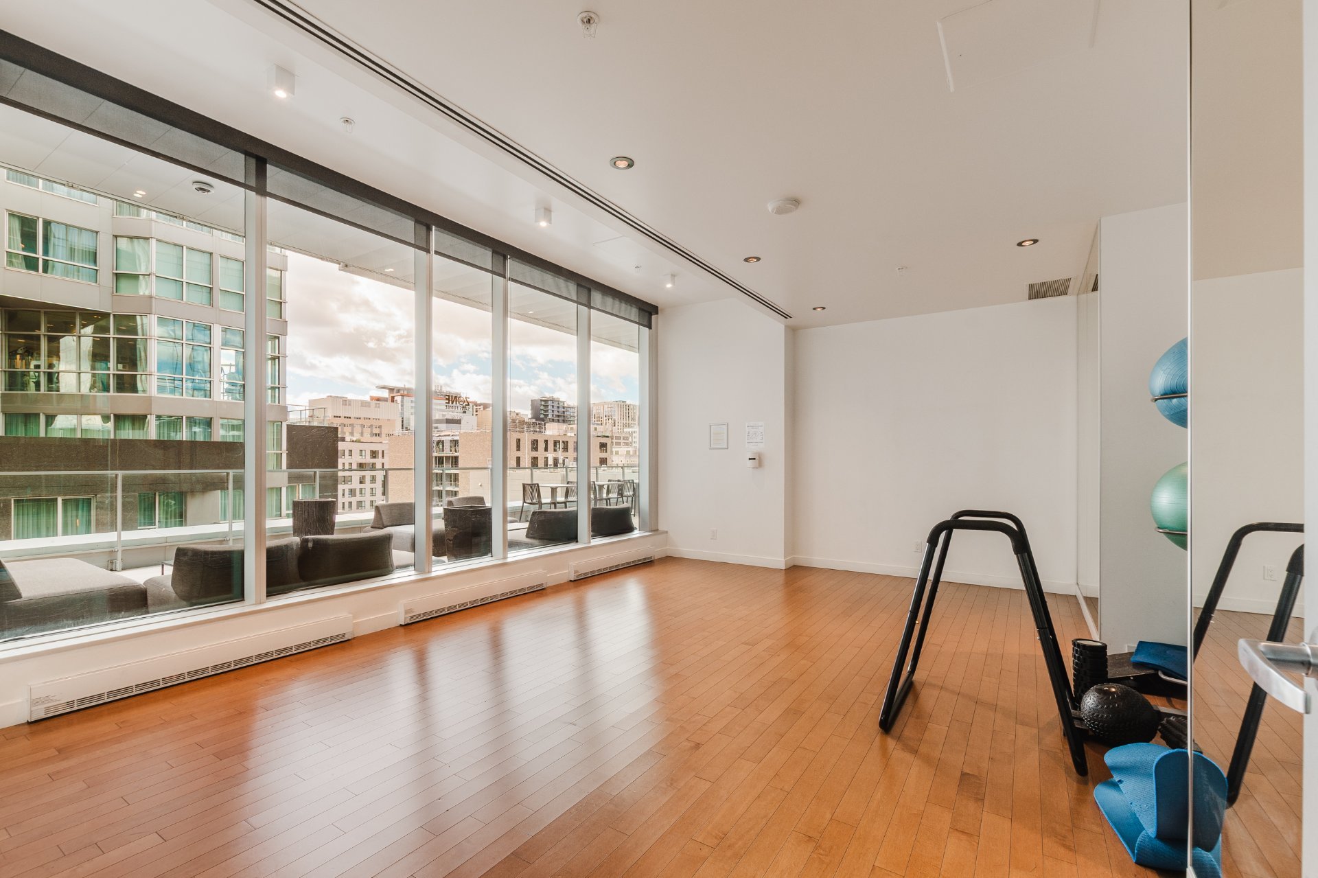 The Icône building, located in the heart of downtown, offers complete and well-maintained common areas. The indoor saltwater pool, spa with outdoor hot tub accessible from April to November, sauna, gym, yoga room, lounge, and shared terrace with garden are all located on the 8th floor. It is also possible to reserve an office or conference room on this floor.
