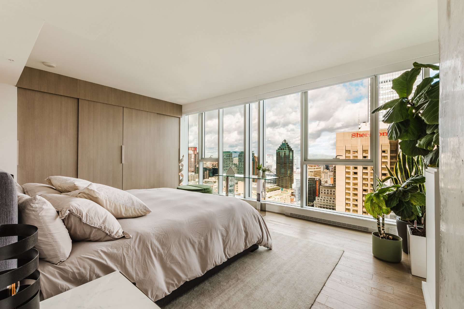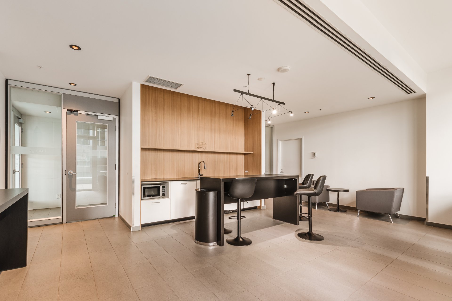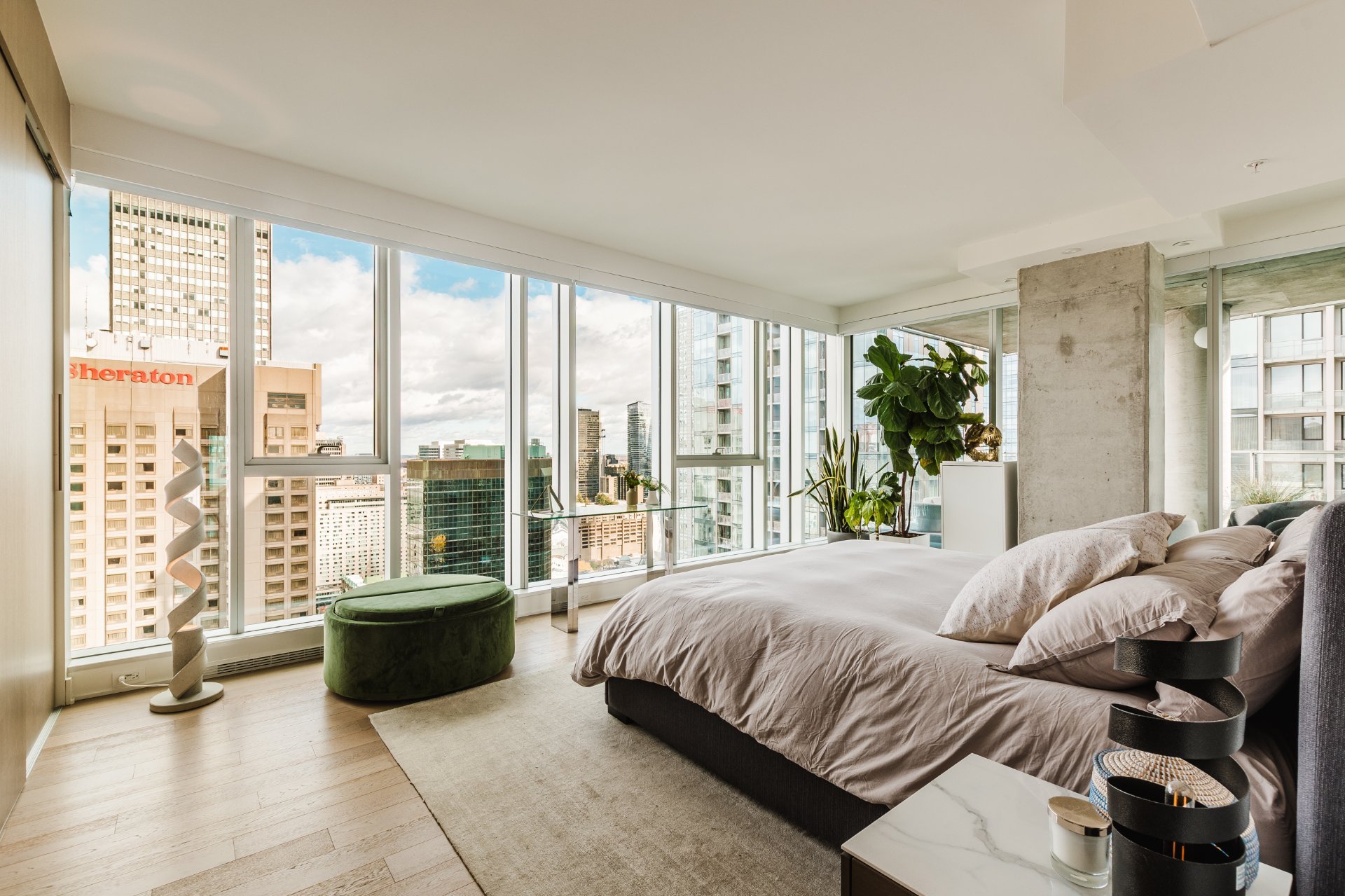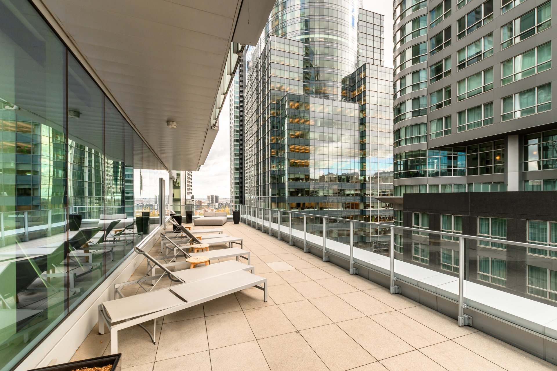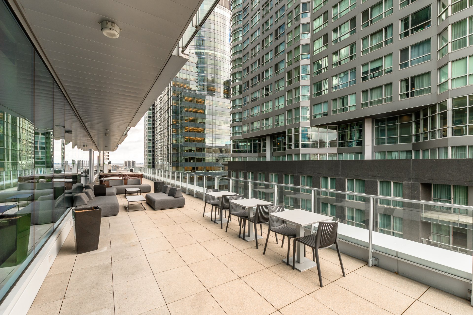 The Icône building, located in the heart of downtown, offers complete and well-maintained common areas. The indoor saltwater pool, spa with outdoor hot tub accessible from April to November, sauna, gym, yoga room, lounge, and shared terrace with garden are all located on the 8th floor. It is also possible to reserve an office or conference room on this floor.
