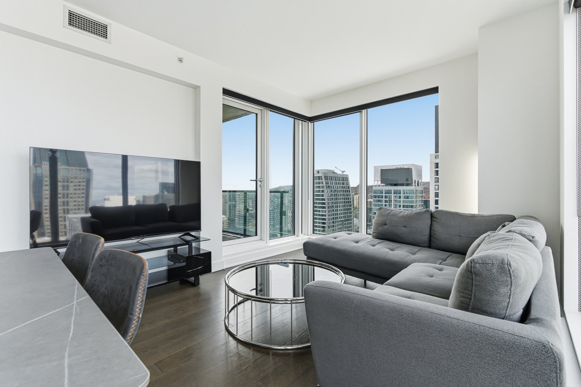 TOUR DES CANADIENS 3 -- A 3 beds, 3 baths prestigious corner condo bathed in natural light, featuring spectacular unobstructed views through floor-to-ceiling windows all through. An open-concept living space, refined contemporary finishes, and dream-worthy amenities in the heart of downtown Montreal. Direct access to the Bell Centre, the metro, and the train. Includes a garage and a locker.