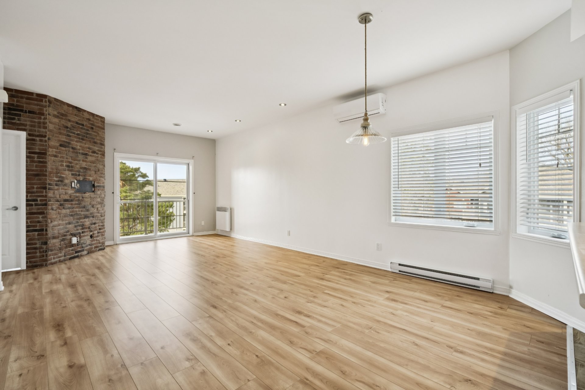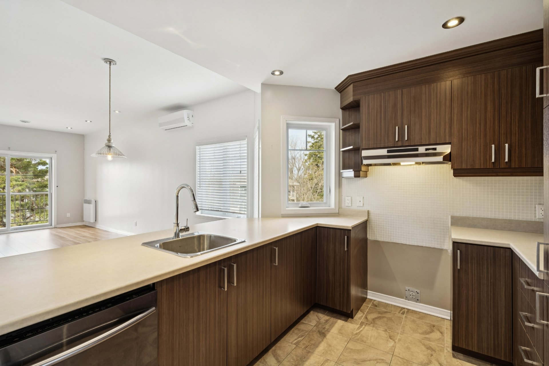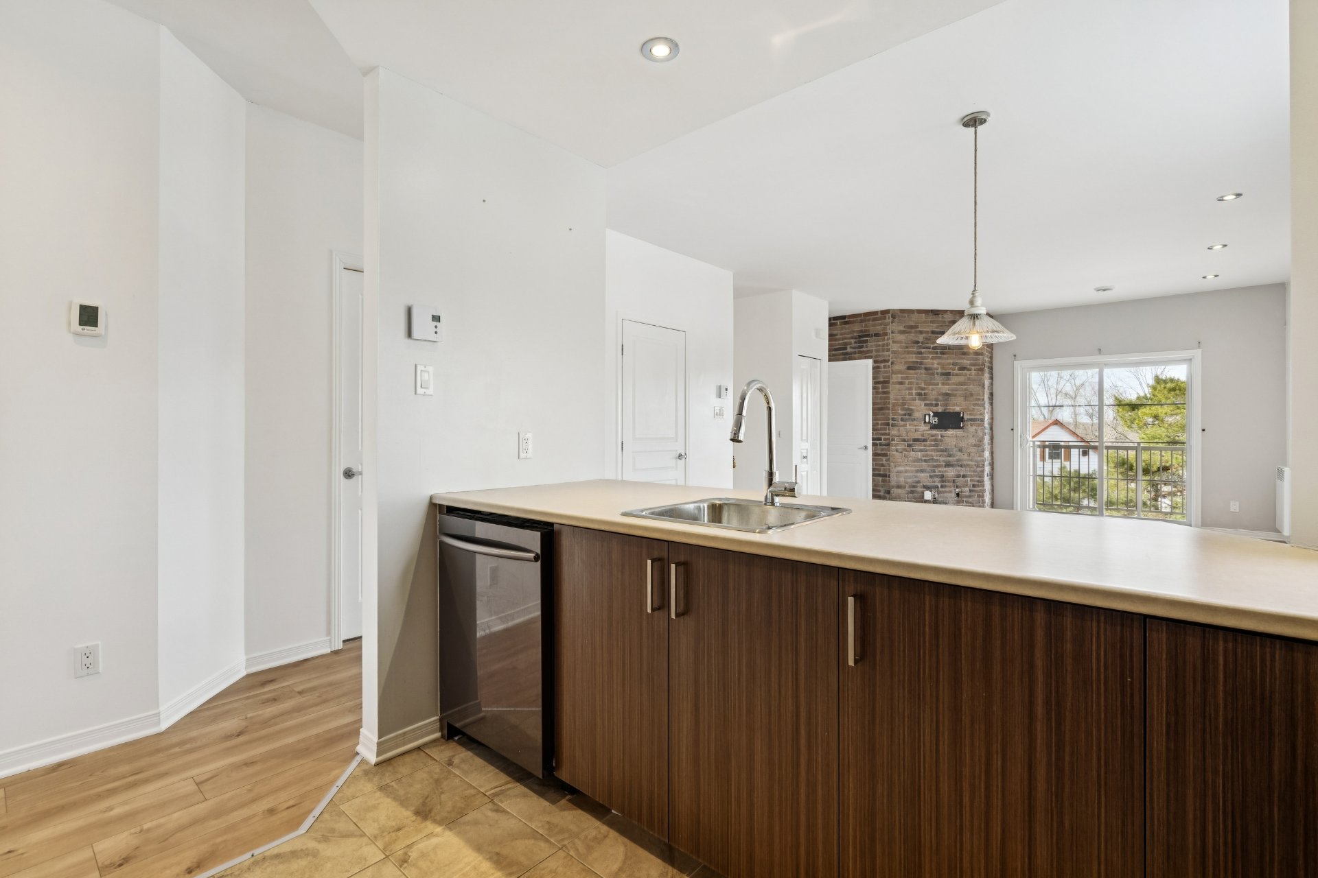 Bright condo of nearly 1,050 sq. ft.! Located on the 2nd floor of a quiet building, this beautiful corner unit offers spacious rooms and abundant natural light. Modern, functional kitchen with plenty of storage and updated flooring throughout. Includes a large living room, 2 good-sized bedrooms, and a separate laundry room. Features: wall-mounted heat pump, balcony and large private terrace, 1 garage, 1 outdoor parking space, and storage. Located in a sought-after wooded area near the river, perfect for scenic walks, within a well-managed condominium. A visit will convince you!