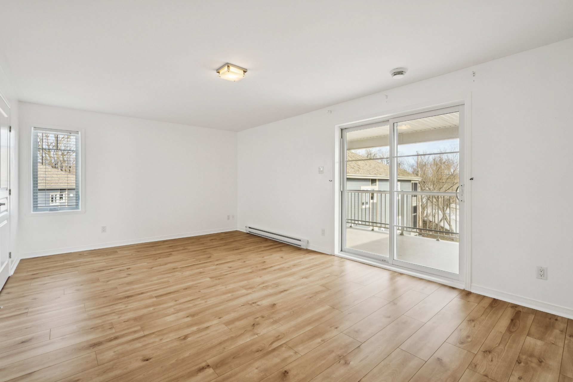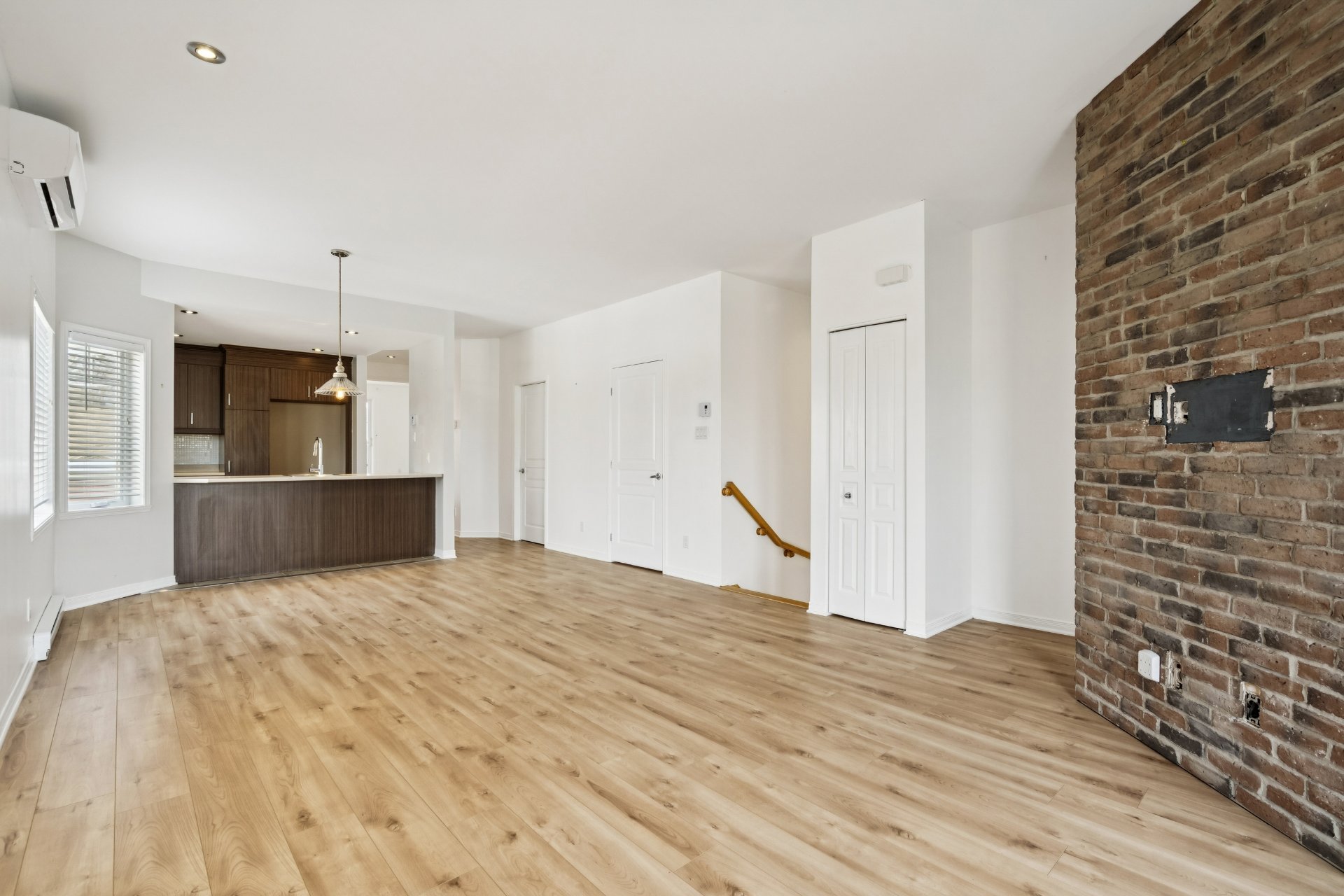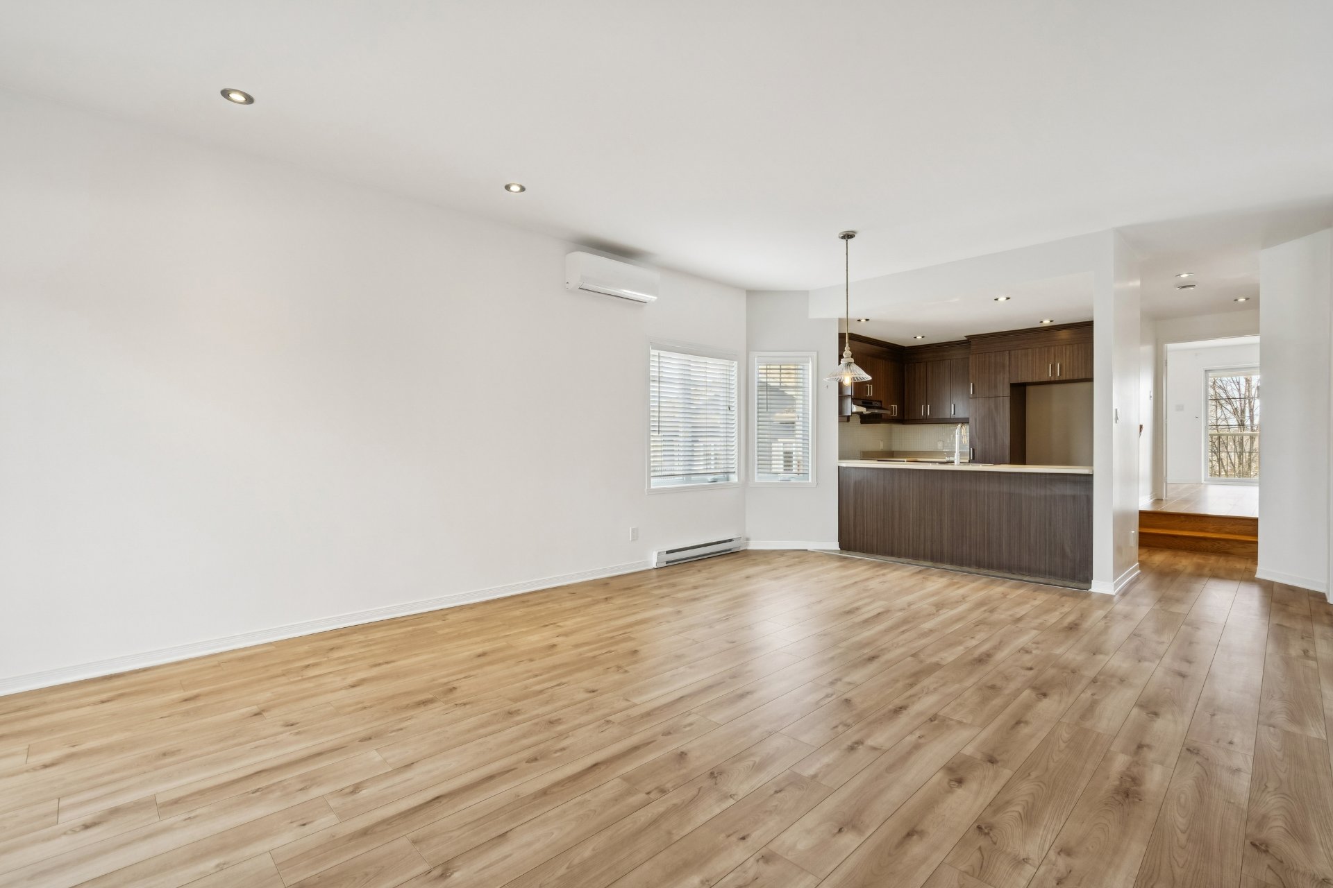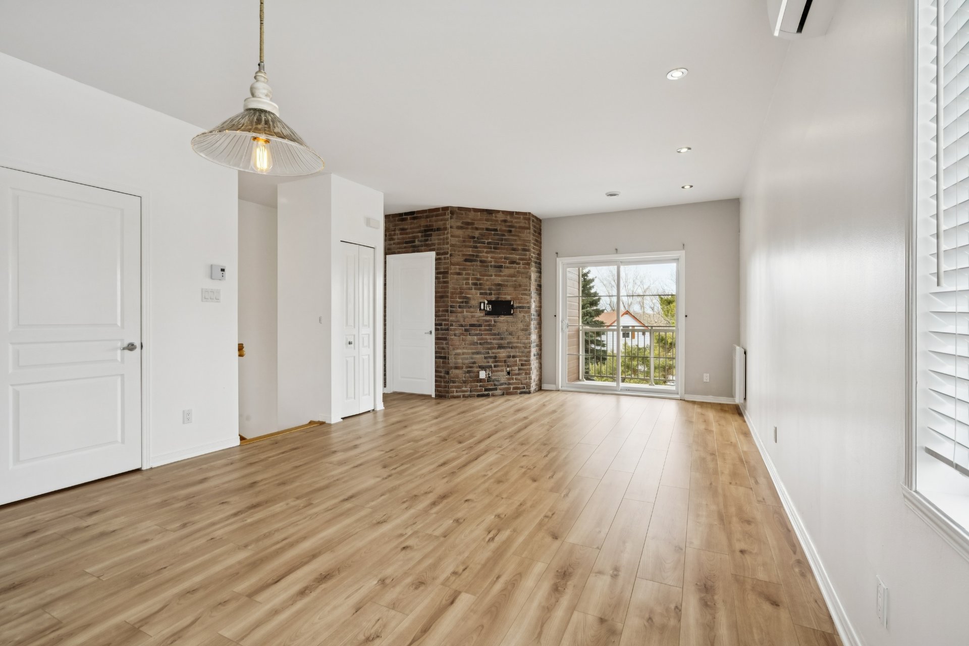 Bright condo of nearly 1,050 sq. ft.! Located on the 2nd floor of a quiet building, this beautiful corner unit offers spacious rooms and abundant natural light. Modern, functional kitchen with plenty of storage and updated flooring throughout. Includes a large living room, 2 good-sized bedrooms, and a separate laundry room. Features: wall-mounted heat pump, balcony and large private terrace, 1 garage, 1 outdoor parking space, and storage. Located in a sought-after wooded area near the river, perfect for scenic walks, within a well-managed condominium. A visit will convince you!