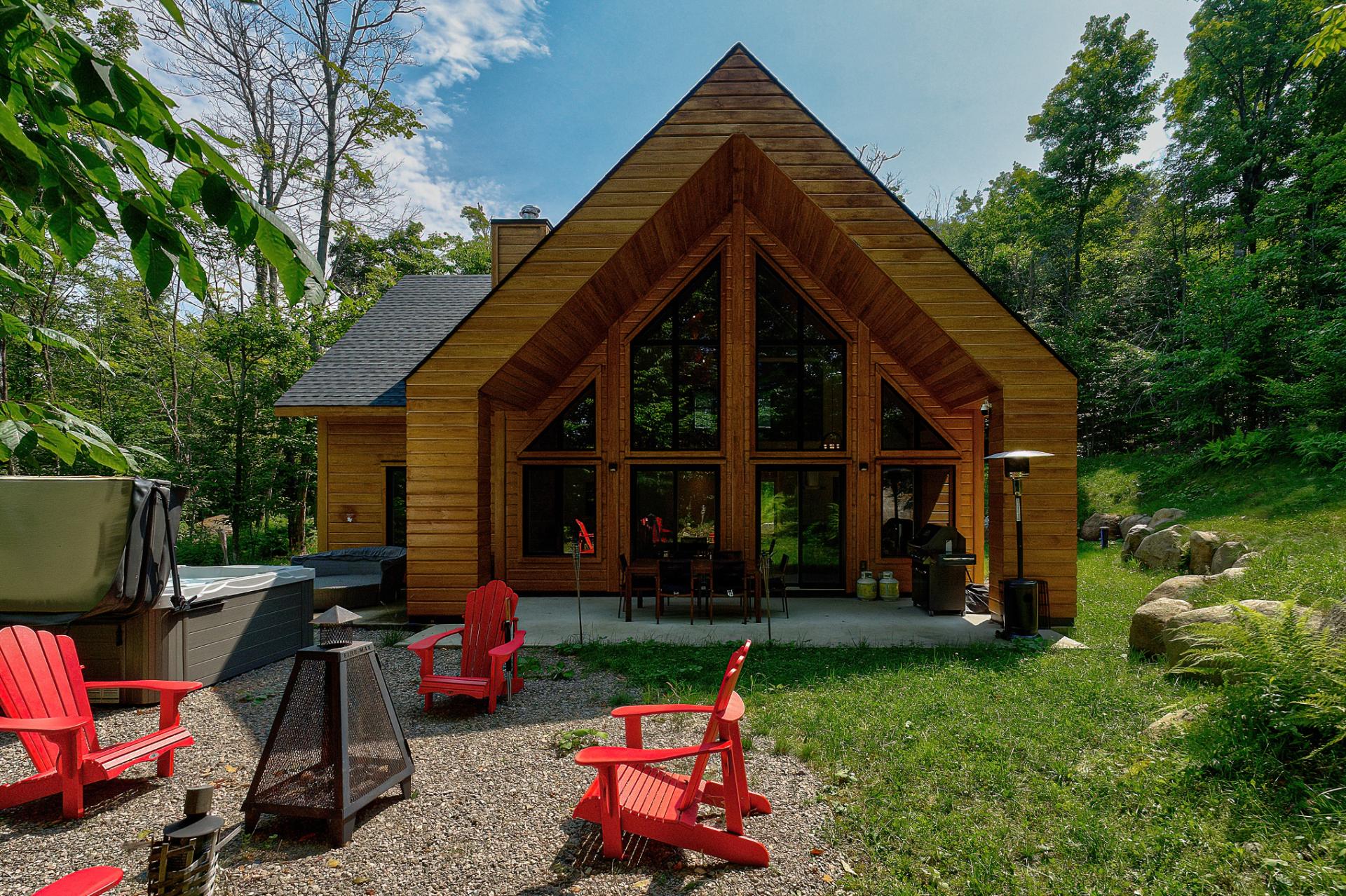 Gorgeous 2 story Scandinavian Timber Frame Home, cozy and private. Soak in the spa and enjoy the nature around you, over an acre and a half, backs onto the trails. Enjoy the privileged amenities of Club de la Pointe on beautiful Lac-Supérieur, includes tennis courts, pool, gym, owners dock with kayaks, paddle boards and hammocks, this list goes on. There is also a bistro and fine grocery with SAQ. Only one visit and you will fall in love!