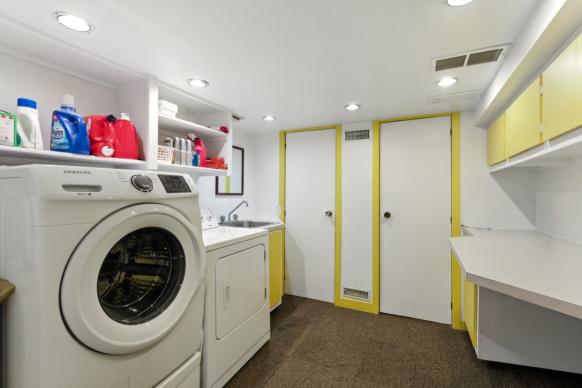 The basement offers a laundry room with an additional cedar closet, a large unfinished storage area providing multiple possibilities, and a spacious room currently used as a gym, filled with natural light from an oversized window, making it ideal for a home office. A workshop with an independent entry completes this level, perfect for projects, hobbies, or easy access.
