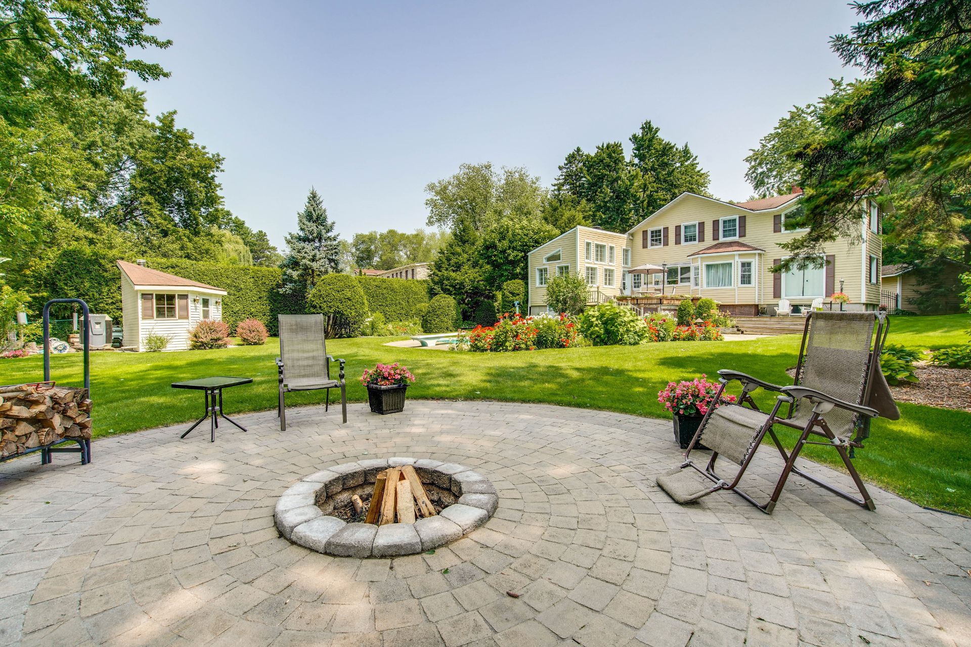 The spectacularly landscaped backyard is a true private oasis, featuring multiple terraces for dining and lounging, a cozy fire pit area for evening gatherings, and a magnificent pond with a charming gazebo that creates a serene atmosphere. With an inground pool, mature trees, and no rear neighbors, this exceptional outdoor space is perfect for entertaining, relaxing, or enjoying peaceful summer nights.