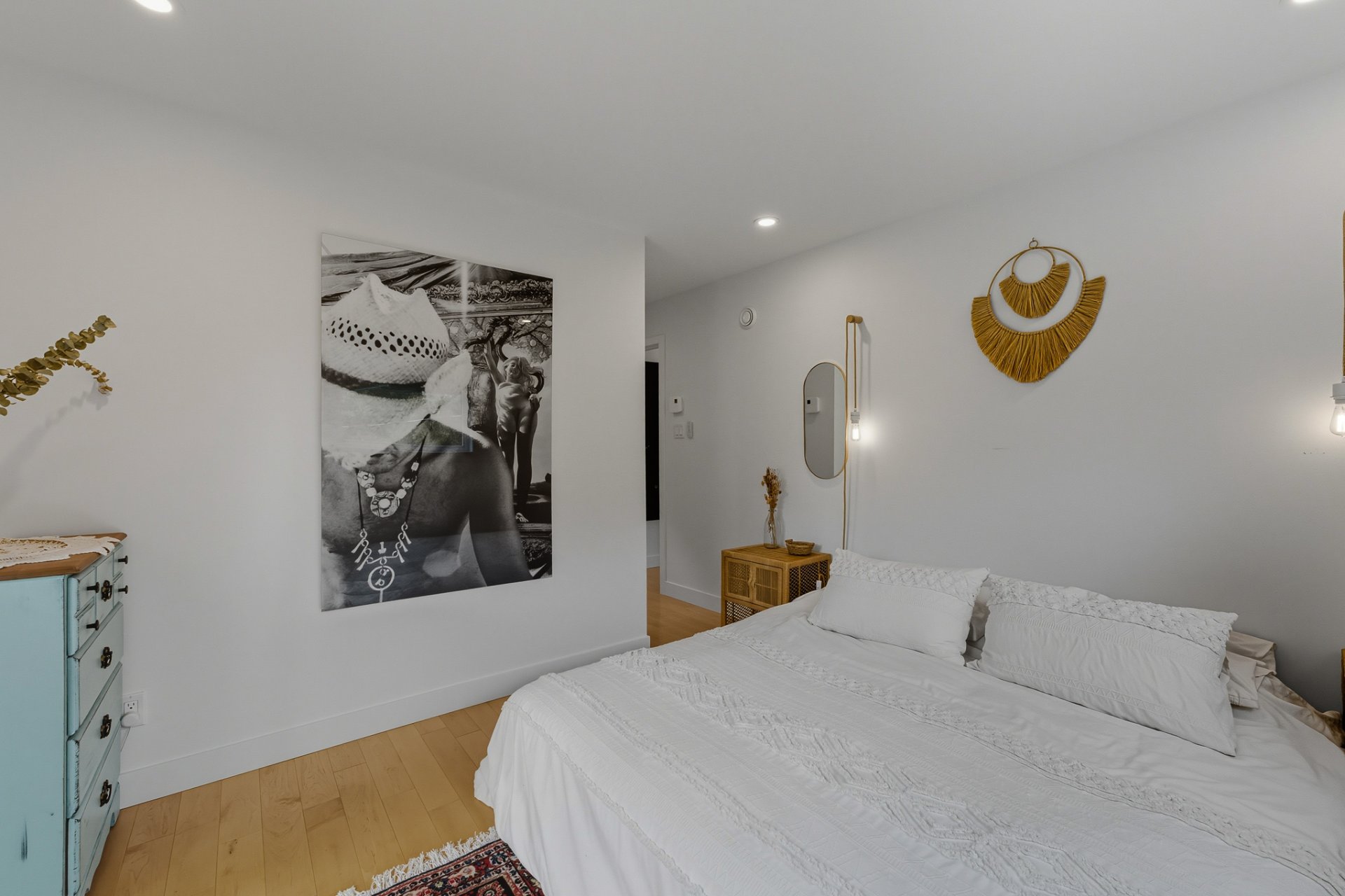 Upstairs, the primary bedroom boasts an ensuite bathroom with a shower and organized closet. It offers direct access to a large private terrace -- a true extension of the living space, perfect for enjoying sunrises and sunsets in complete privacy. A generously sized third bedroom with ample closet space completes the second level.