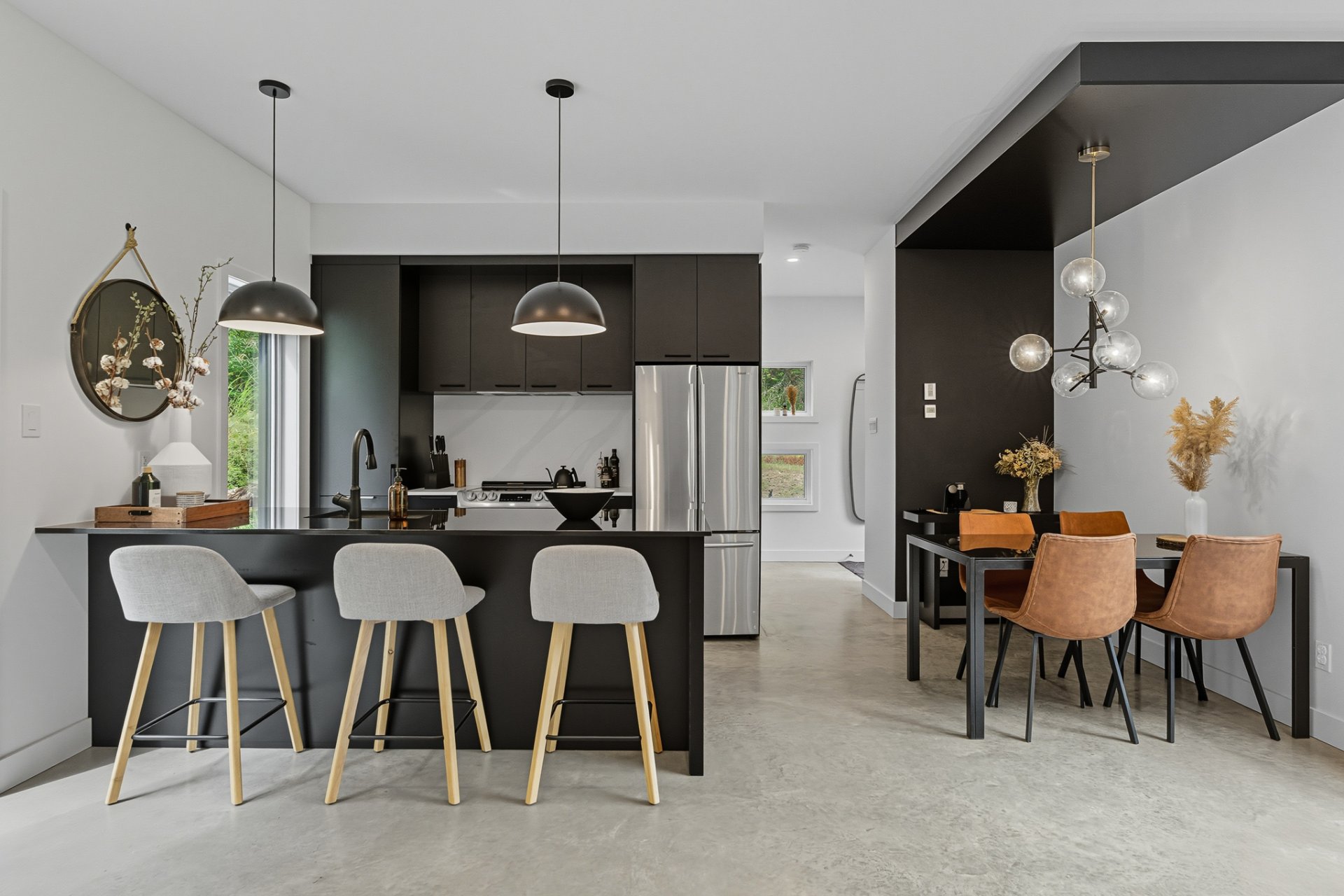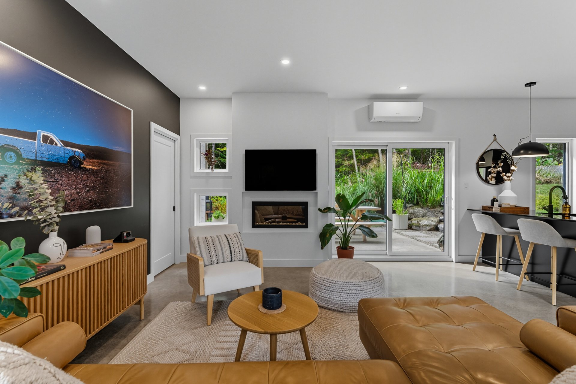 From the moment you enter, the modern and calming atmosphere of this 2022-built home is immediately apparent. Heated polished concrete floors on the main level provide comforting warmth, while nine-foot ceilings enhance the flow and openness of the spaces.