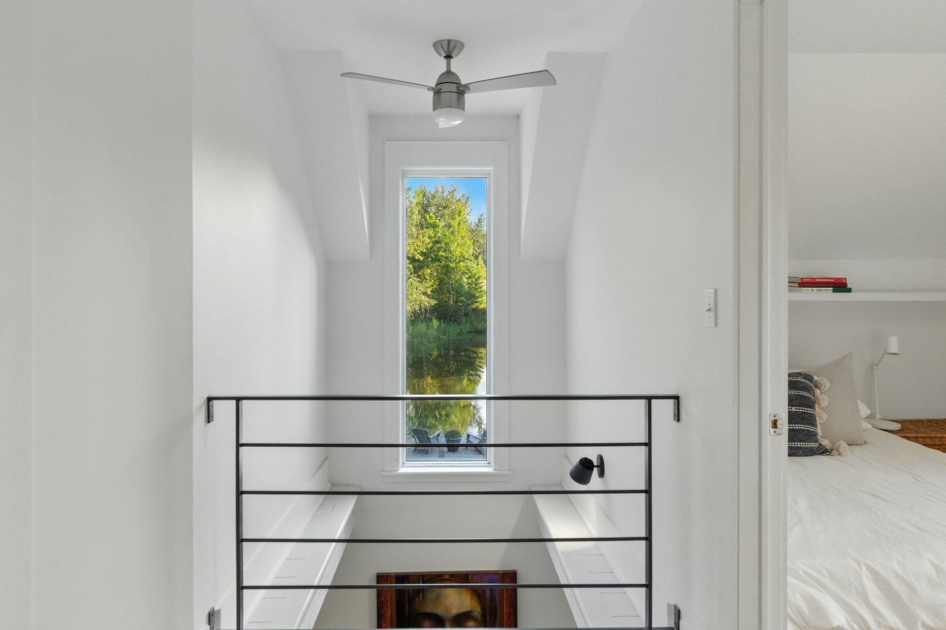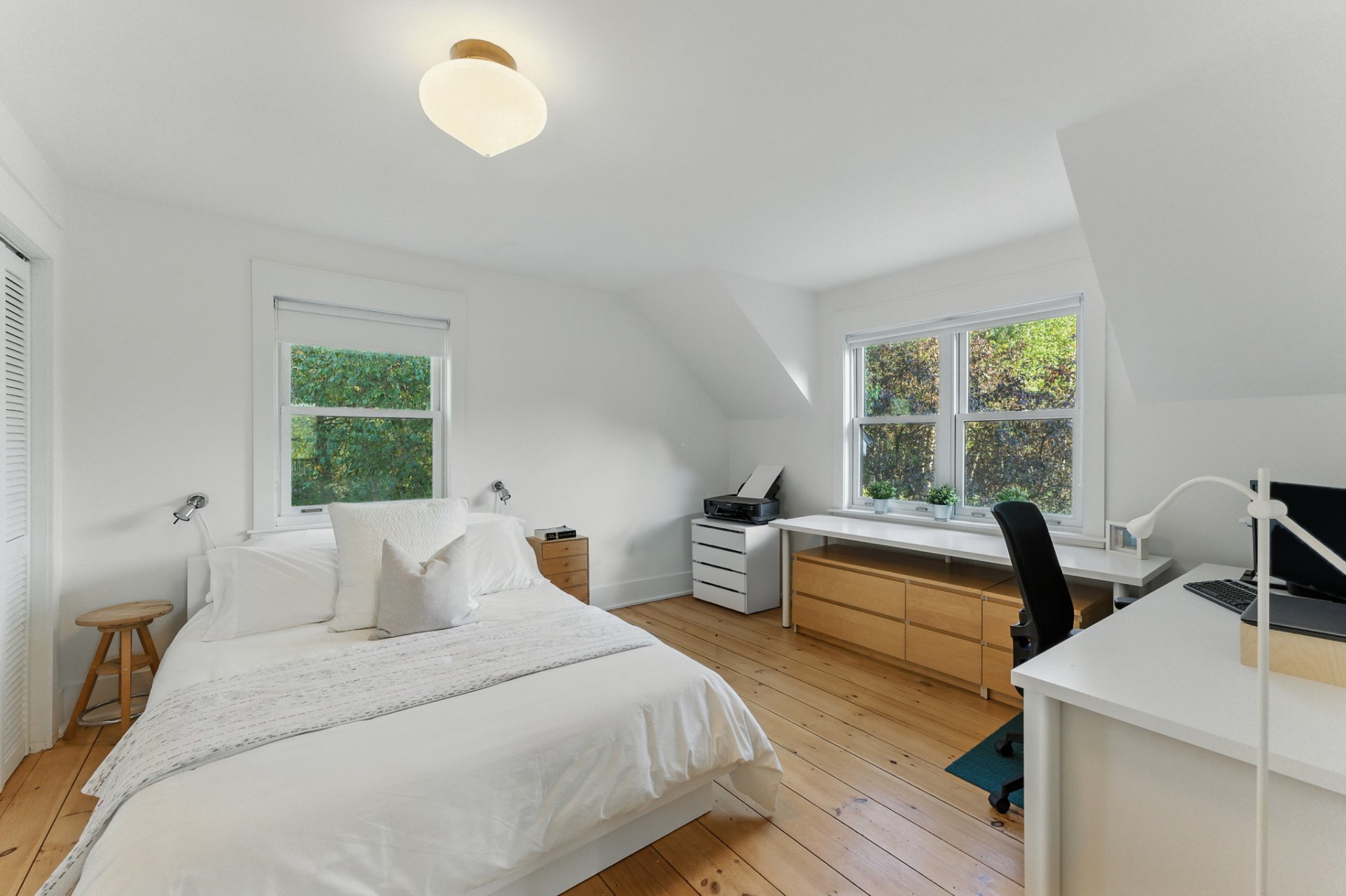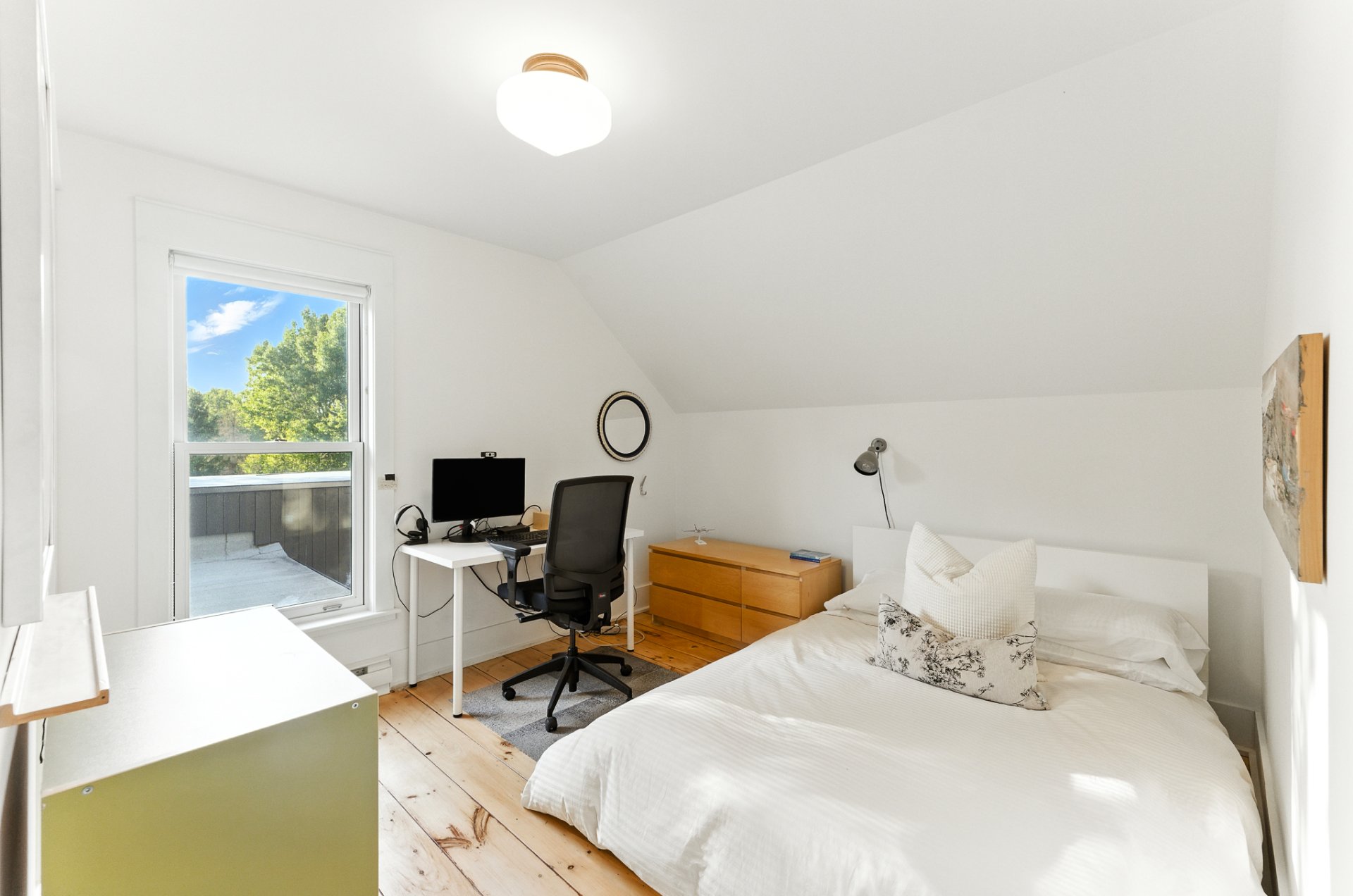 Upstairs offers a bright office with a view, along with 2 bedrooms and a superb bathroom.