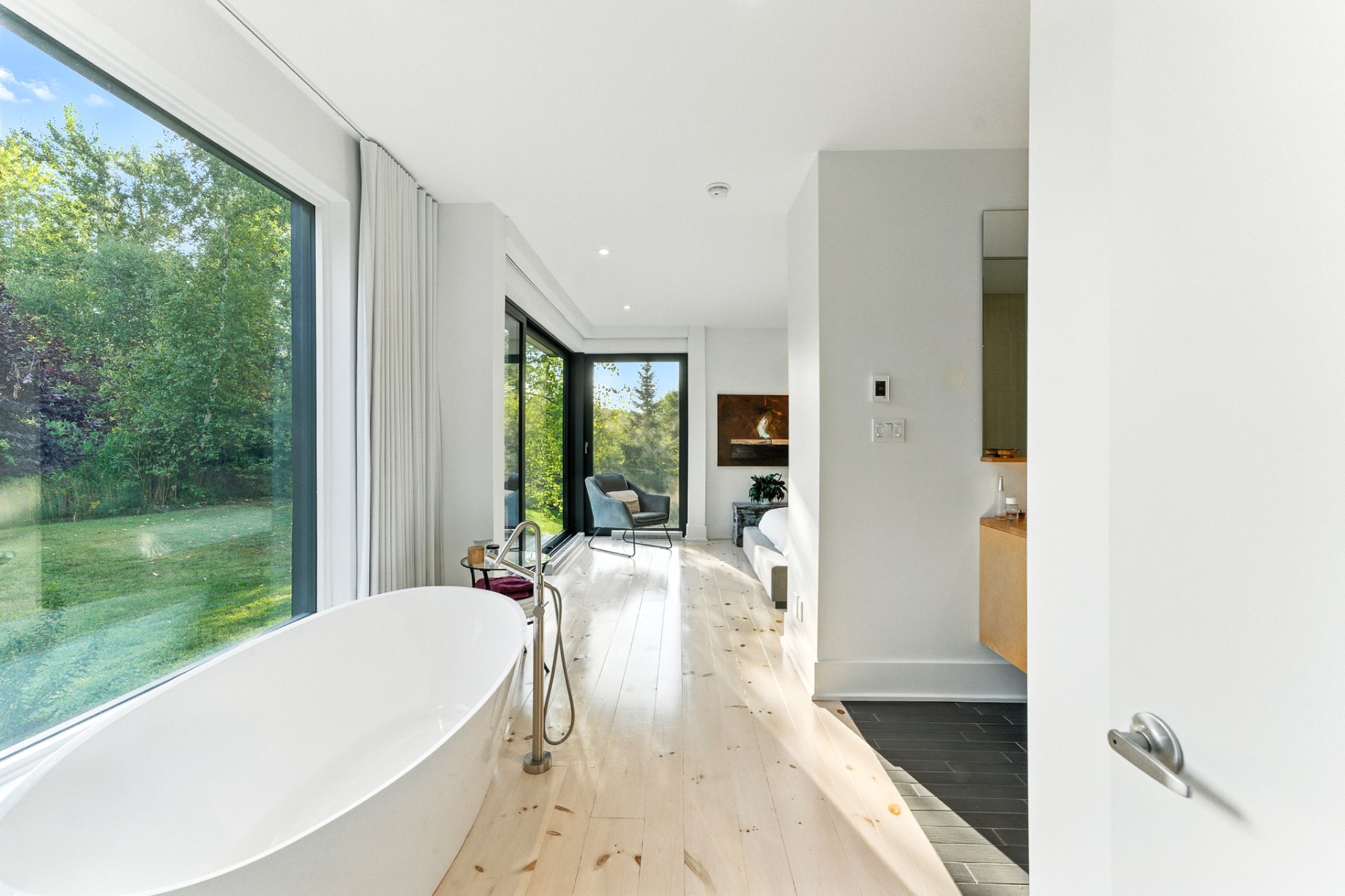 The location is ideal: about 5 minutes by car from the Versant des Cantons chairlift and hiking trails, 2 km from the heart of Bromont with its boutiques, restaurants, and art galleries, and only 5 km from the acclaimed Balnea Spa. Here, every day feels like an escape--between refinement, nature, and the art of living well.