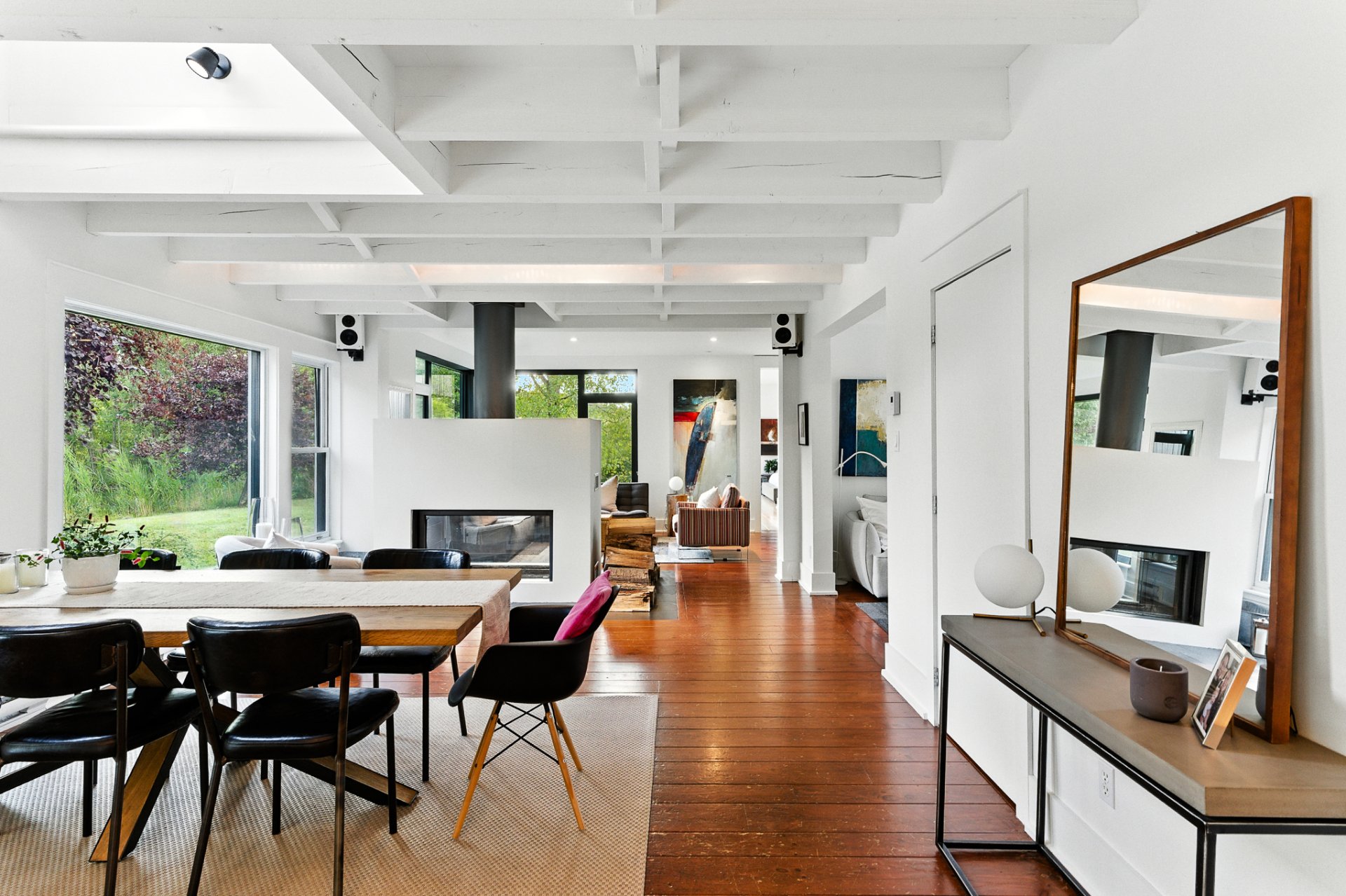 - Wood fireplace