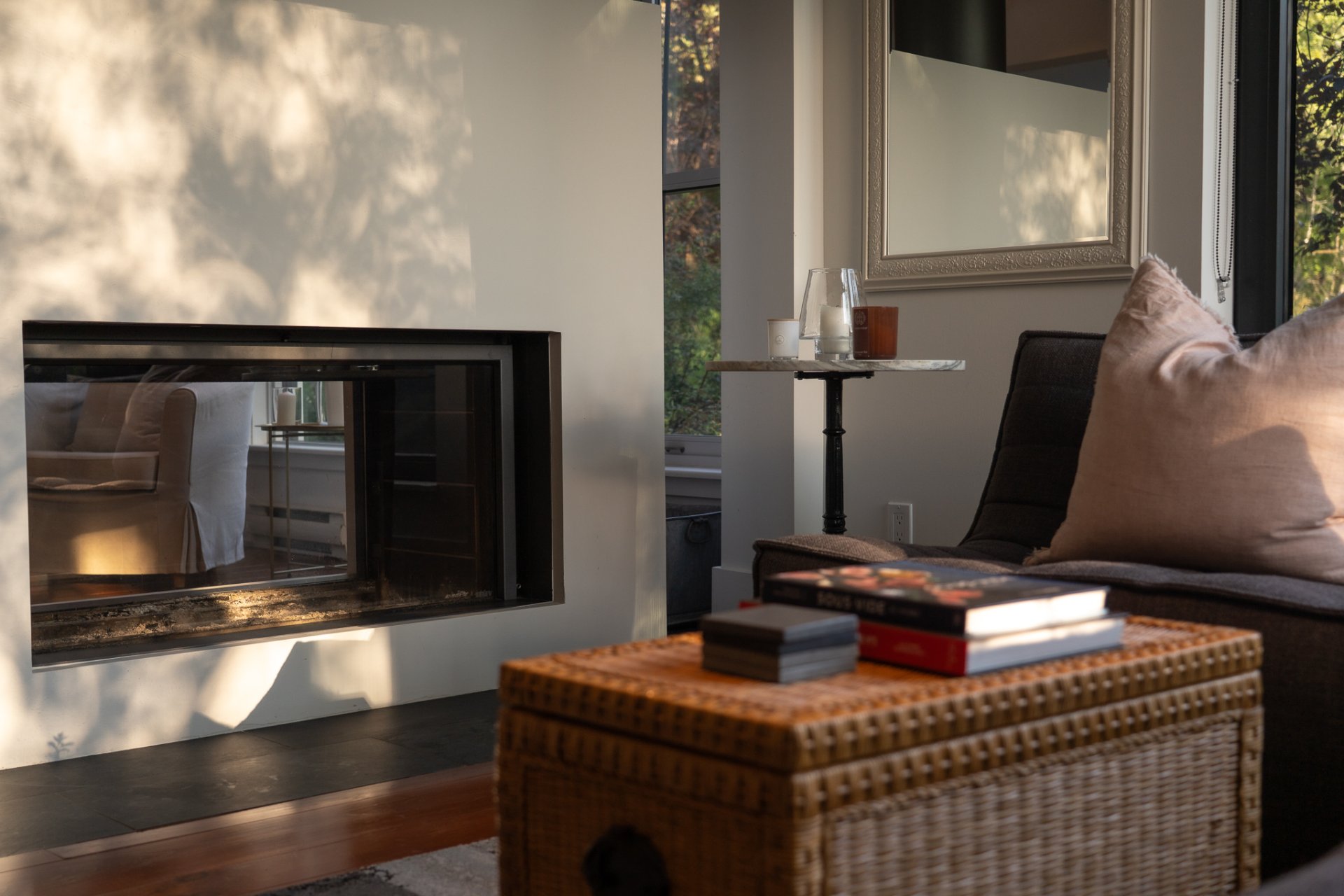 - 2 side fireplace, view