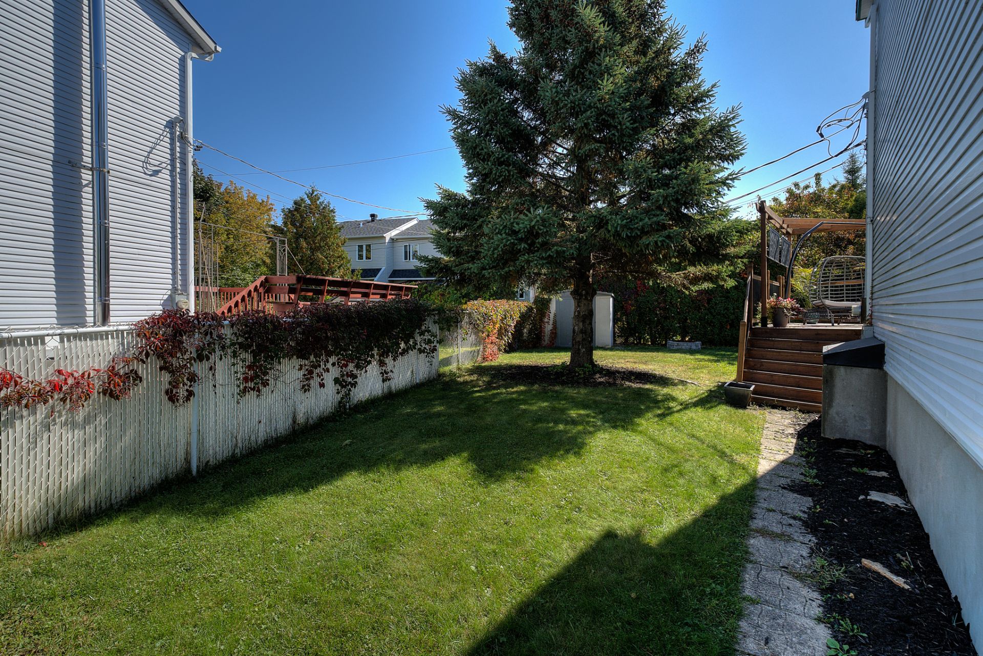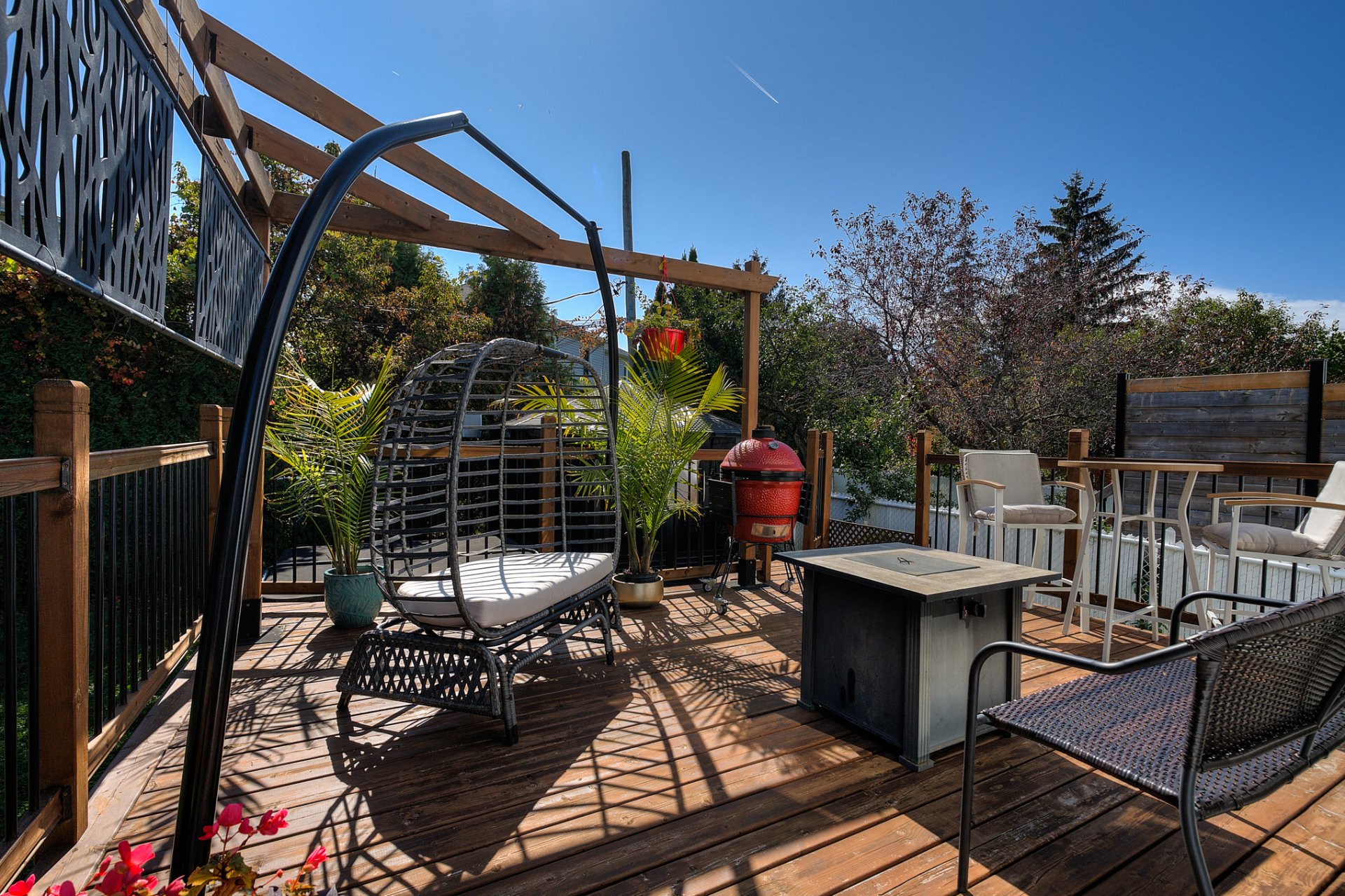 The private, beautifully landscaped backyard provides an ideal space to entertain, unwind, or let children play safely.