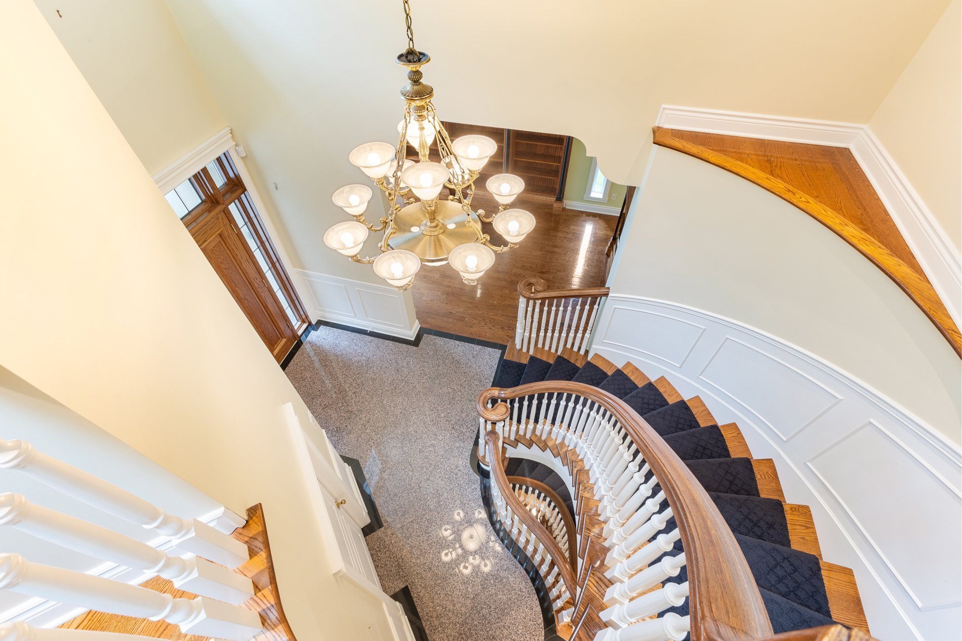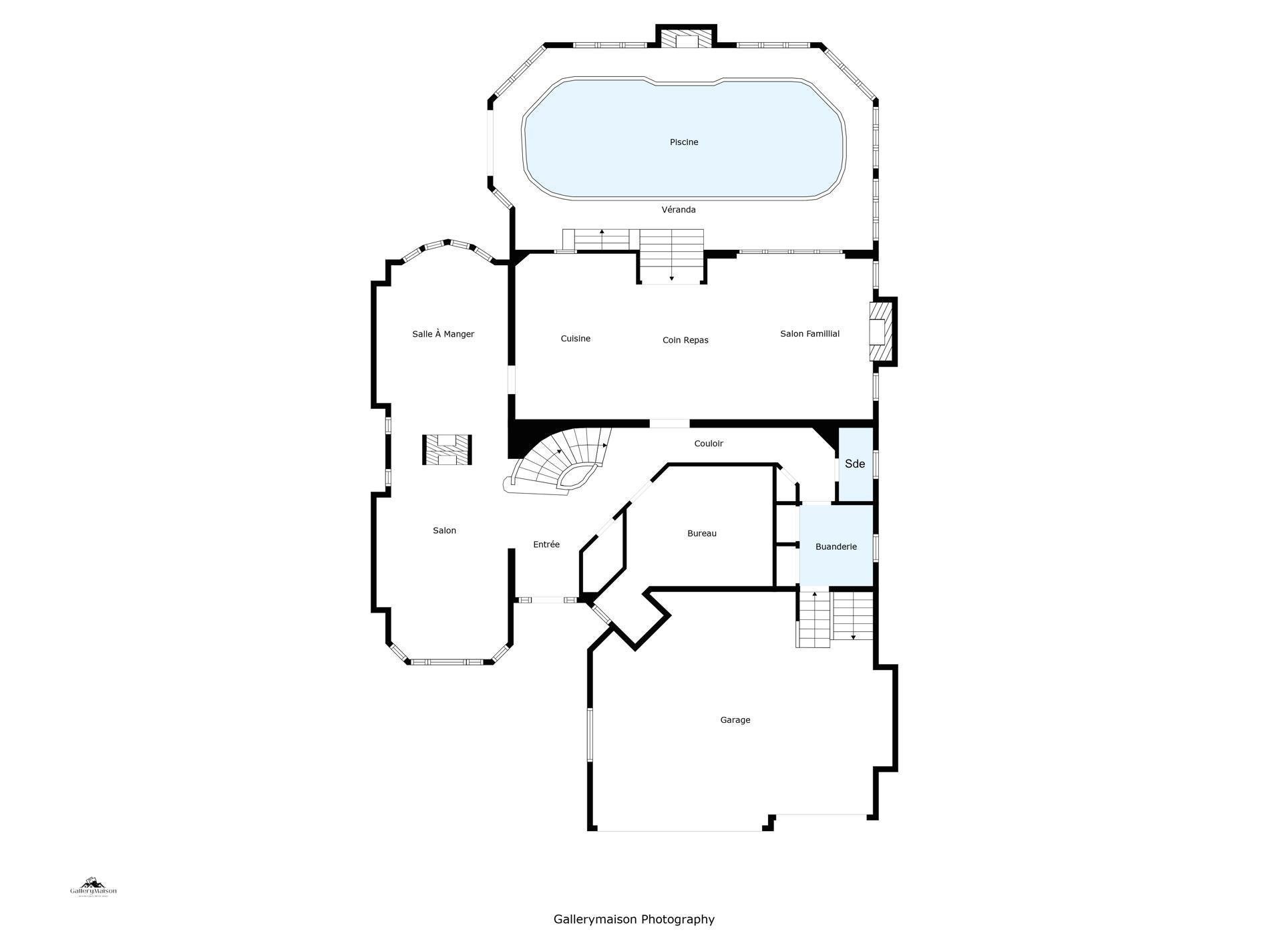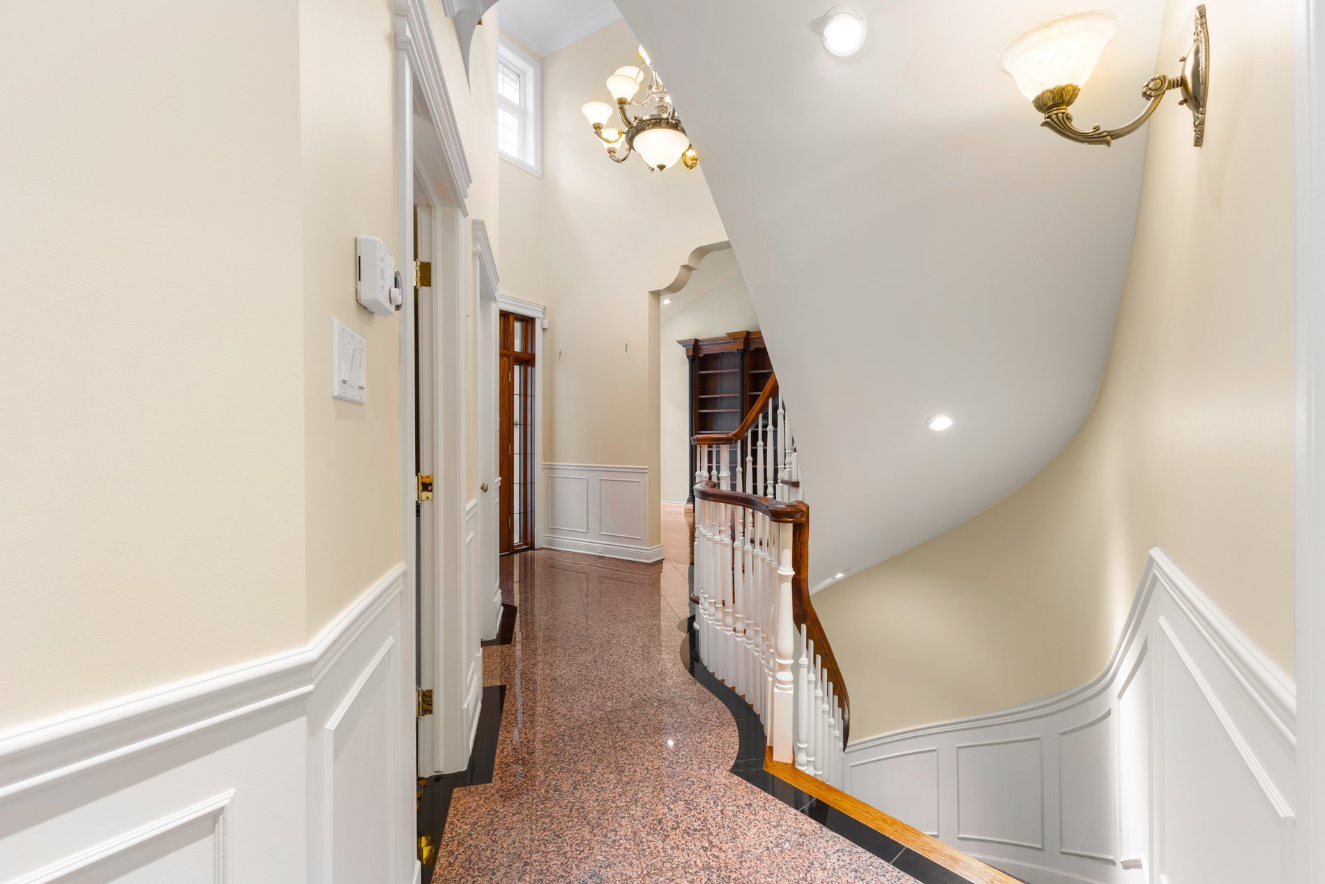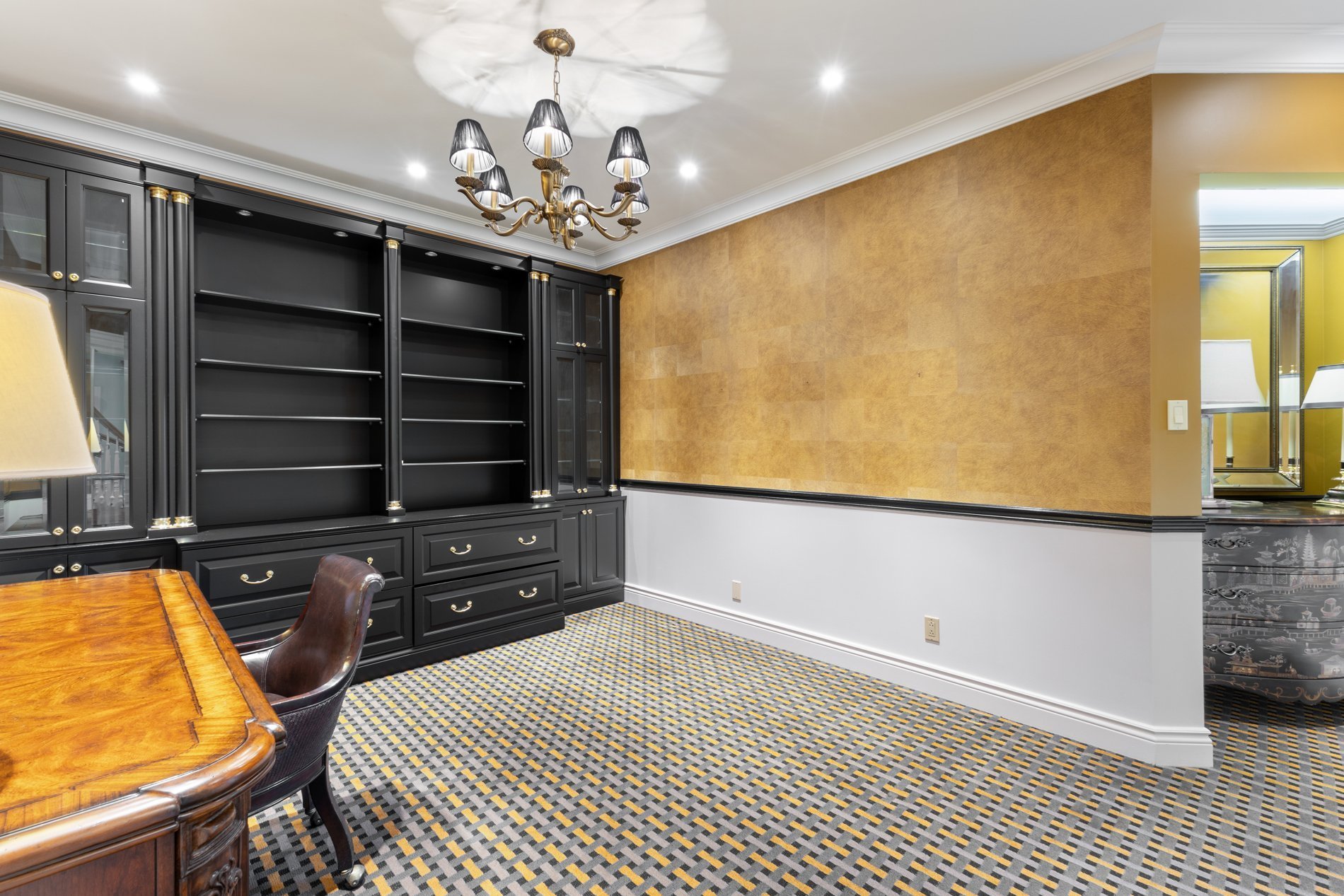 The ground floor also features a conveniently located and well appointed home office, offering a quiet and functional workspace. A discreet powder room and spacious laundry room offering access to the 3-car garage.