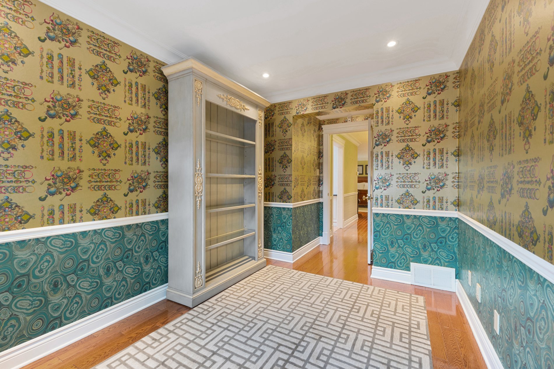 Attached to the primary bedroom is a charming boudoir, a versatile space perfect for a cozy den, serene library, or personal retreat. This tranquil room is an ideal escape from the hustle and bustle of daily life, providing a quiet haven for relaxation and reflection.